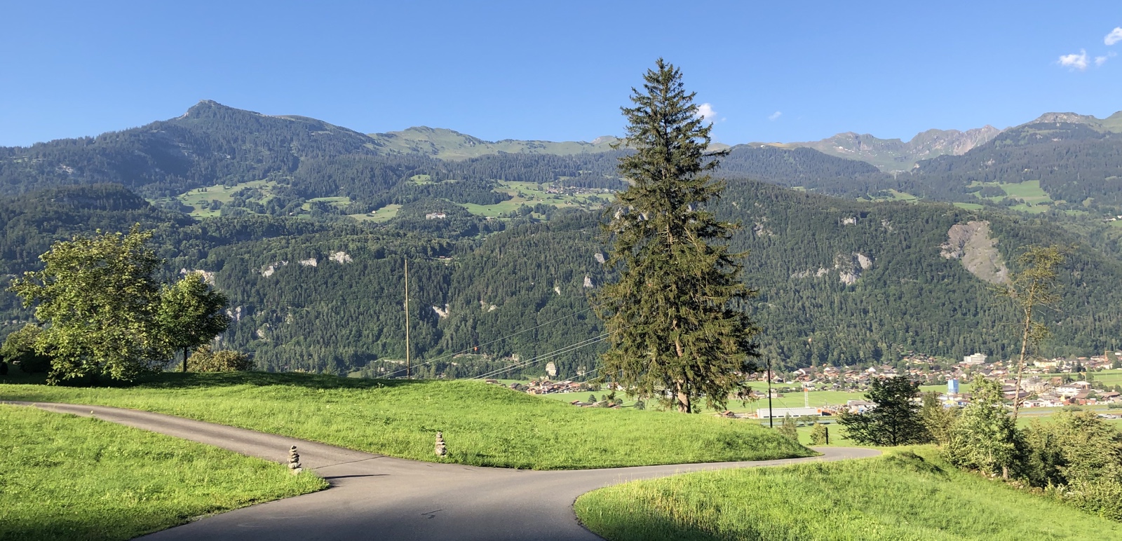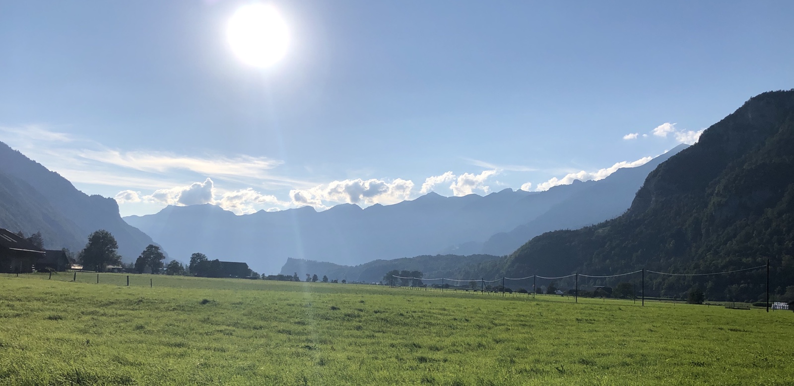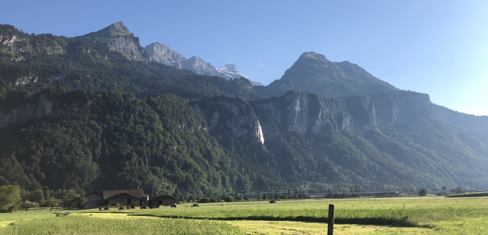 Ausblick zum Hasliberg und zum Felssturz von Meiringen.