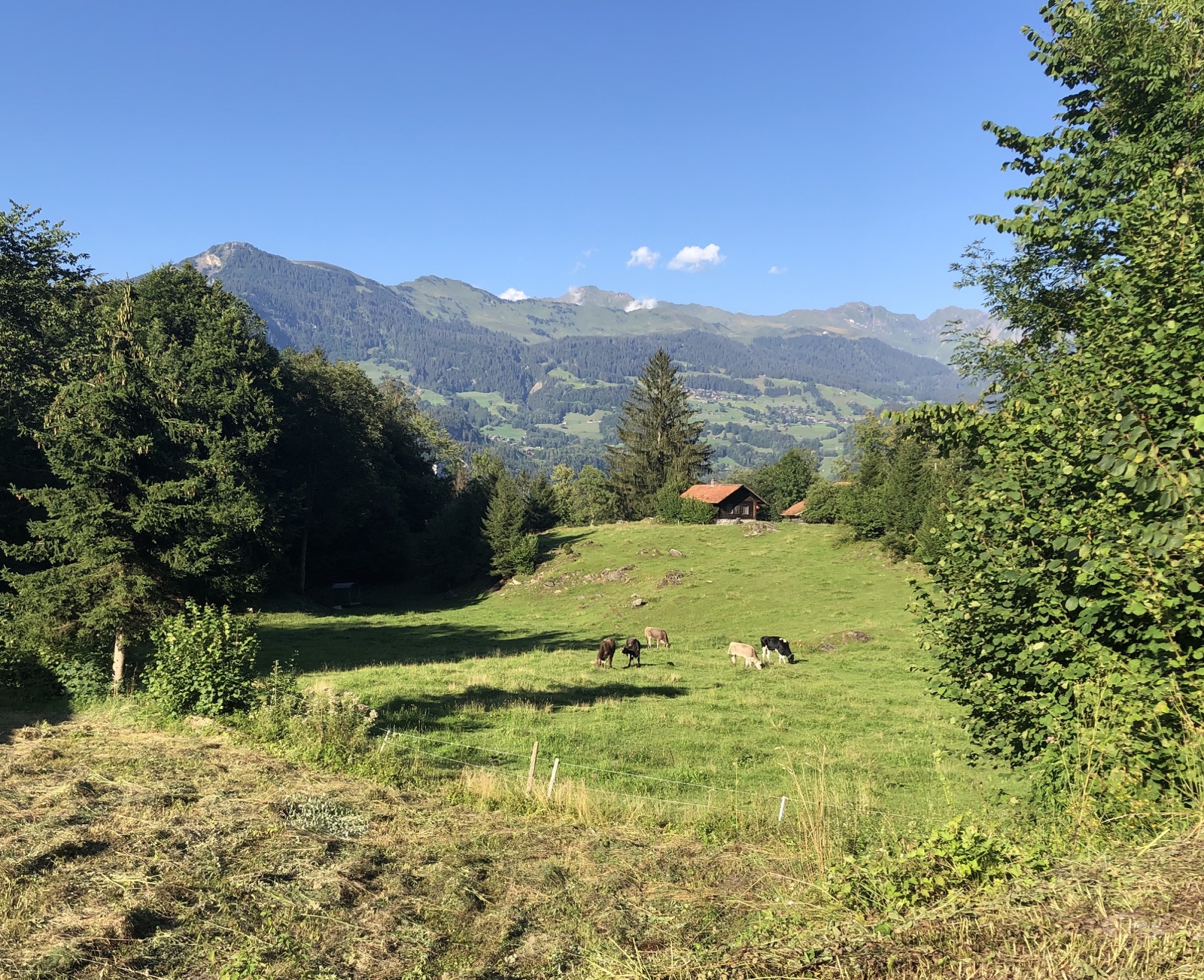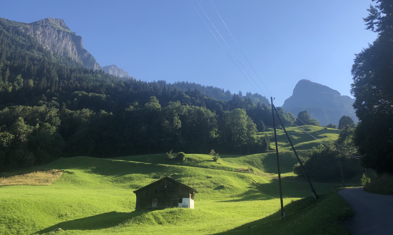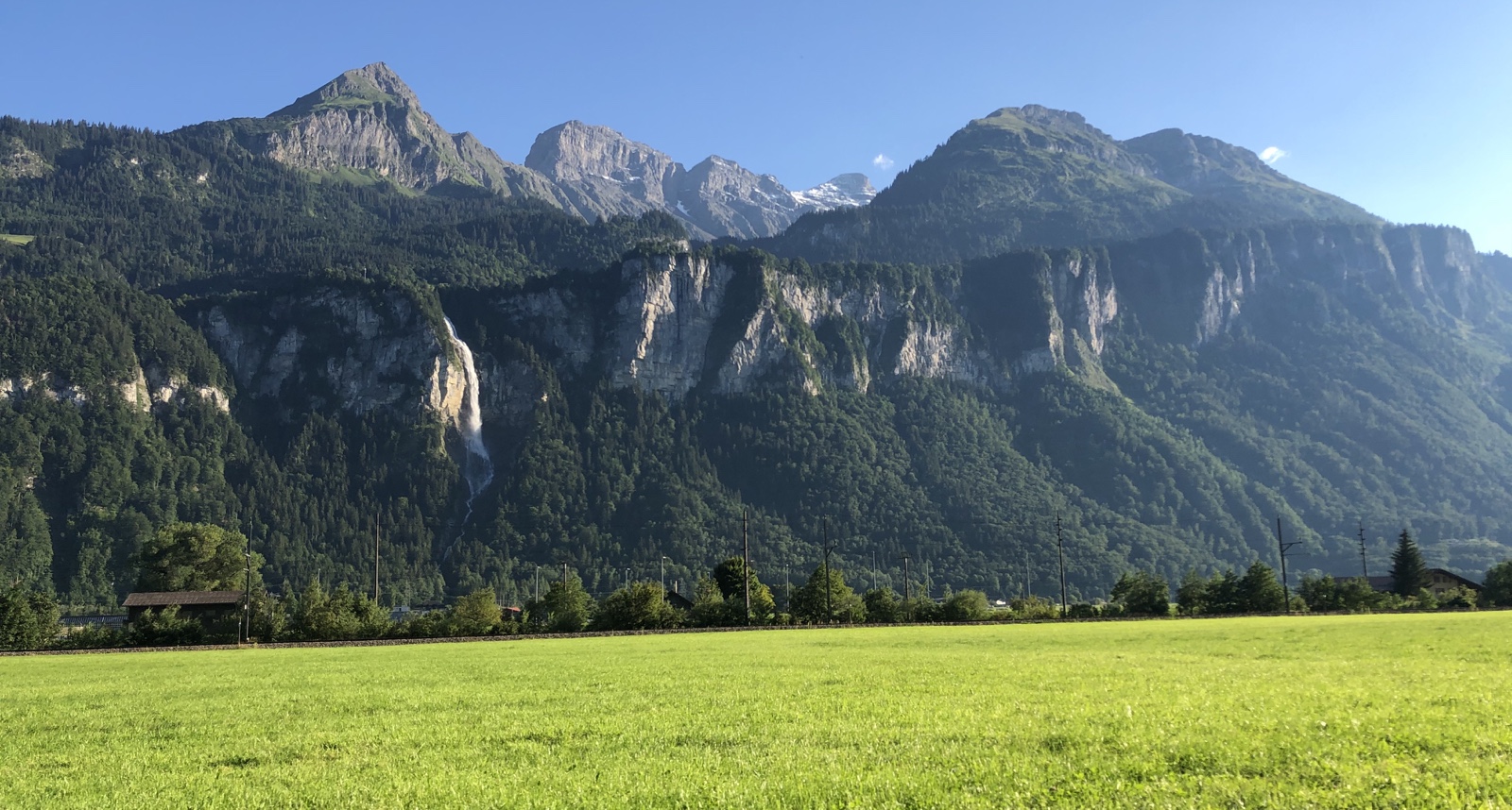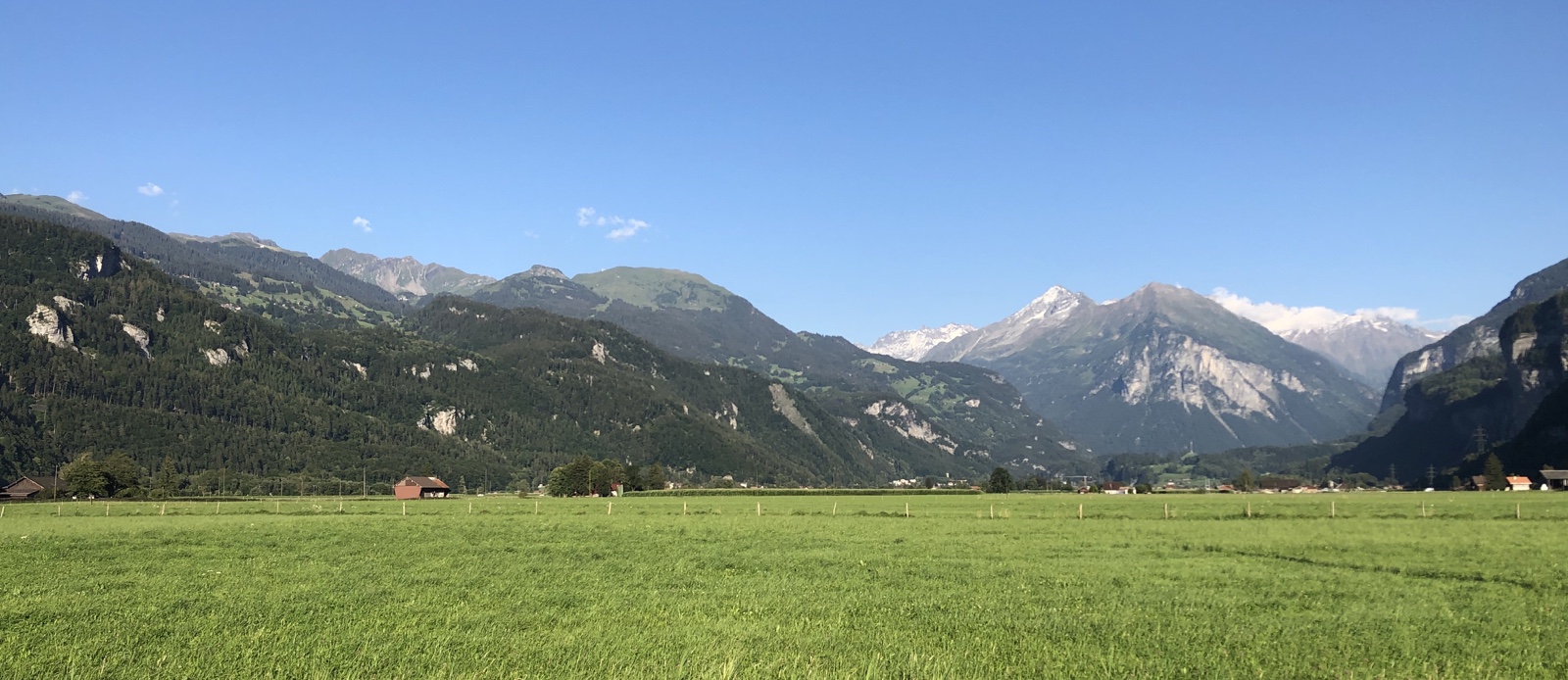 Ausblick zum Hasliberg und zum Felssturz von Meiringen.