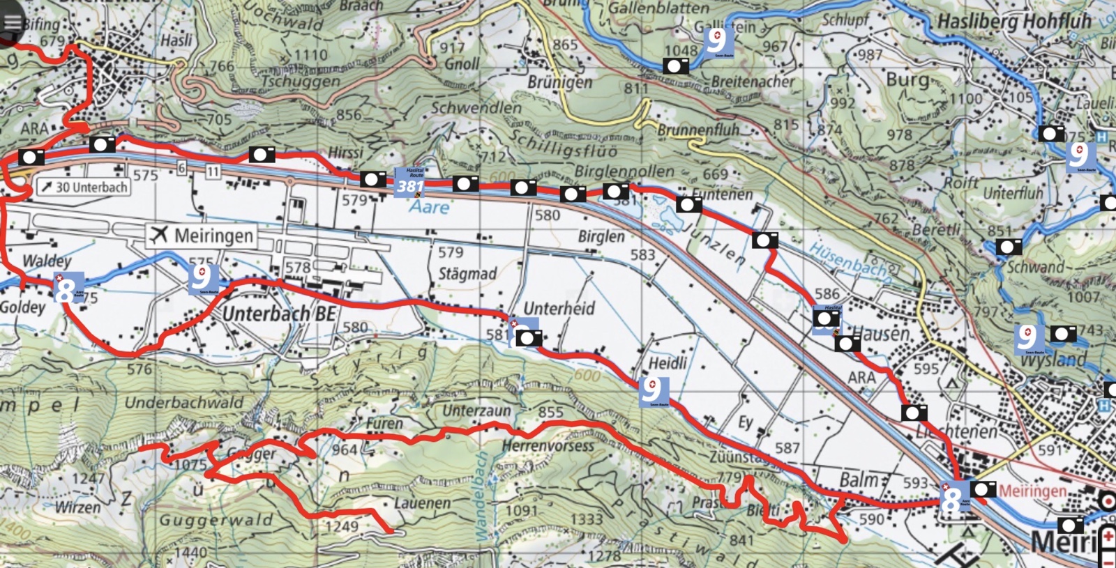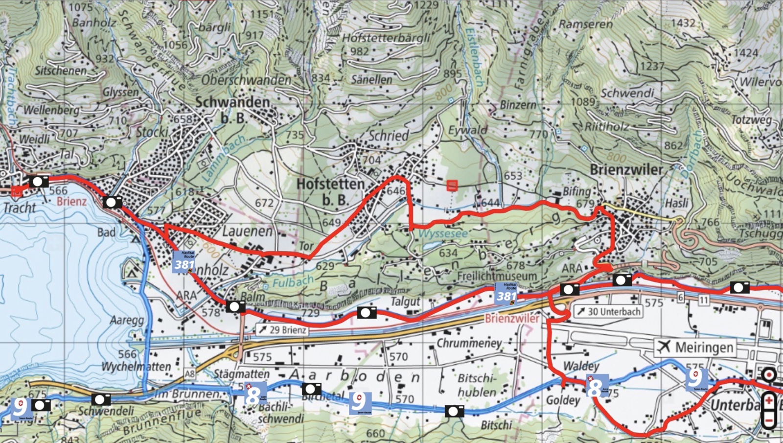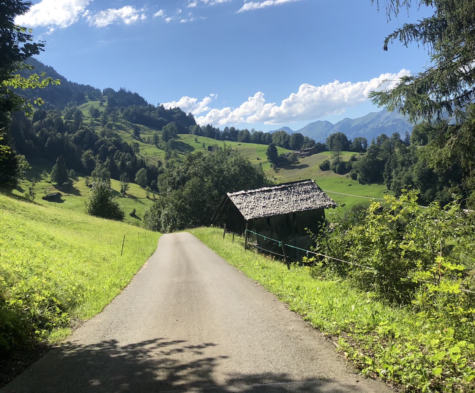 Dann quere ich die Piste des Militärflugplatzs und radle hoch nach Brienzwiler und hinterm Ballenberg runter nach Hofstetten und weiter über die Lauenen nach Brienz.