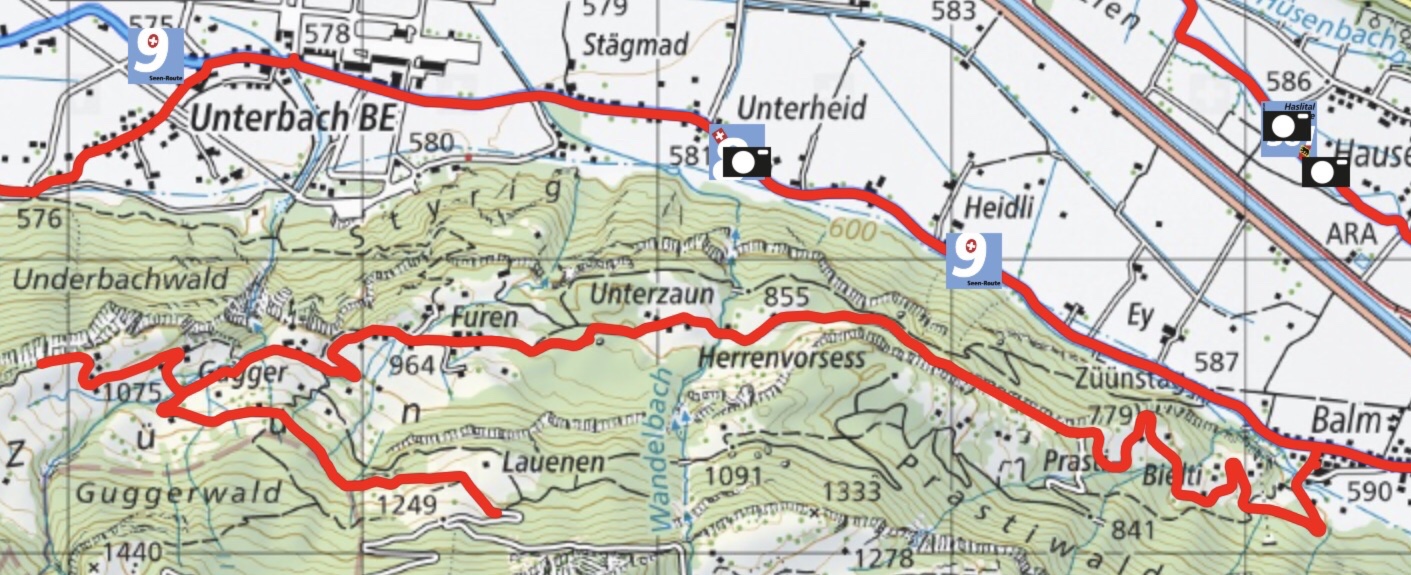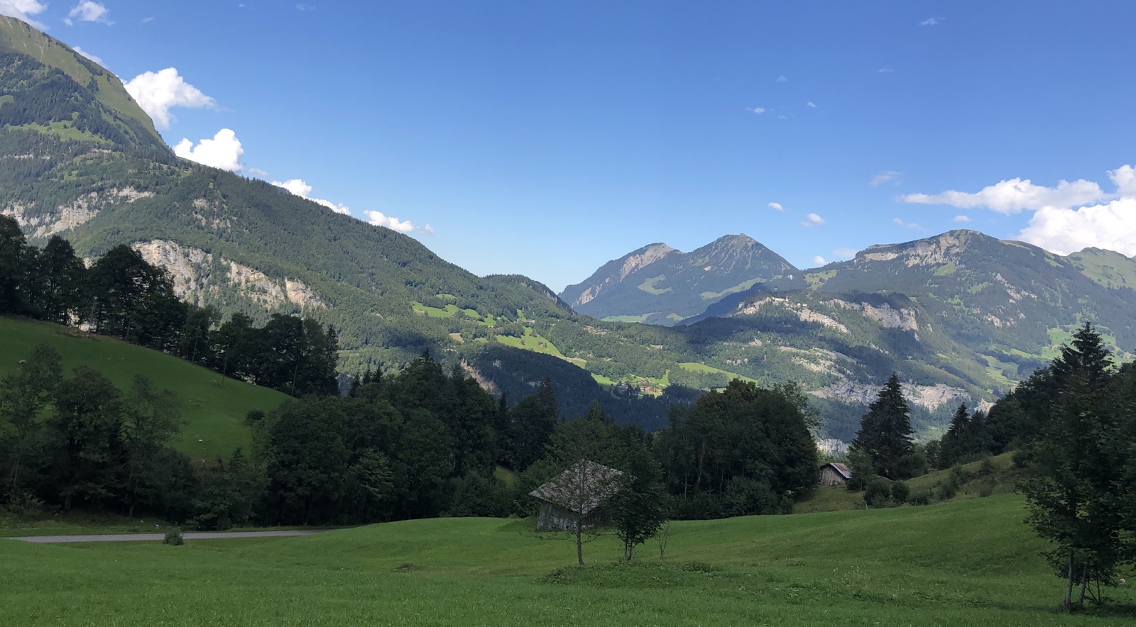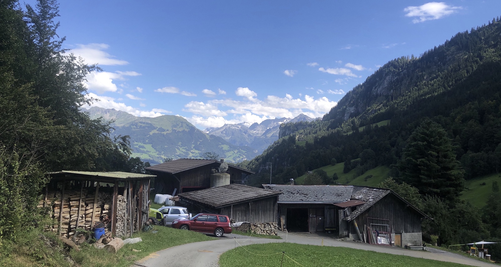 Am Waldrand des unteren Rufibergs in Unterbach esse ich je ein Stück noch leicht warmen Lauch- und Spinatkuchen. Gestärkt radle ich entlang dem Sytenbach – Funtenen – Hüsenbach nach Balm bei Meiringen, wo ich mich wieder Brienz zuwende und bald die Aare überquere.