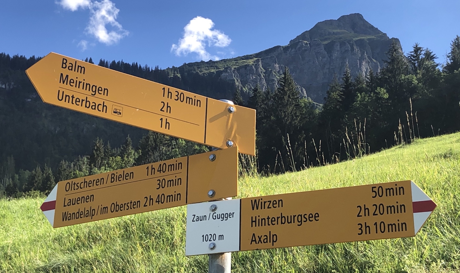 Während meinen 39 Jahren Eisenbahn durfte/musste ich diese mindestens 4-stündige Wanderung mehrmals leiten. Teils mit bis zu 60 Zweibeinern wanderte ich, in 4-5 Stunden, allerdings immer in umgekehrter Richtung von Axalp nach Meiringen. Hin und wieder nahmen wir auch den, wegen der Aussicht viel attraktiveren Umweg übers Chrutmettli – Urserli – Arven – Chienzen – Uf dr Flue – Züün – Meiringen, total mindestens 6-7 Stunden (Pausen nicht eingerechnet).