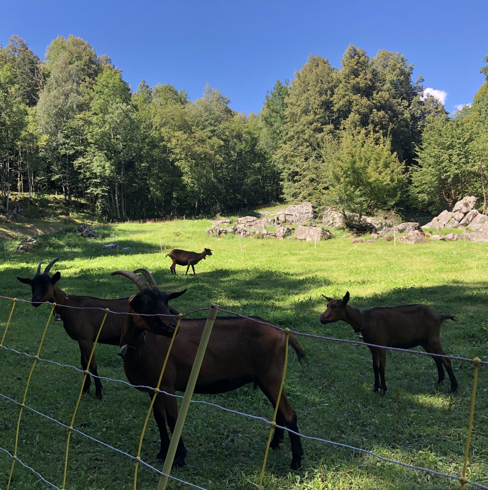 Die heute bis weit hinauf asphaltierte Strasse führt in Serpentinen und doch immer noch recht steil bergan. Schafe und Ziegen weiden hier unten.