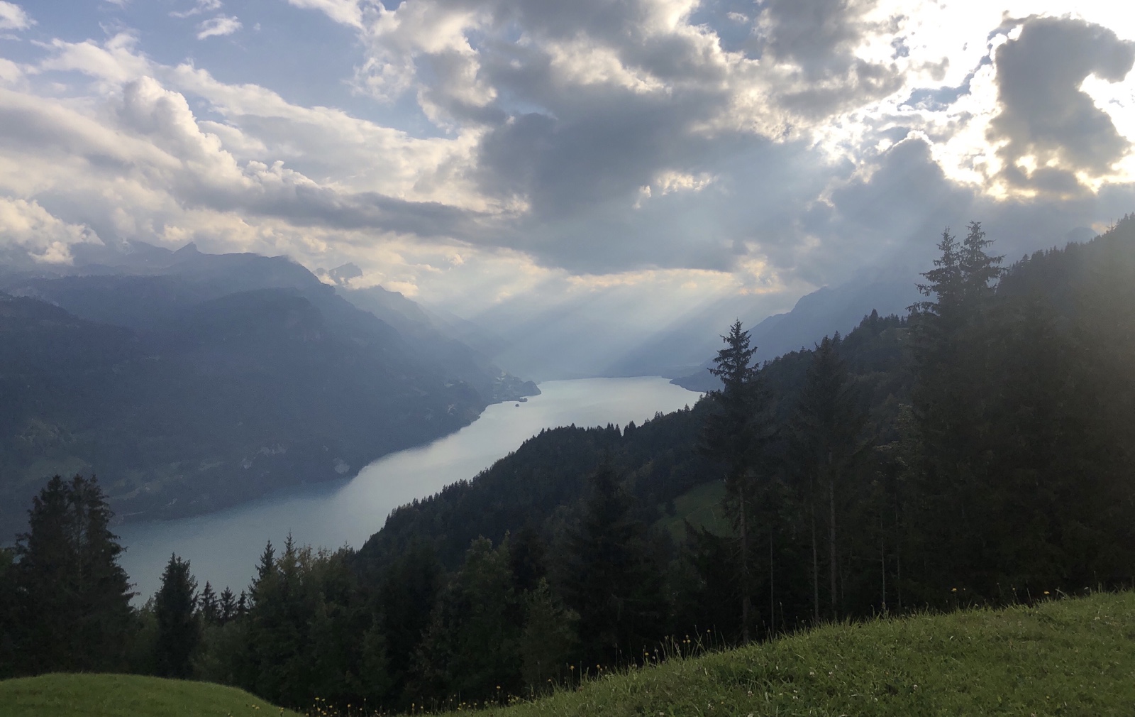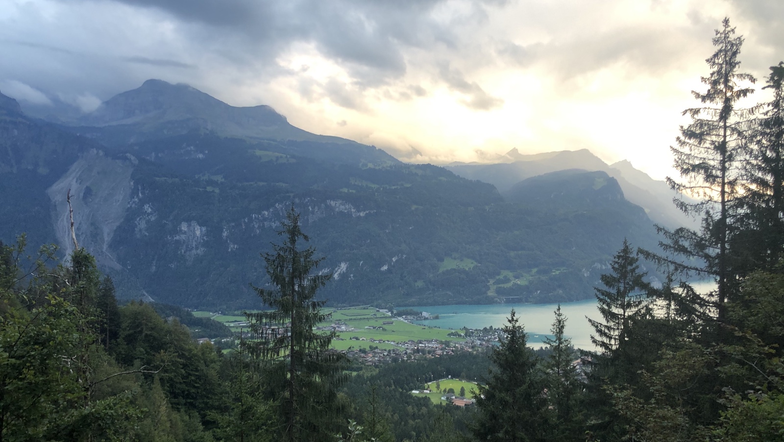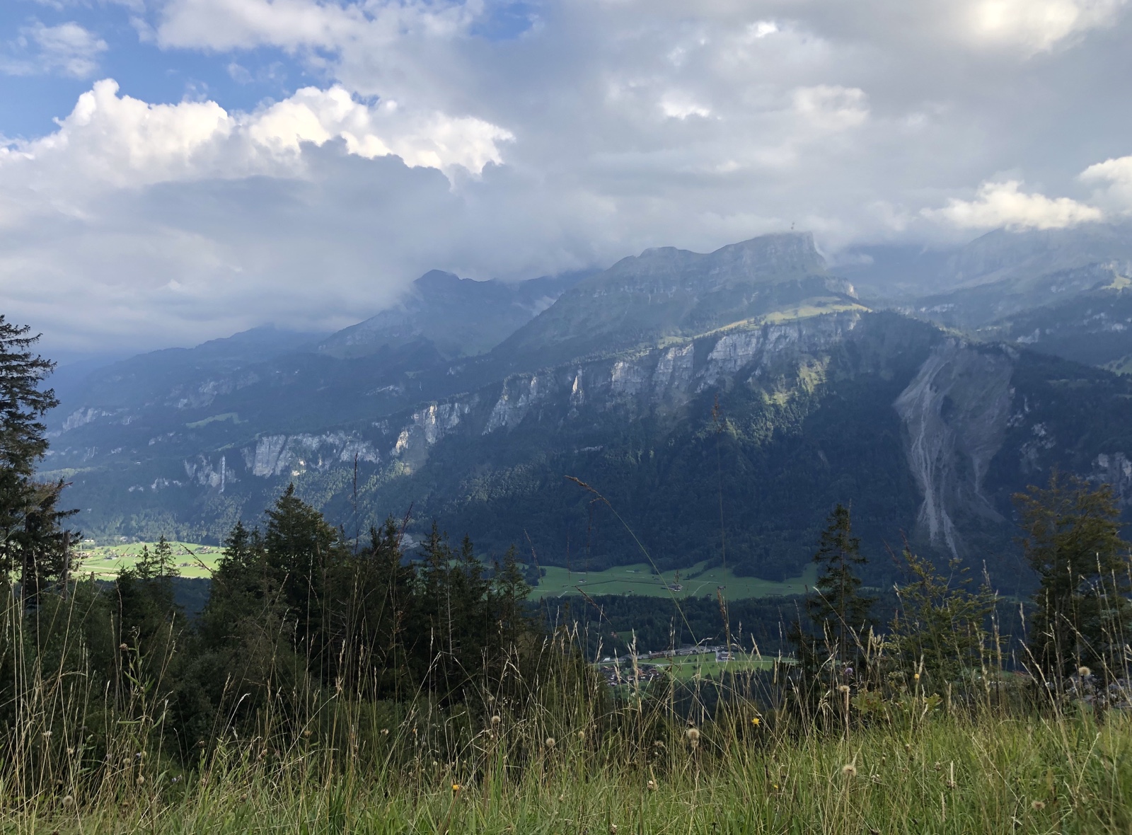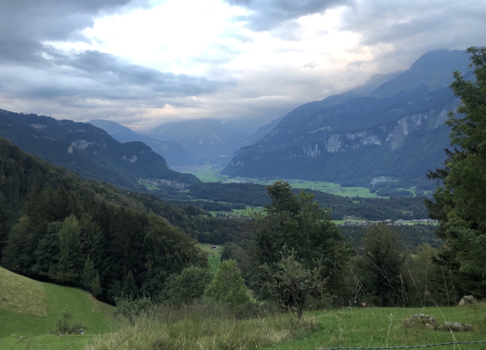 Während ich am Dorfen mit einem mir bis dahin unbekannten Ehepaar aus Schwanden bin, bemerken wir wie eine Regenwand vom Bödeli her sich rasant annähert.