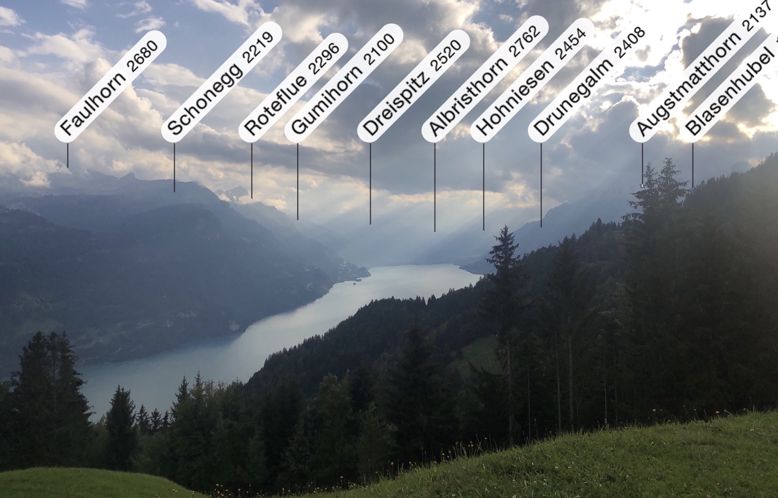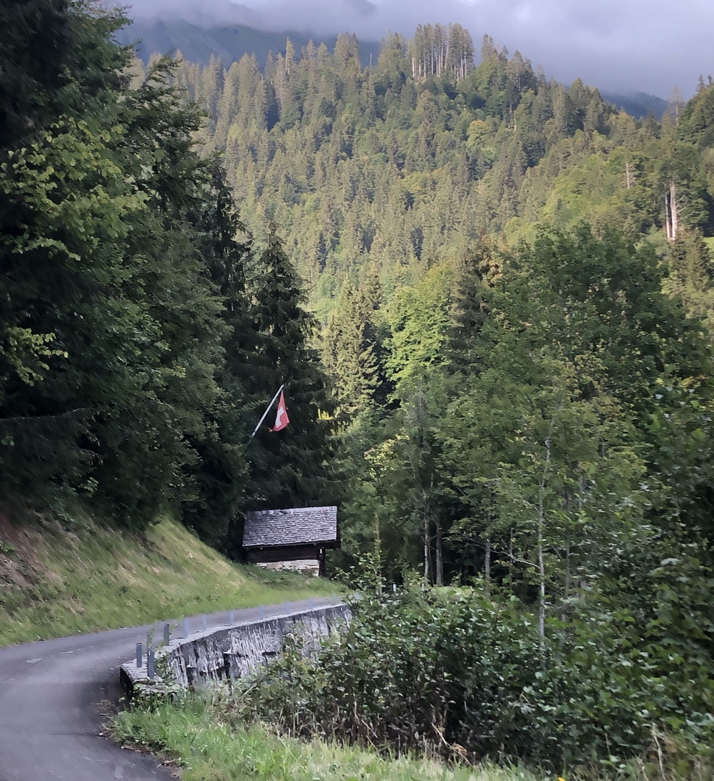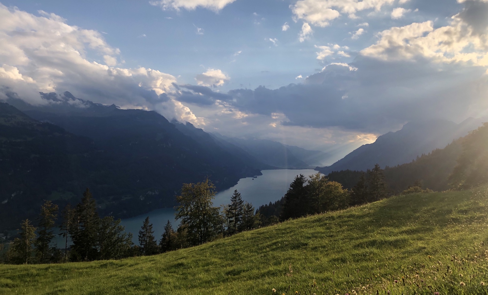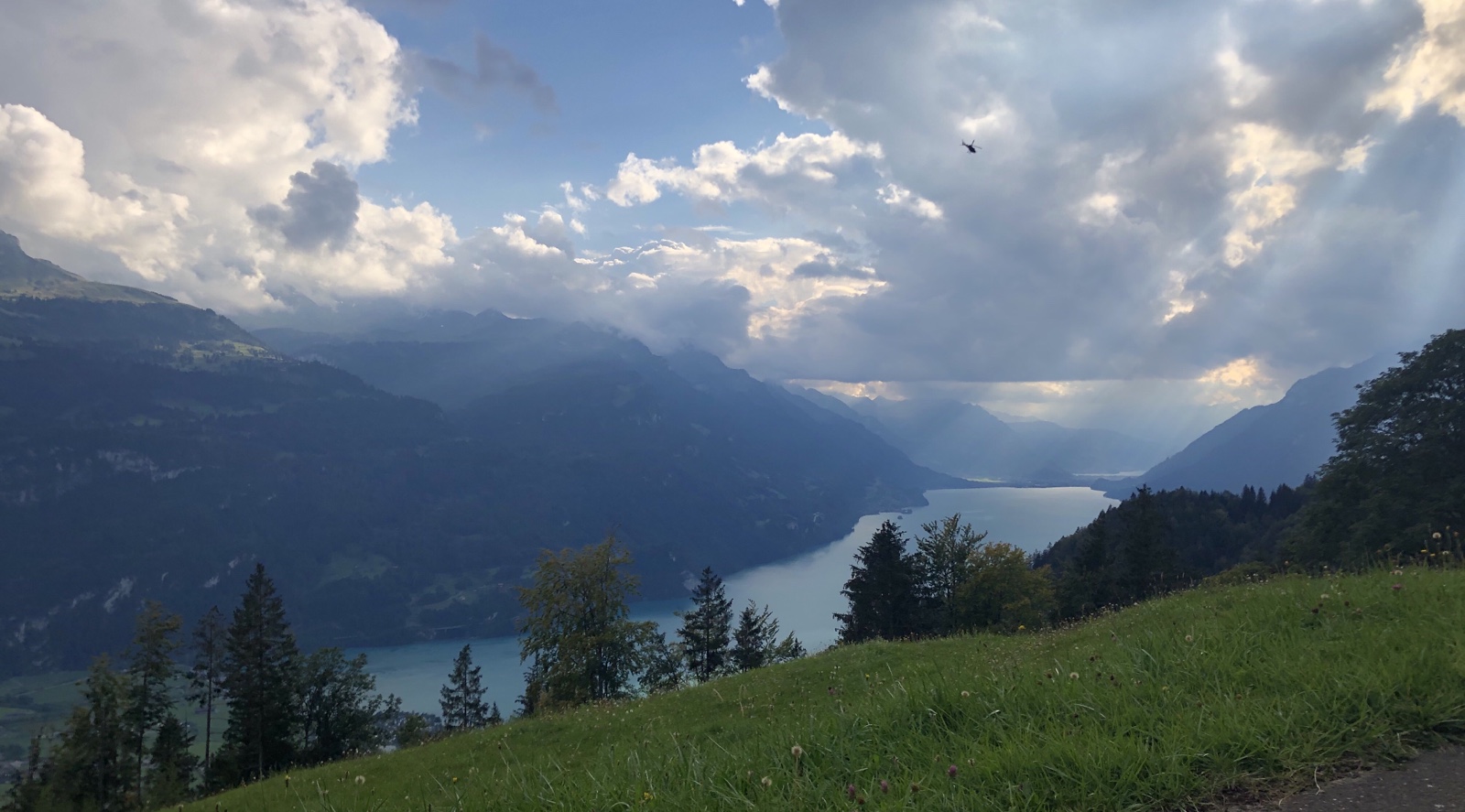 Während ich am Dorfen mit einem mir bis dahin unbekannten Ehepaar aus Schwanden bin, bemerken wir wie eine Regenwand vom Bödeli her sich rasant annähert.