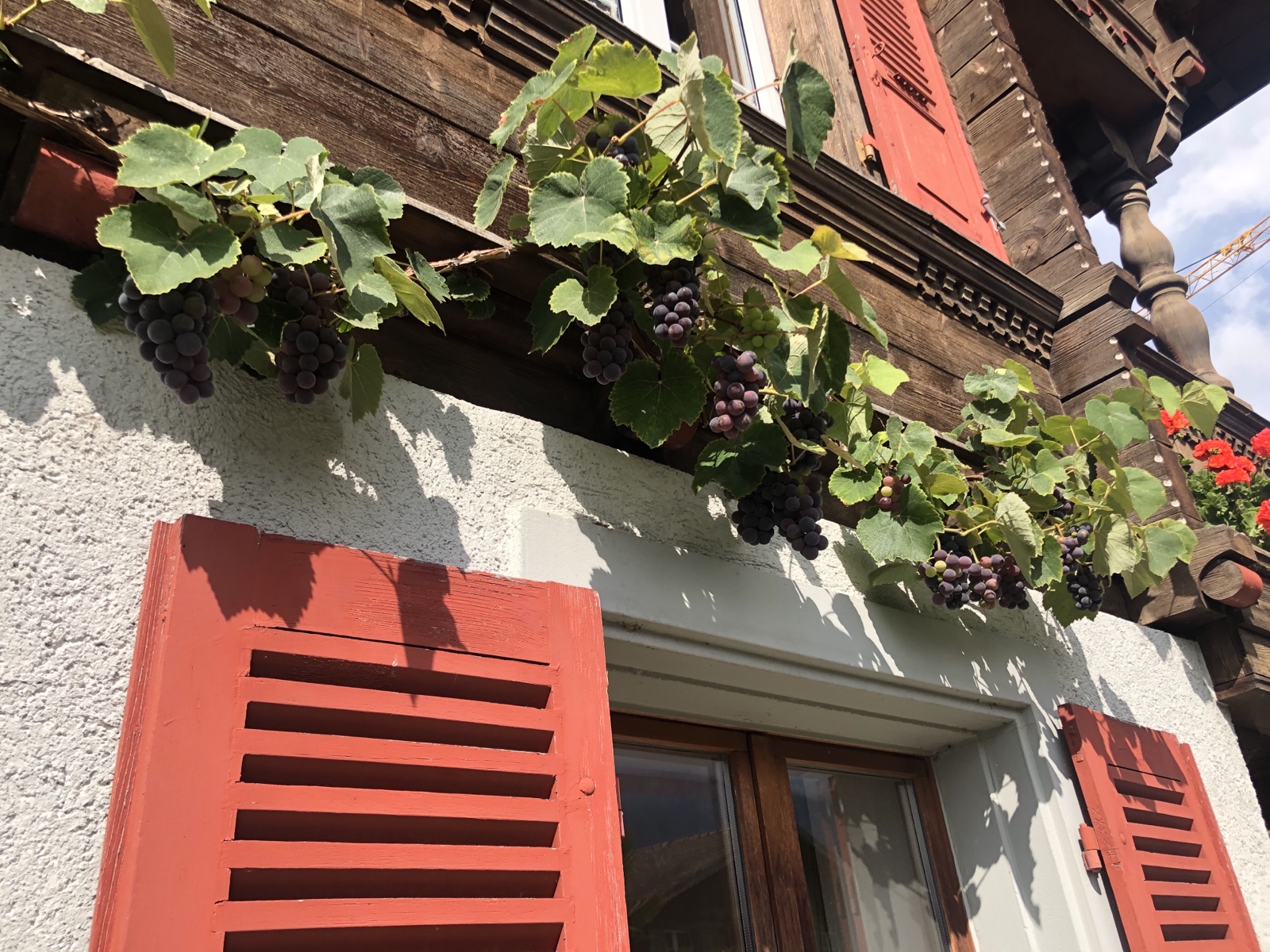 So schlafe ich heute fast den ganzen Tag. Nur kurz schaue ich mittags vor das Haus und rätsle, warum die Trauben an der Südwand, dieses Jahr so unregelmässig Farbe bekommen und reifen!