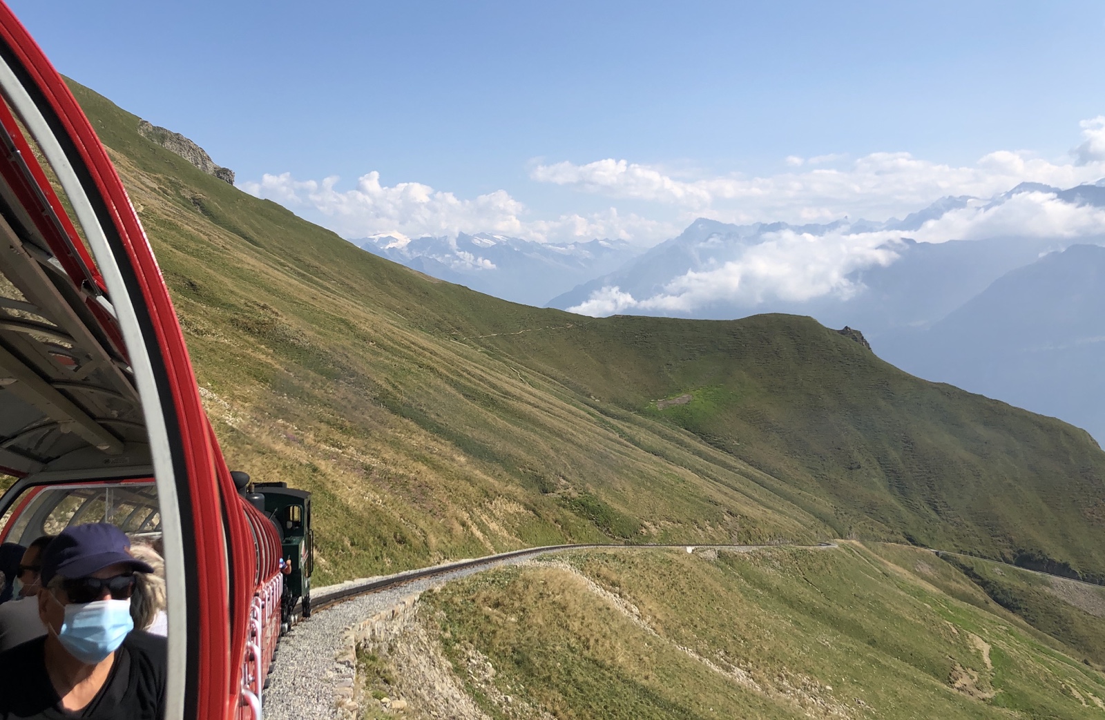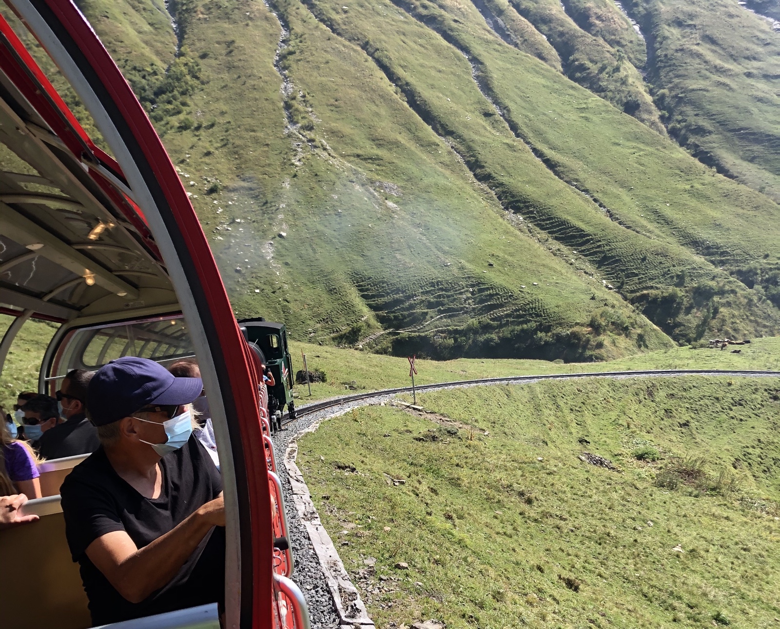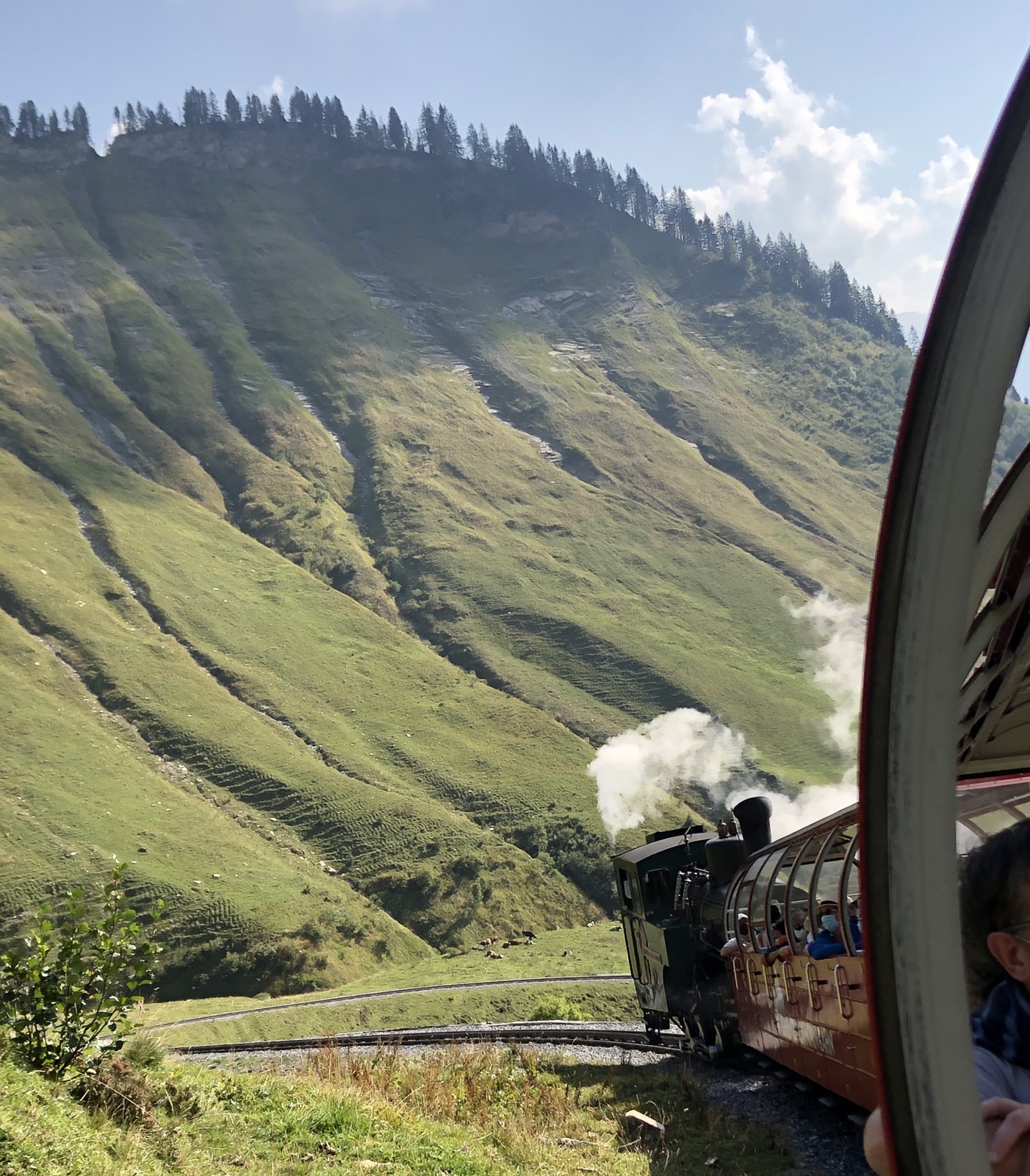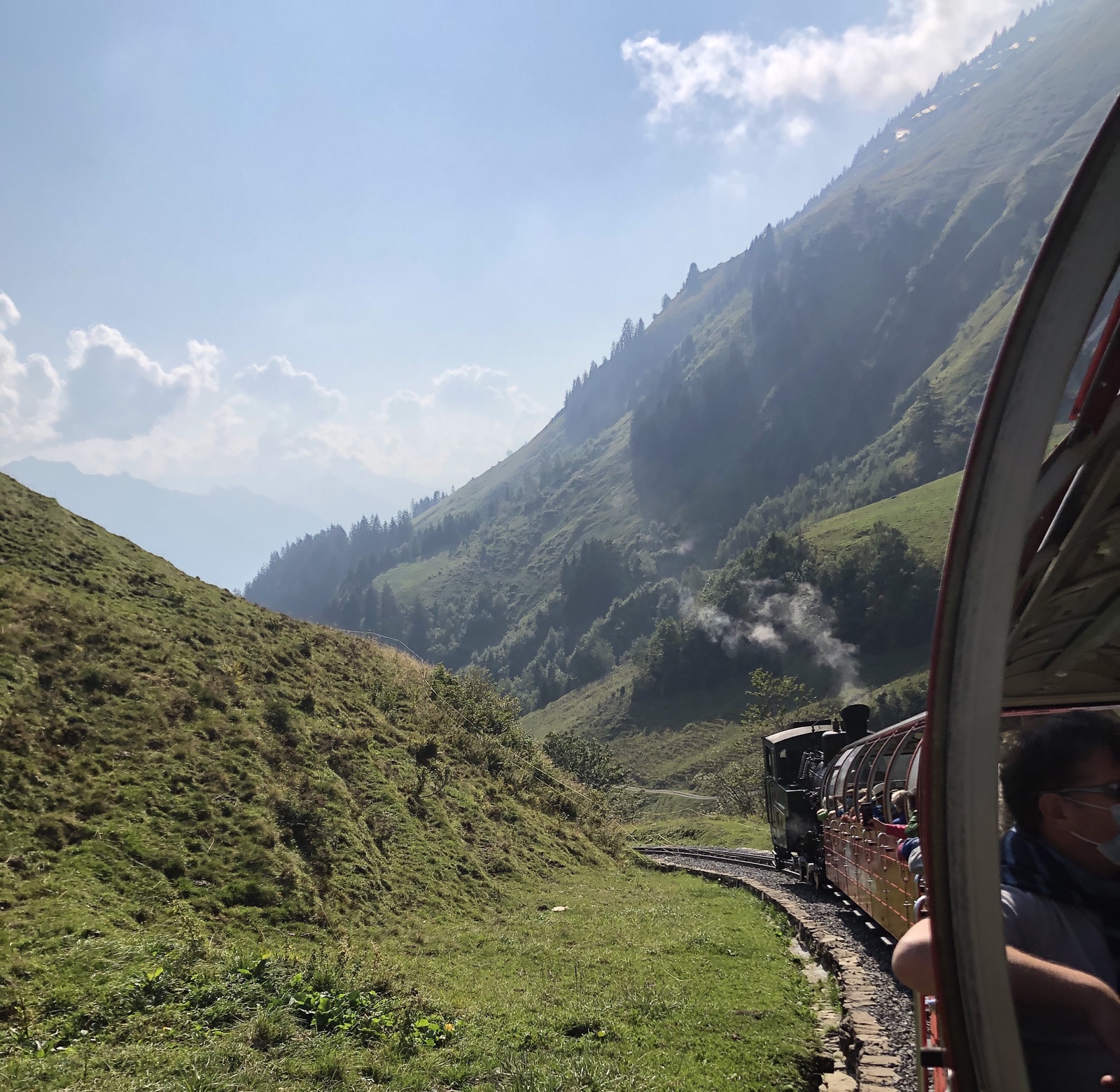 Ich bin ganz erstaunt, dass nur ein knappes Dutzend Fahrgäste im letzten Zug sitzen. Die letzte Talfahrt ist ein ganz besonderer Genuss im Abendlicht.