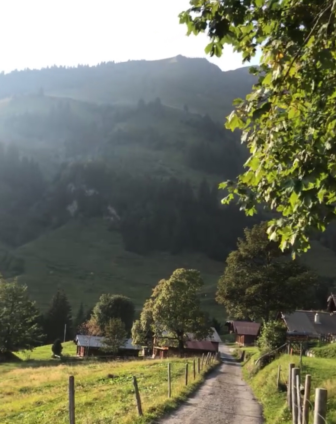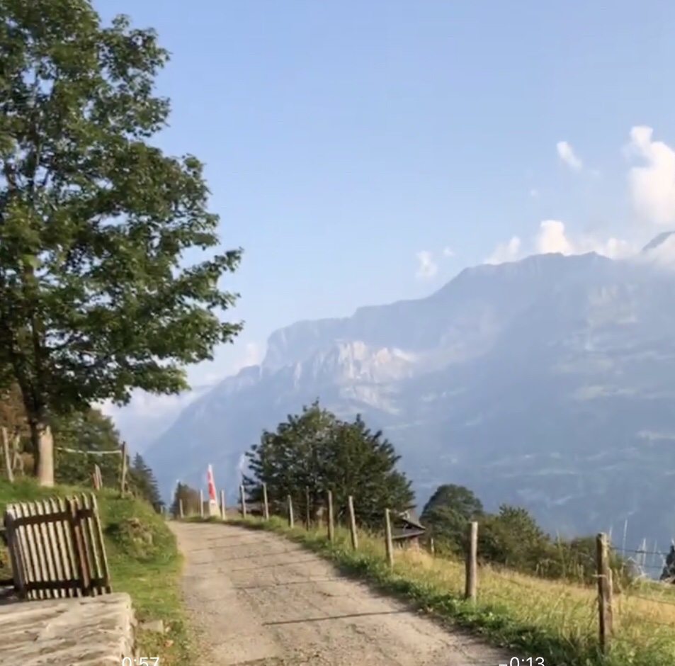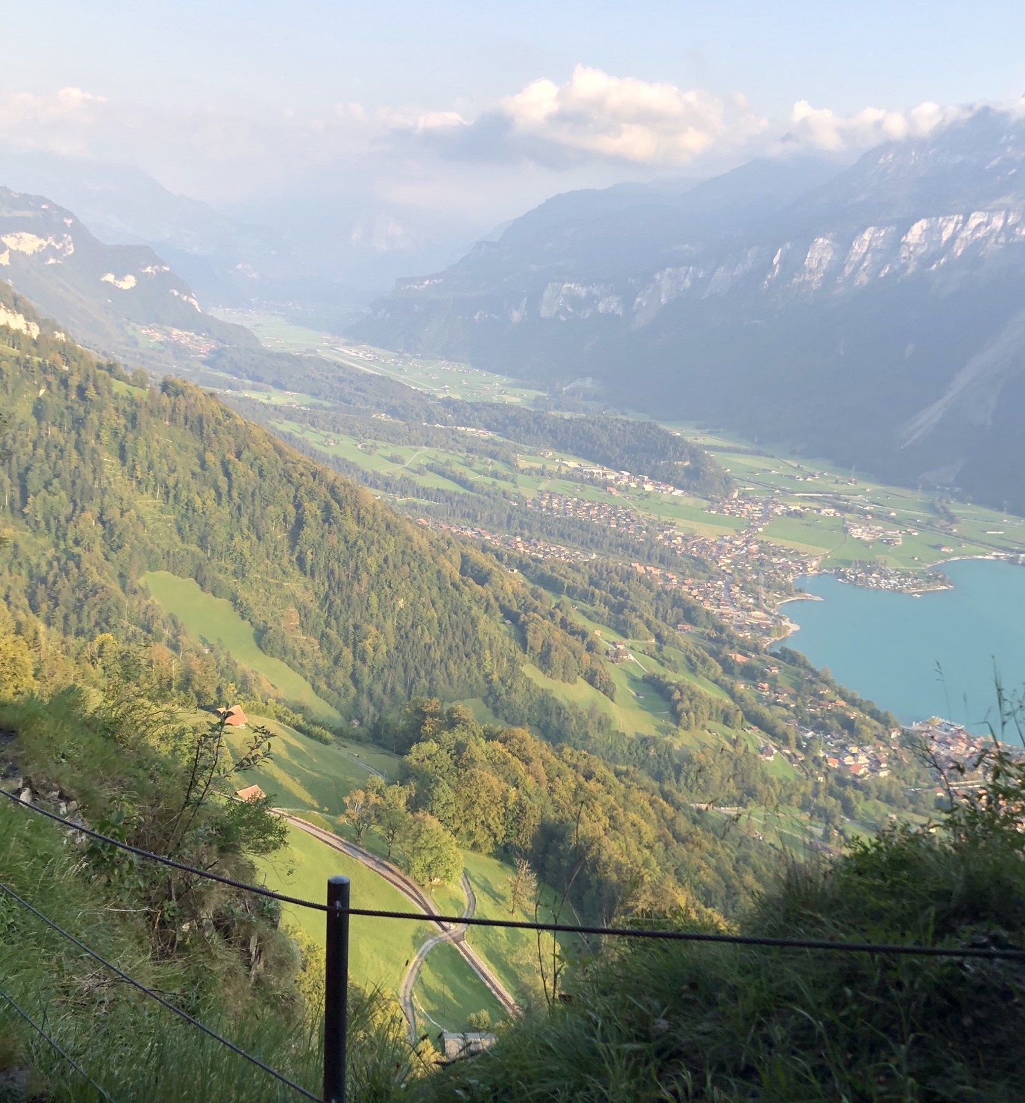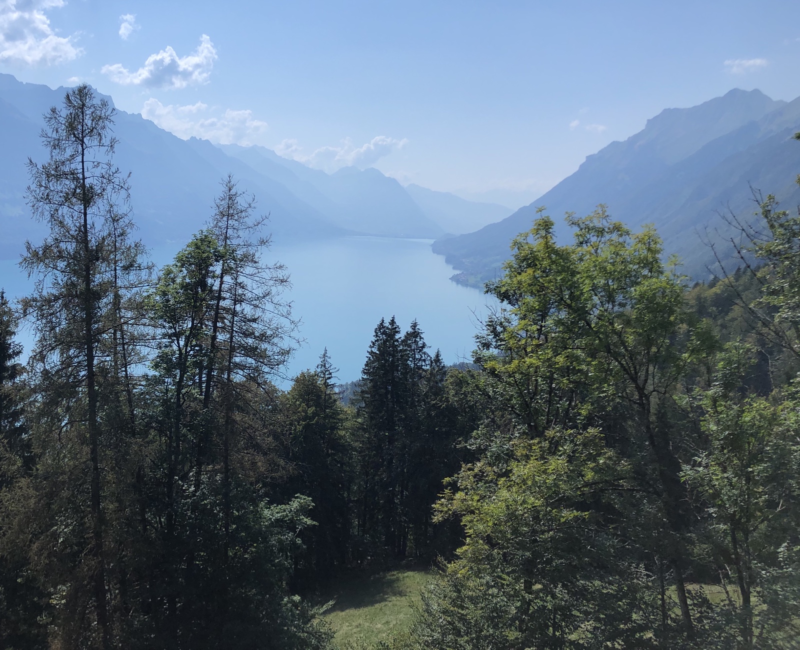 nach Geldried hinauf, von wo aus wir bald einen schönen ersten Blick auf den Brienzersee und die umliegenden Berge erhaschen.