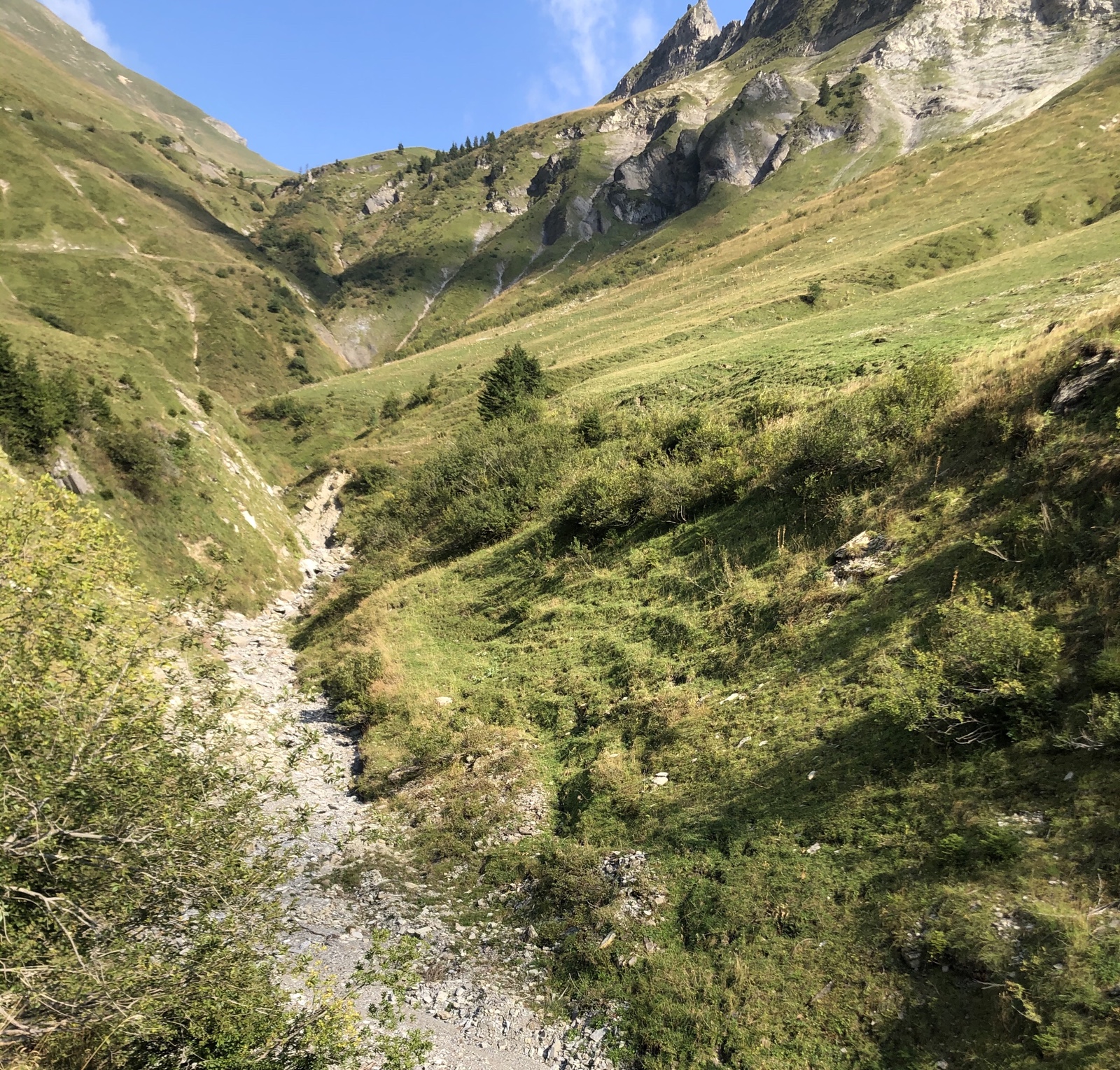Später kommen noch zwei Frauen mit Hund, die den steilen Weg über das Lättgässli zum Chruterenpass als vermeintlich schnellste Wanderung zur Planalp gegangen sind. 4.5 Stunden anstatt die ganz oben angeschriebenen 2 Stunden hätten sie gebraucht, aber immerhin 2 Steinböcke gesehen, toll.