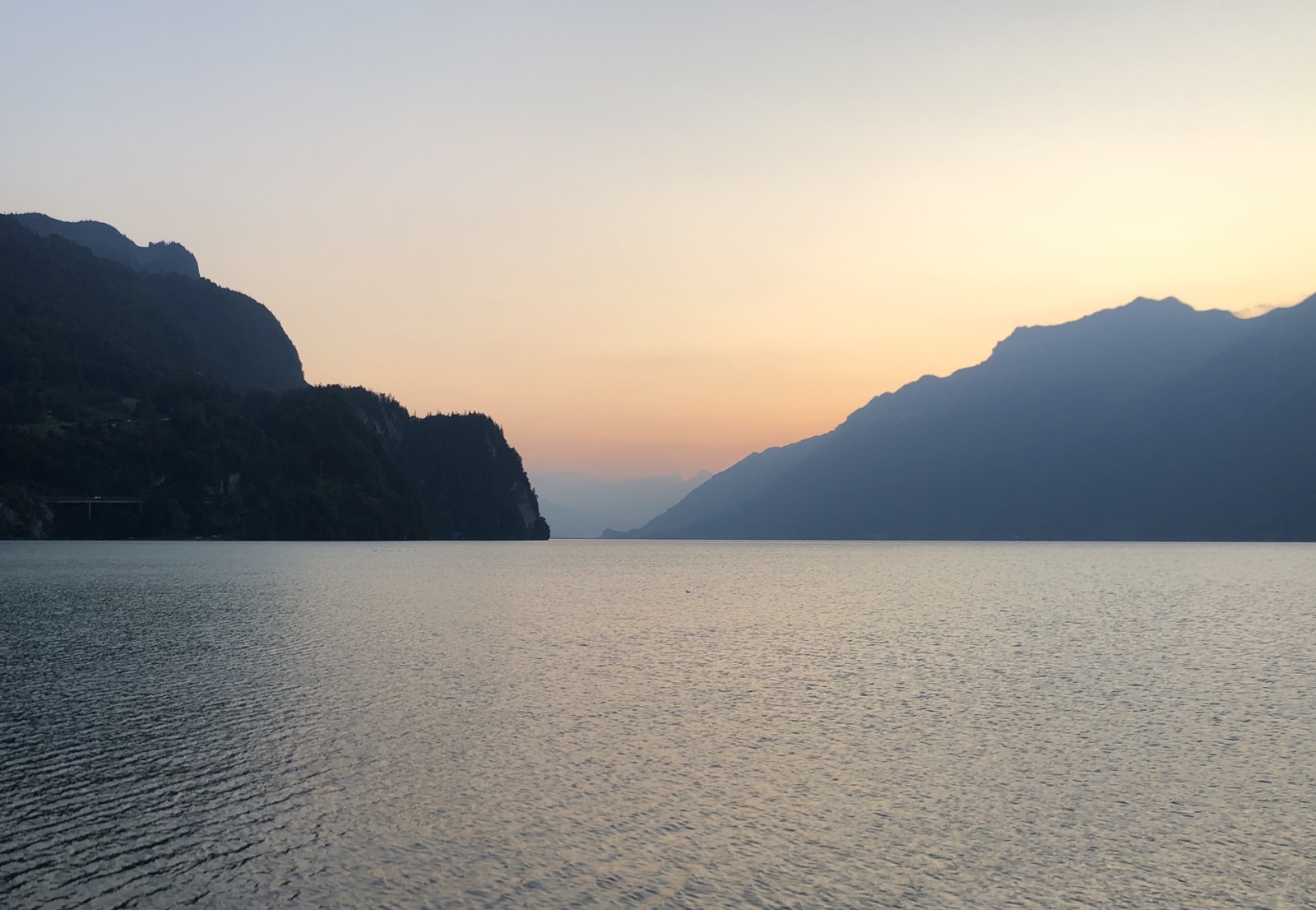 Ich bleibe noch sitzen, geniesse die langsam runter gehende Sonne und beschliesse, erst mit dem letzten Zug um 18:12 Uhr ab Planalp nach Brienz zu fahren.