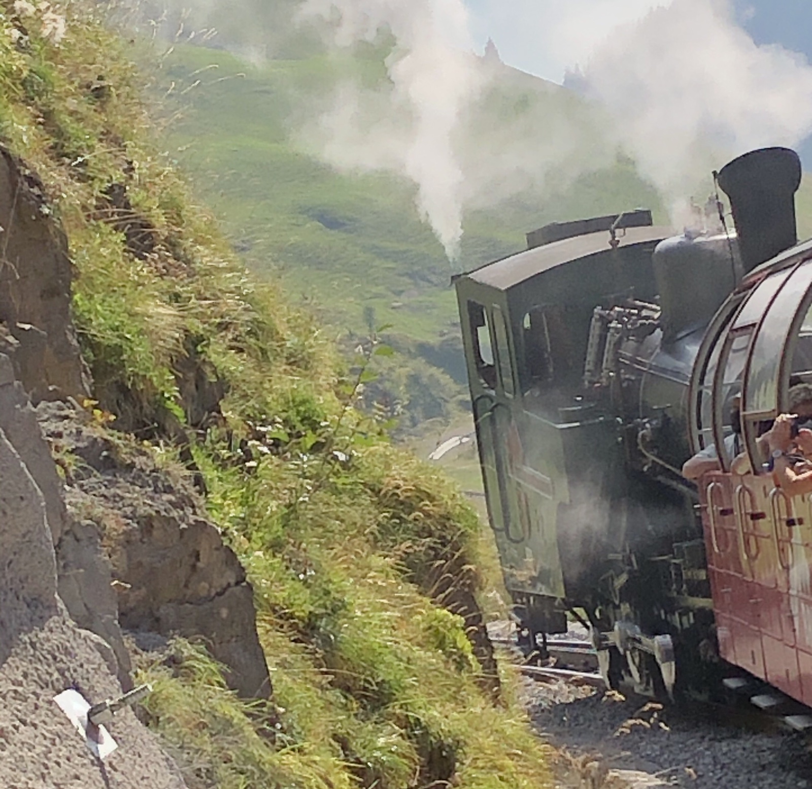 Mir gefällts, die im Tunnel häufig stur auf ihre Mobilfons blickenden oder lethargisch da sitzenden Reisenden, mittels “Handzeichen schaffen Klarheit“ auf die grandiose Aussicht vom 2. und 3. Tunnelfenster aus, aufmerksam zu machen.