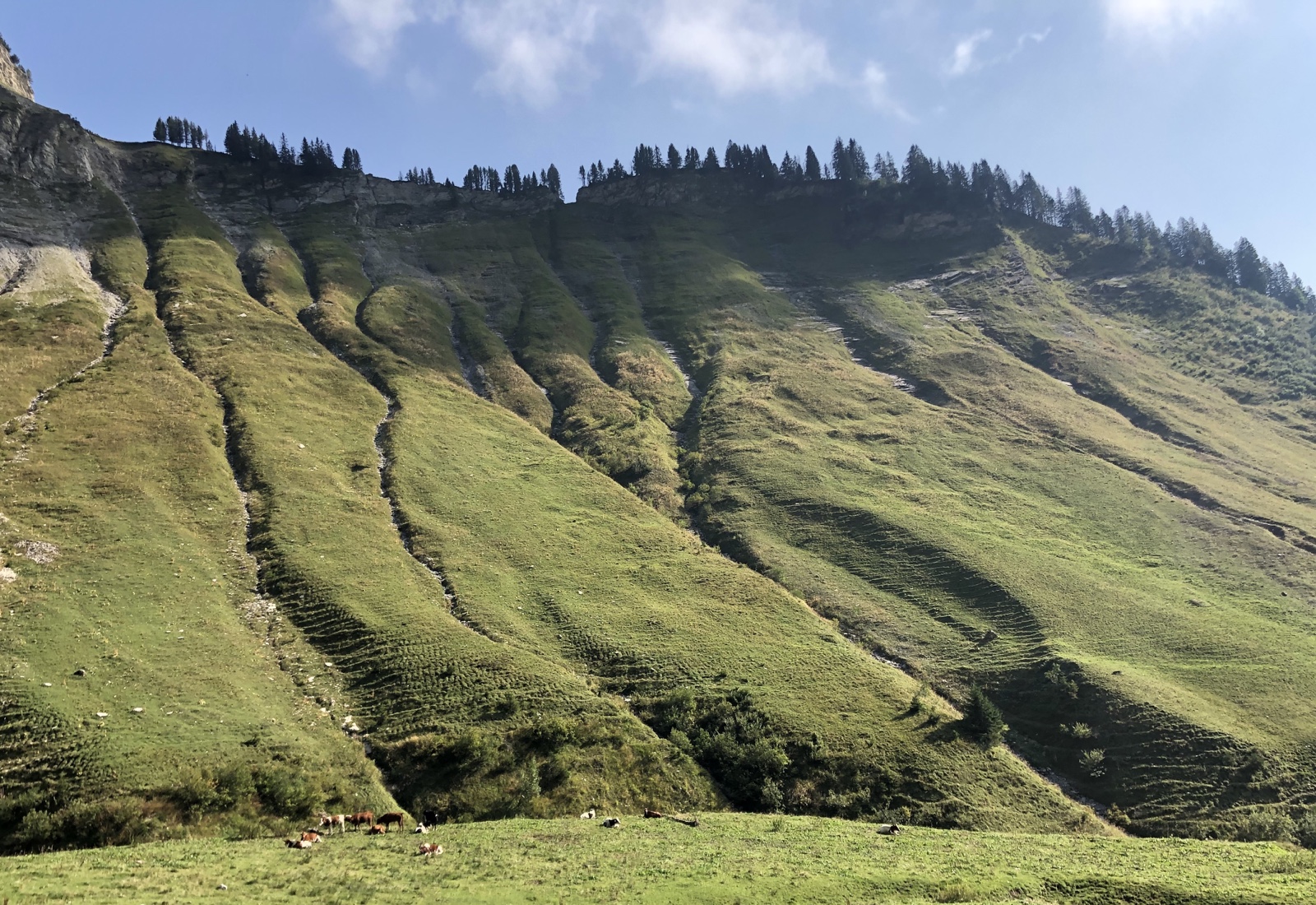 Weite Kurven charakterisieren die Chüemad. Nun geht es bergauf nach der oberen Kreuzungsstation “Obrischten“.