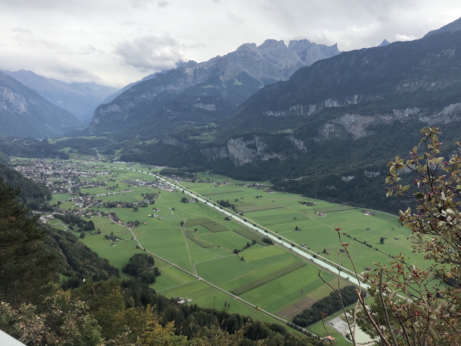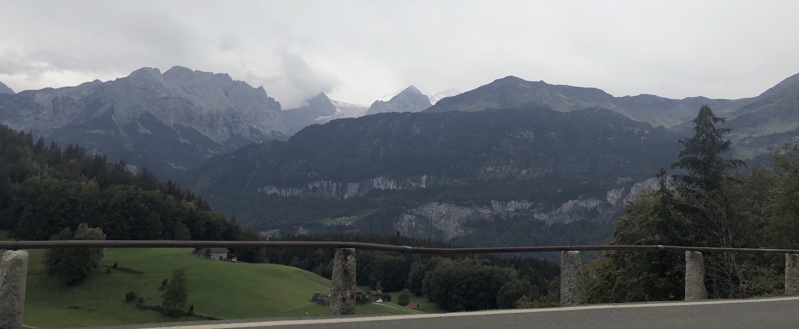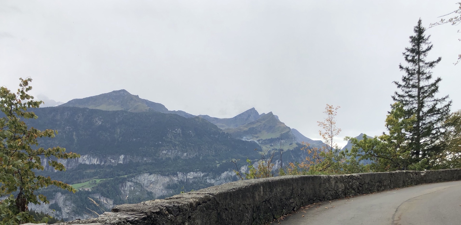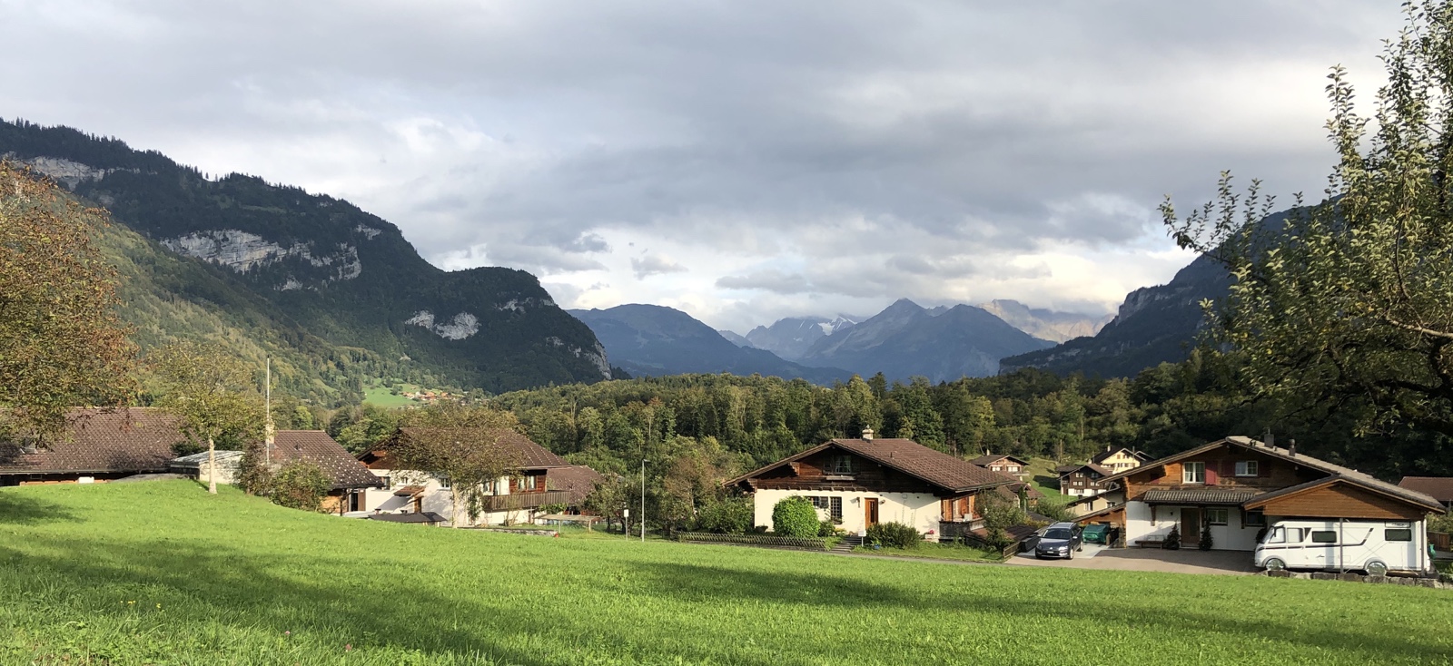 Möglichst ohne anzuhalten, geniesse und fotografiere ich die Aussicht ins Aaretal, nach Meiringen und auf die gegenüberliegenden Berge.
