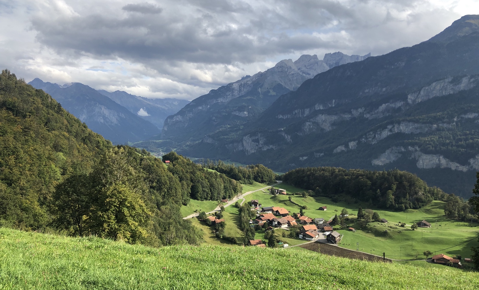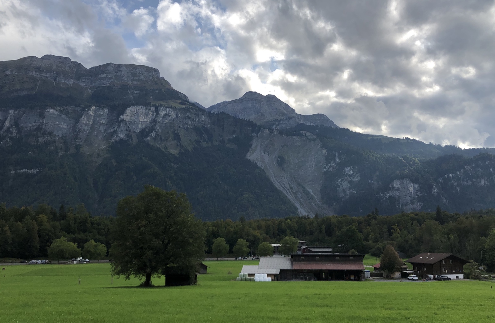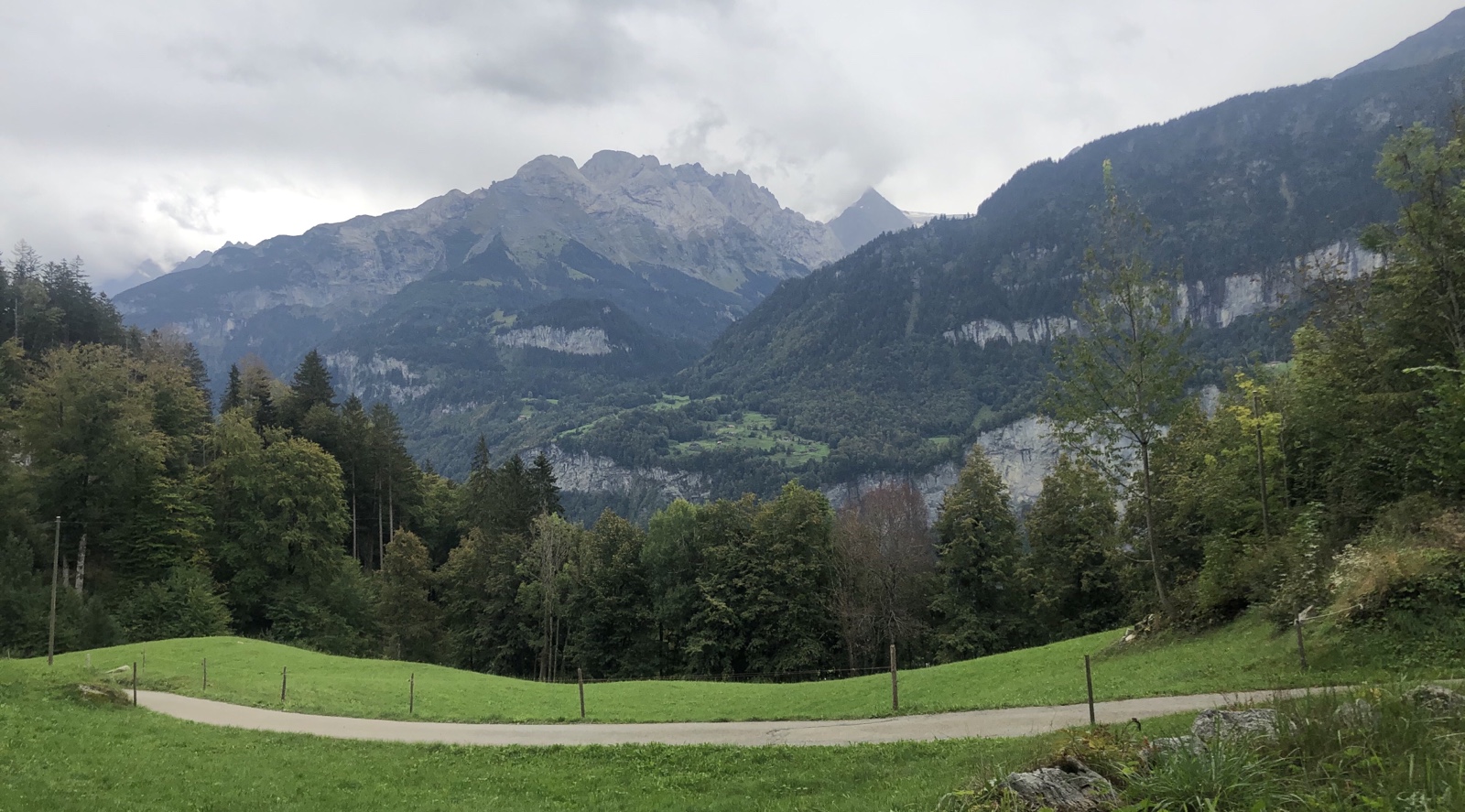 Möglichst ohne anzuhalten, geniesse und fotografiere ich die Aussicht ins Aaretal, nach Meiringen und auf die gegenüberliegenden Berge.