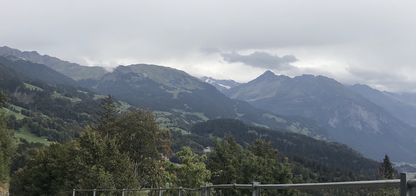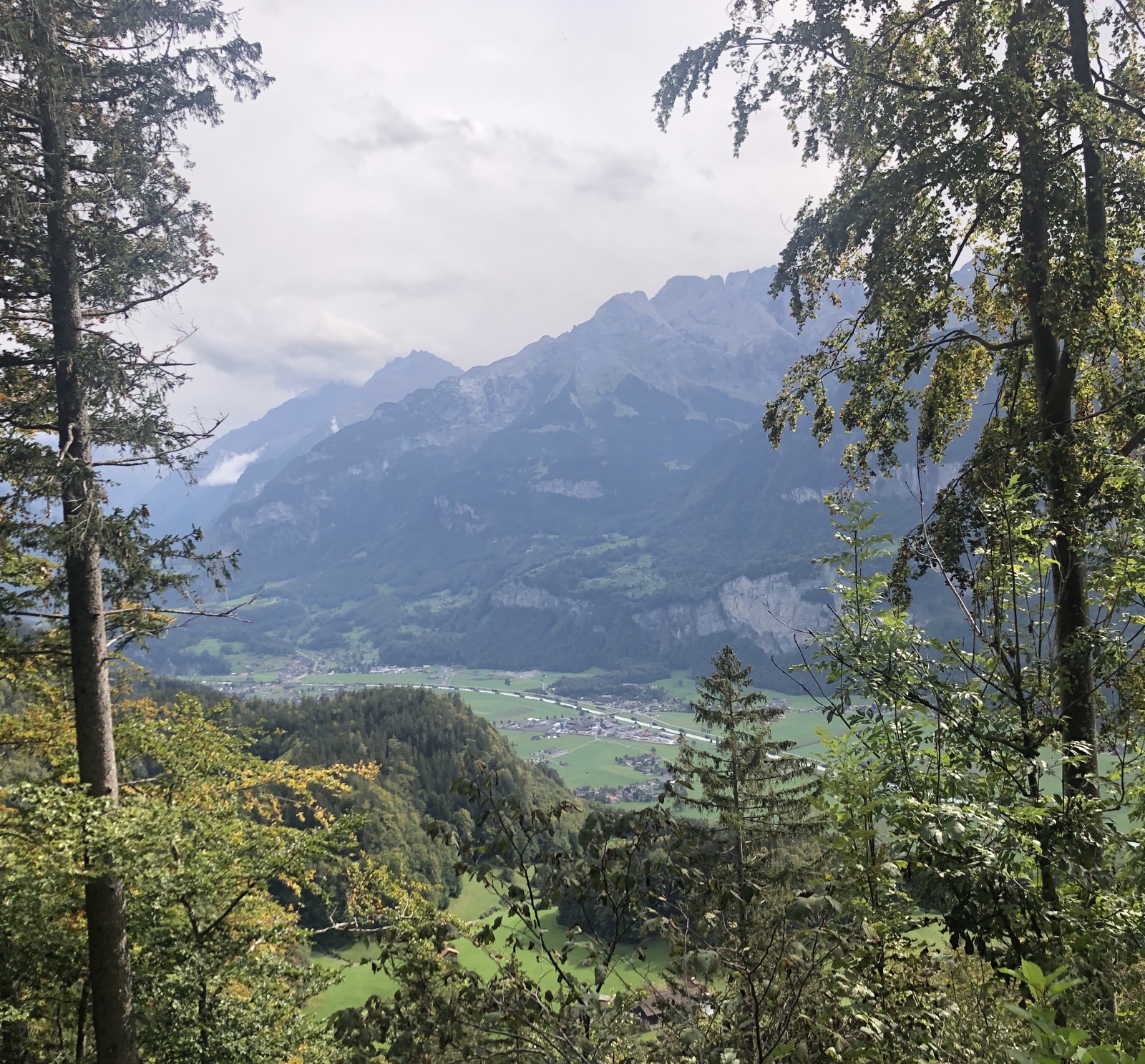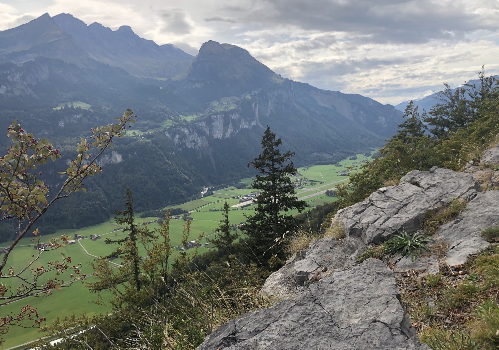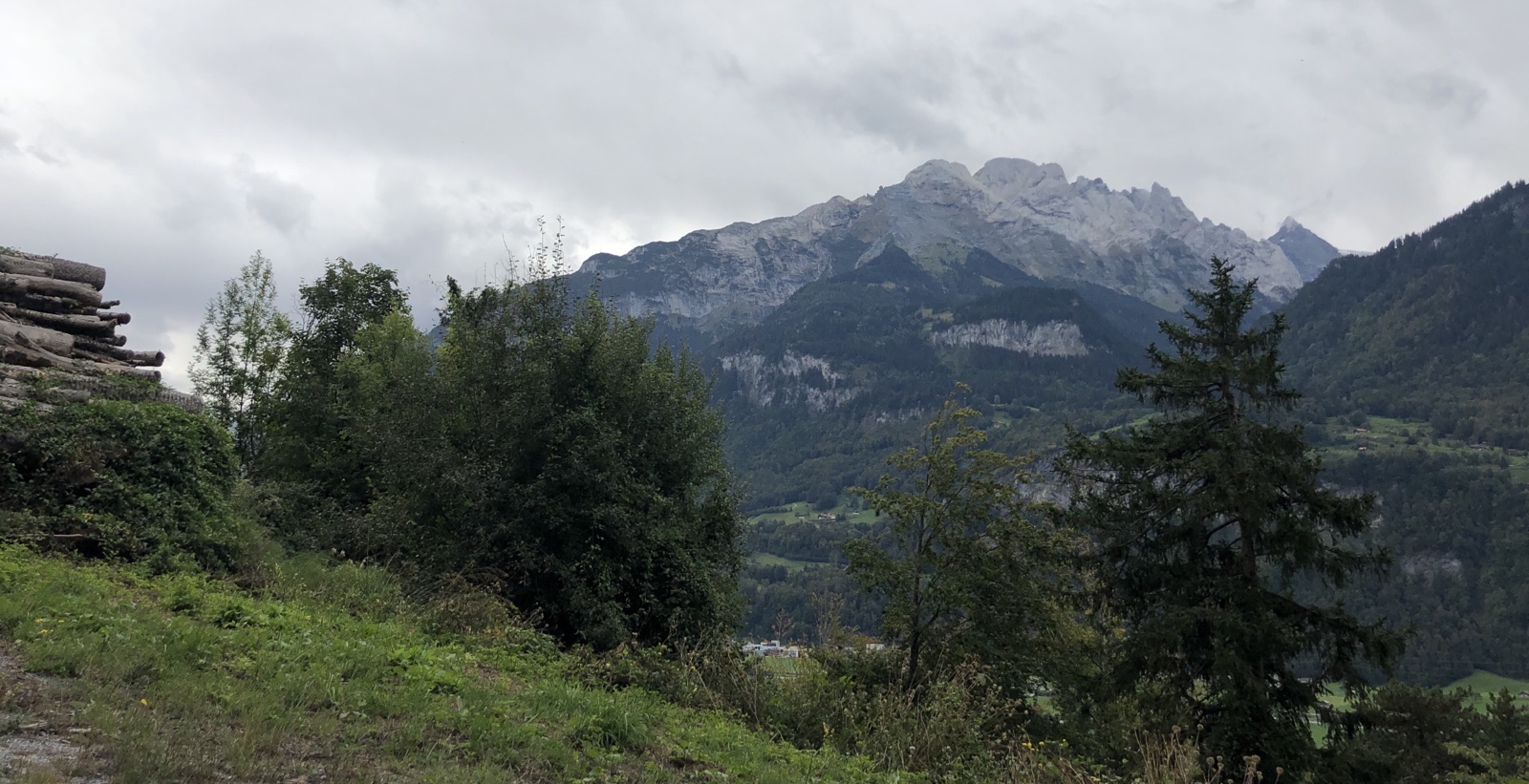 Möglichst ohne anzuhalten, geniesse und fotografiere ich die Aussicht ins Aaretal, nach Meiringen und auf die gegenüberliegenden Berge.
