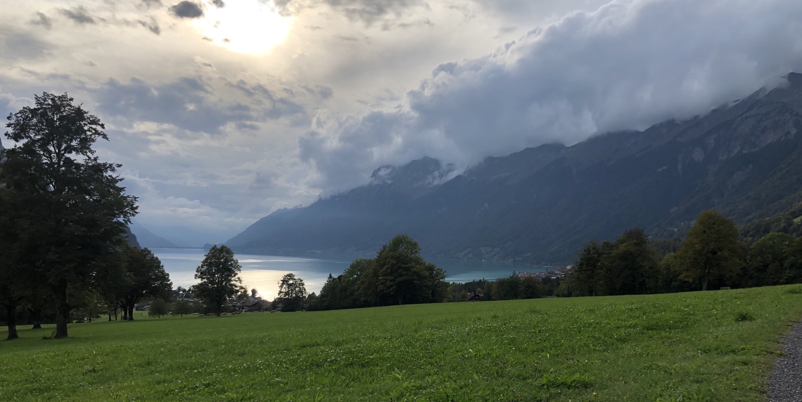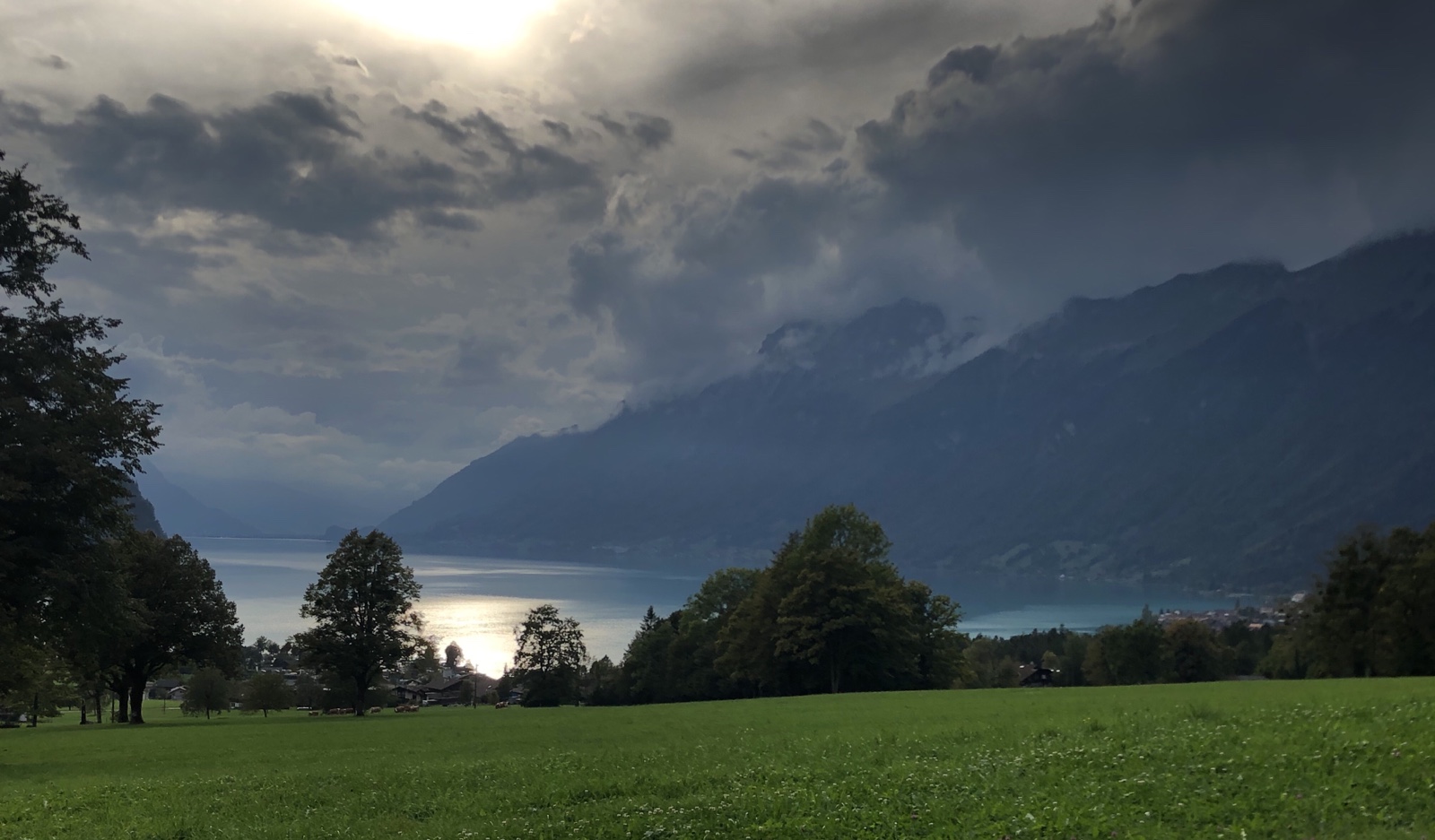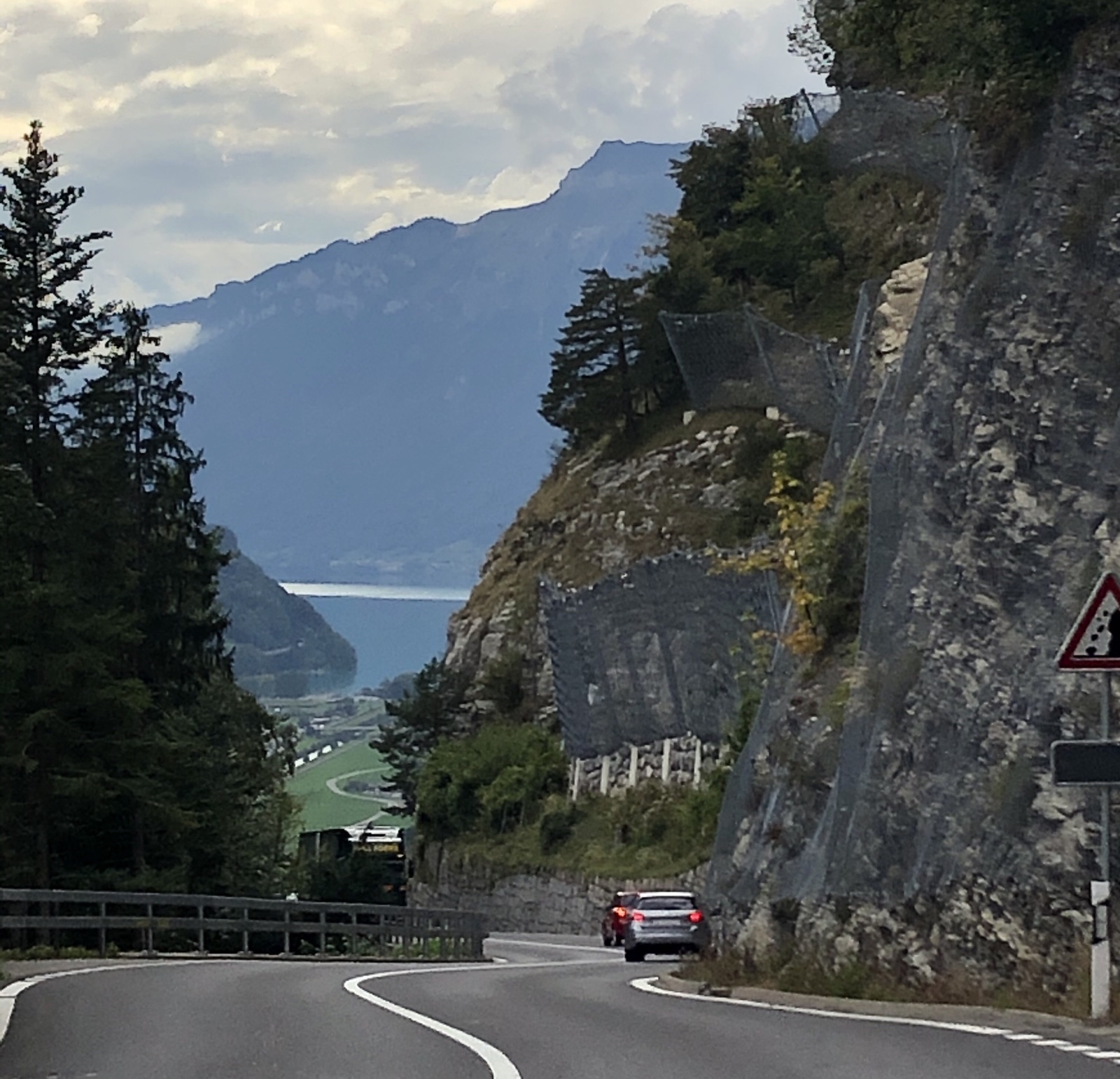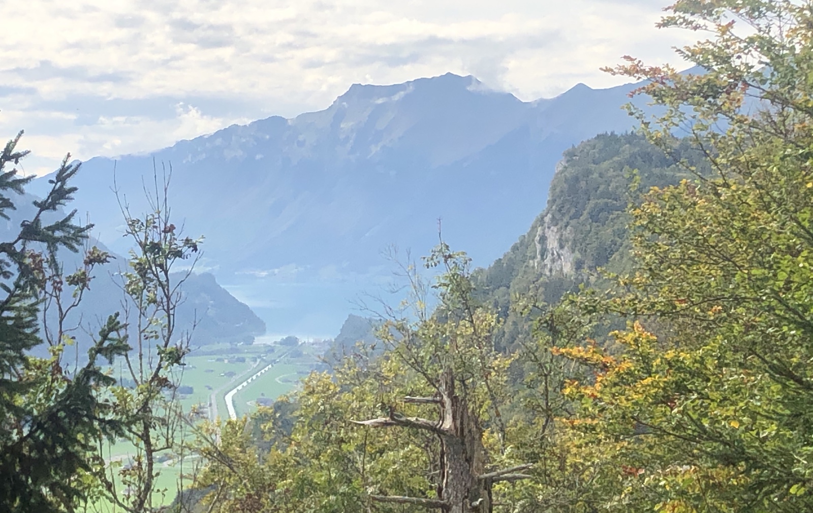 Auf der Hauptstrasse vom Hasliberg zum Brünig, erhasche ich, 200 Höhenmeter unterhalb des Fliegertruppenstützpunkts, einen wunderschönen Ausblick auf den Brienzersee.