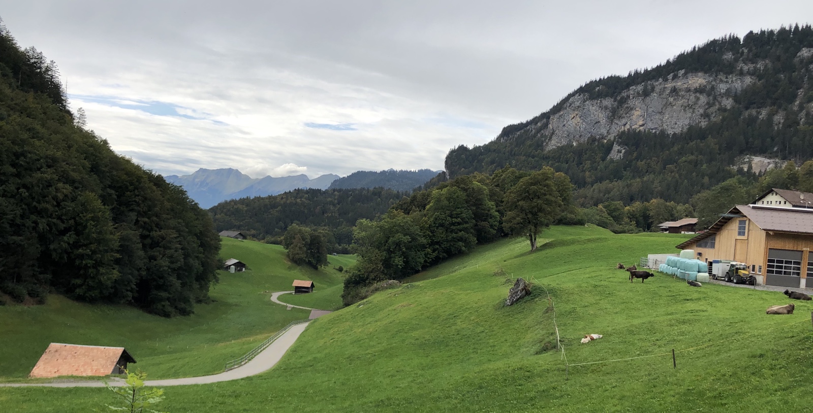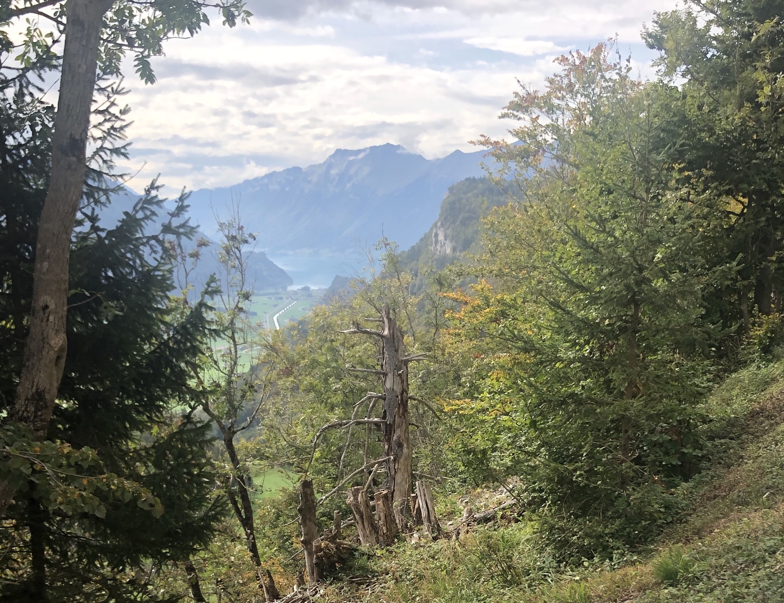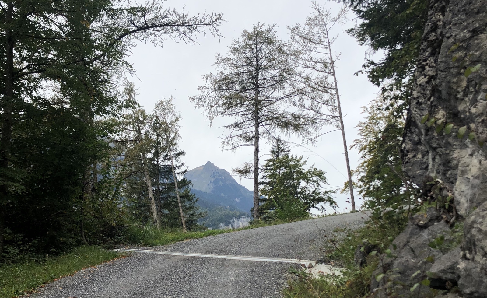 Auch in Meiringen halte ich, trotz meiner Müdigkeit und entsprechenden Gelüsten auf einen Kaffee, nicht an. Bald bin ich im Anstieg zum Hasliberg. Im lockeren Wald und unter der Kraftanstrengung wird mir rasch warm.