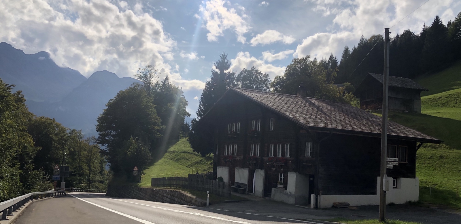 Gegen 13 Uhr starte ich und radle ohne Unterwegshalt auf sonnigen Nebenstrassen über Brienzwiler – Hirssi nach Unterheid. Hier möchte ich den letzten frischen Ziegenkäse kaufen. Leider ist niemand zu Hause. Also weiter nach Meiringen.