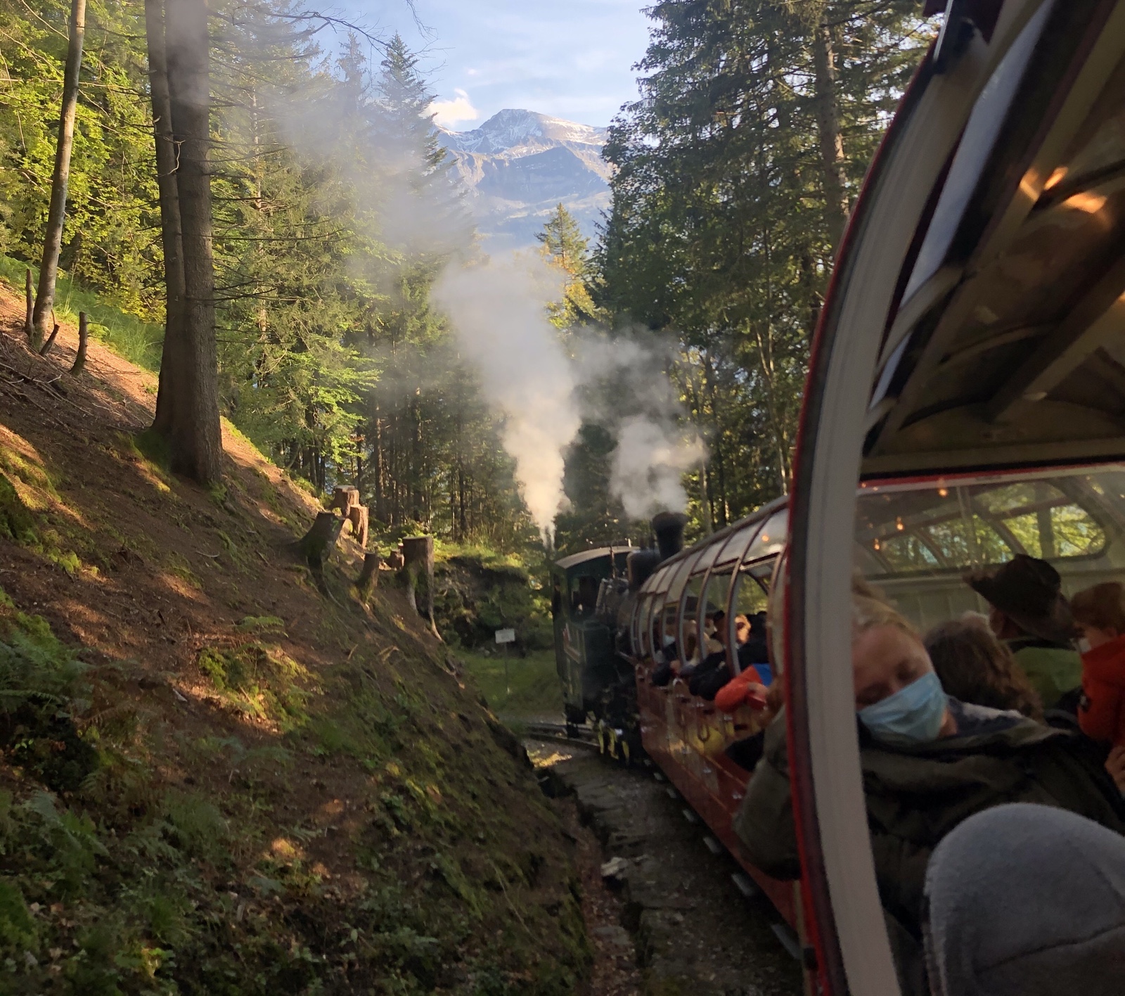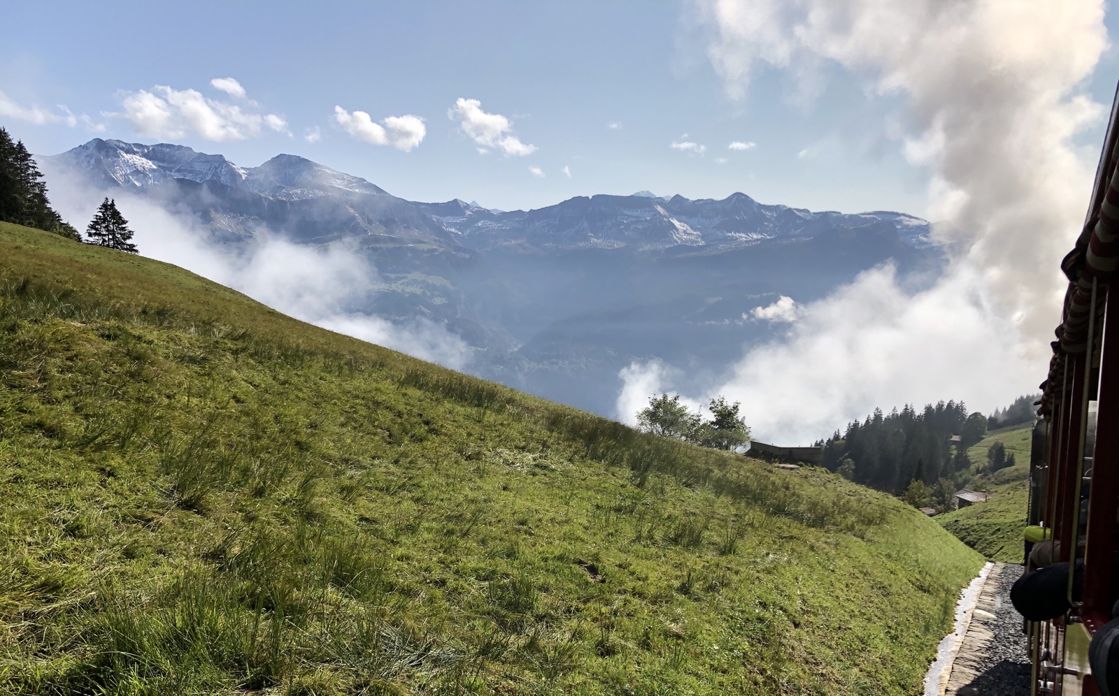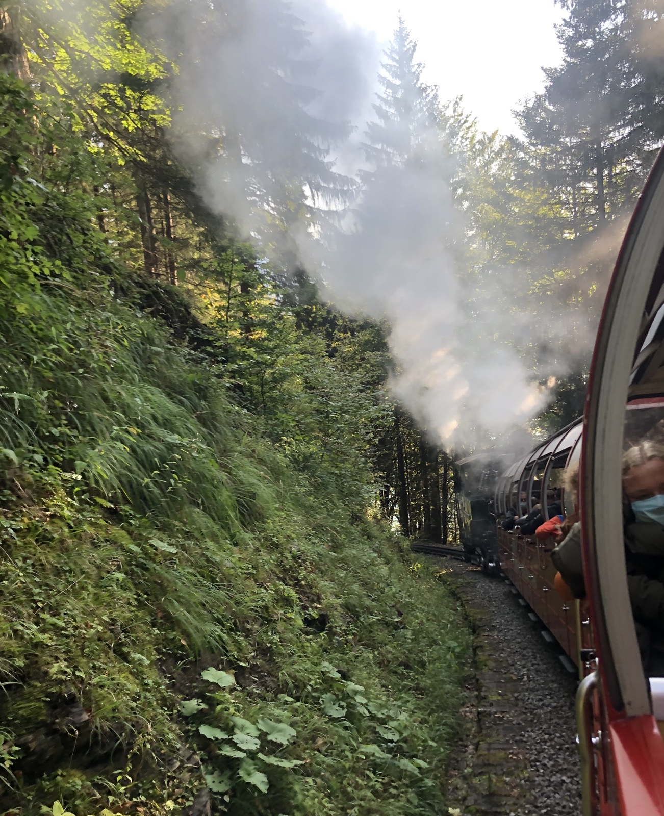Neben mir sitzen Reisende, die ob dem Kohledampf stöhnen. Sie wären lieber mit dem anderen, mit reinem Wasserdampf angetriebenen Zug ins Tal gefahren. Dass diese andere Lok mit Heizöl in einem Ölbrenner das Wasser aufheizt und deswegen viel mehr stinkt, ist Ihnen bis dato nicht aufgefallen. Naja, die Wahrnehmung und die Geschmäcker sind verschieden!