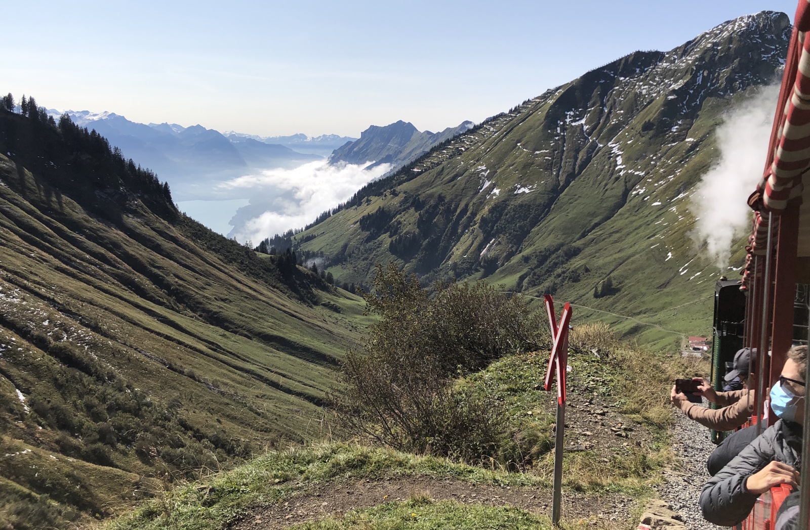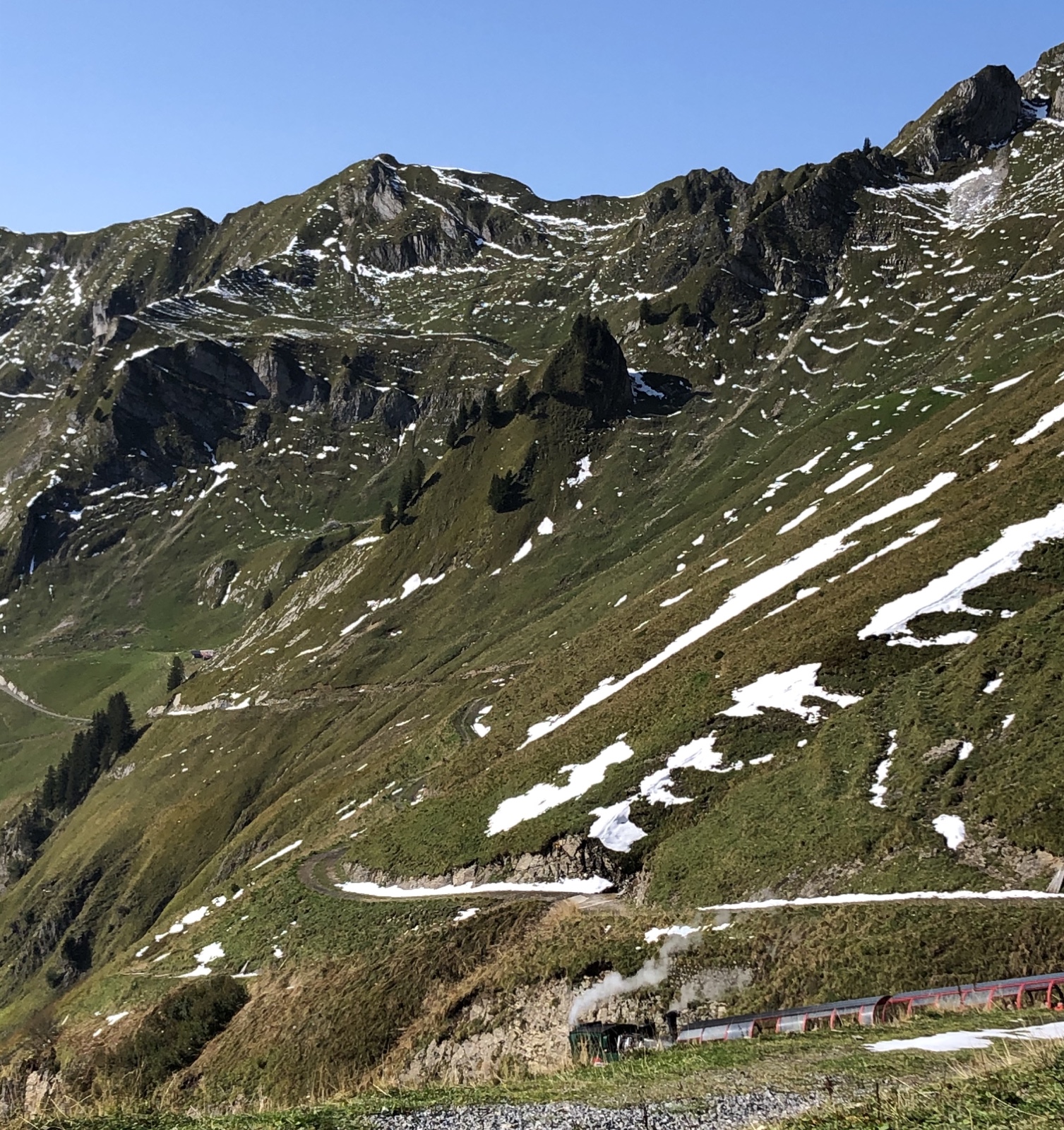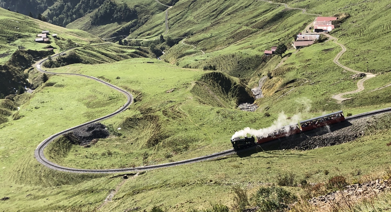 Neben mir sitzen Reisende, die ob dem Kohledampf stöhnen. Sie wären lieber mit dem anderen, mit reinem Wasserdampf angetriebenen Zug ins Tal gefahren. Dass diese andere Lok mit Heizöl in einem Ölbrenner das Wasser aufheizt und deswegen viel mehr stinkt, ist Ihnen bis dato nicht aufgefallen. Naja, die Wahrnehmung und die Geschmäcker sind verschieden!