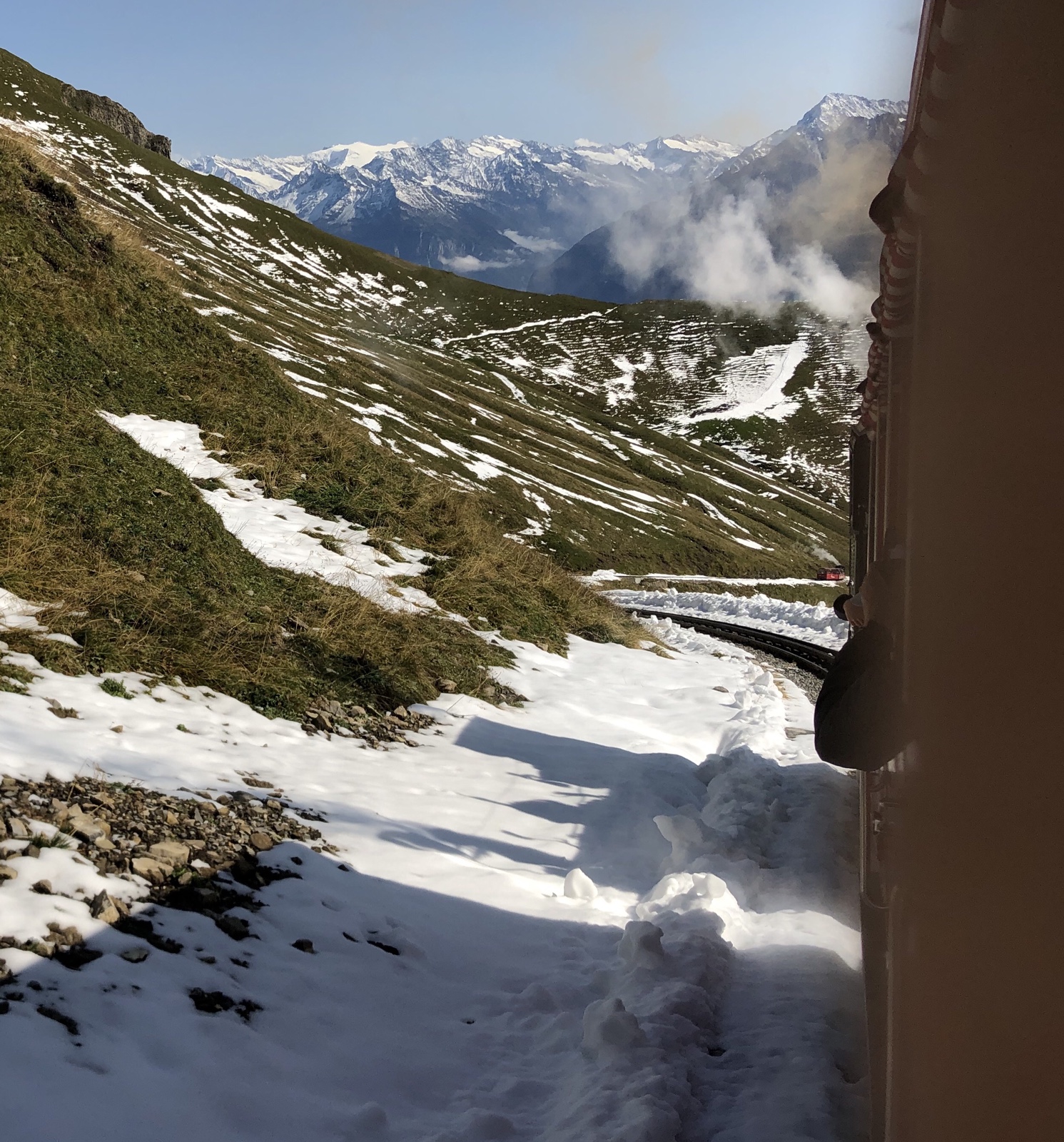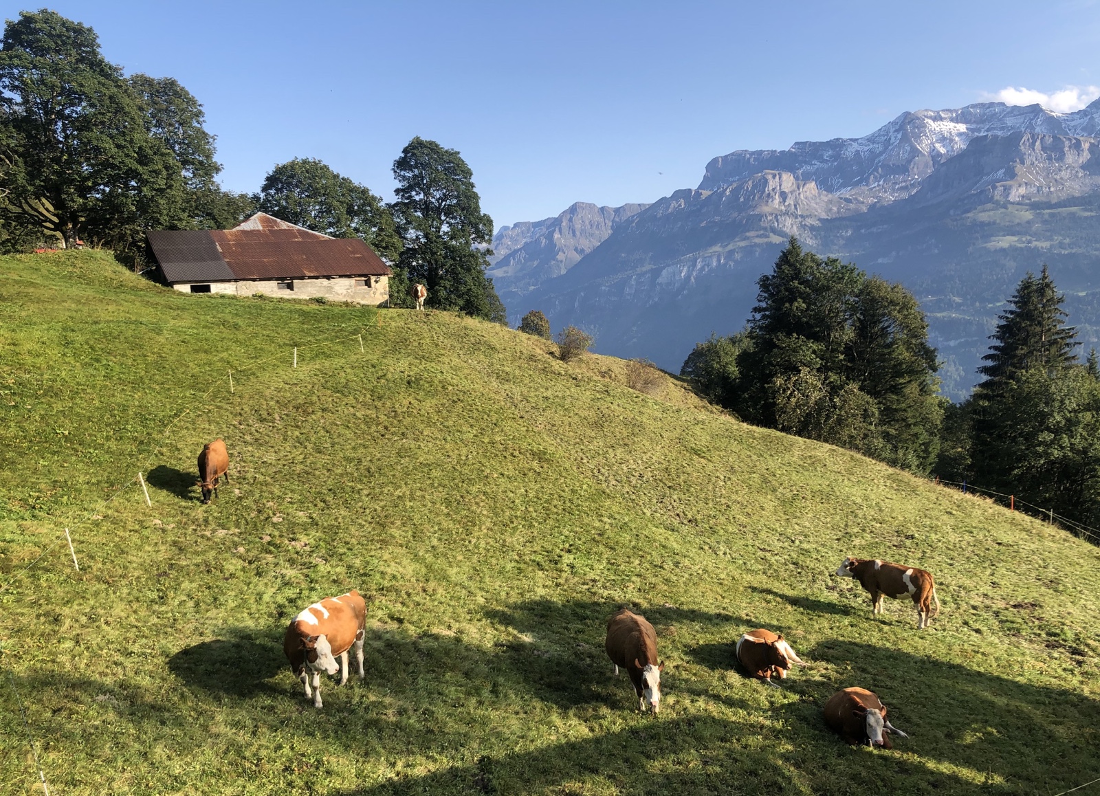 16:30 Uhr wandert ein Alpaufzug neben dem Berghaus vorbei; einziger Unterschied zum Frühling, die Kühe tragen keine Glocken. Wie mir die Bauern beim Spaziergang zum Bahnhof erklären, hätten Sie in der vorigen Woche, wegen zu starkem Schneefall die Alp verlassen müssen. Es habe hier oben aber noch so viel gutes Gras, dass es schade wäre um das Futter.