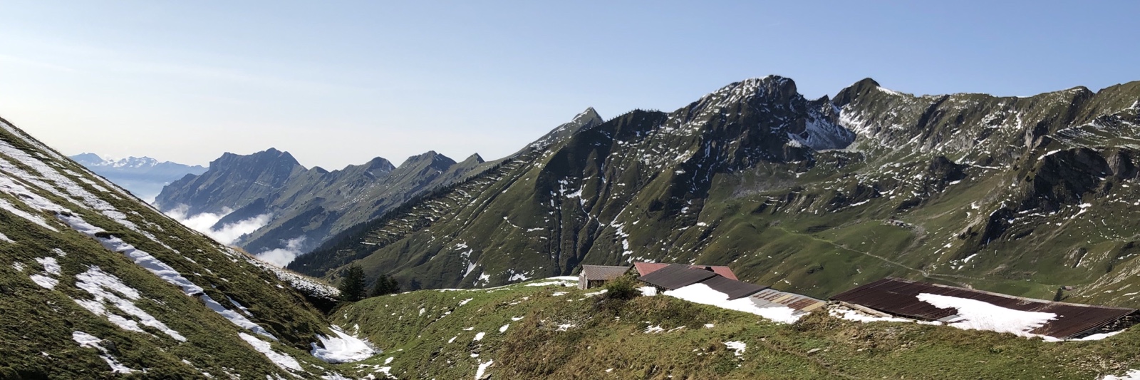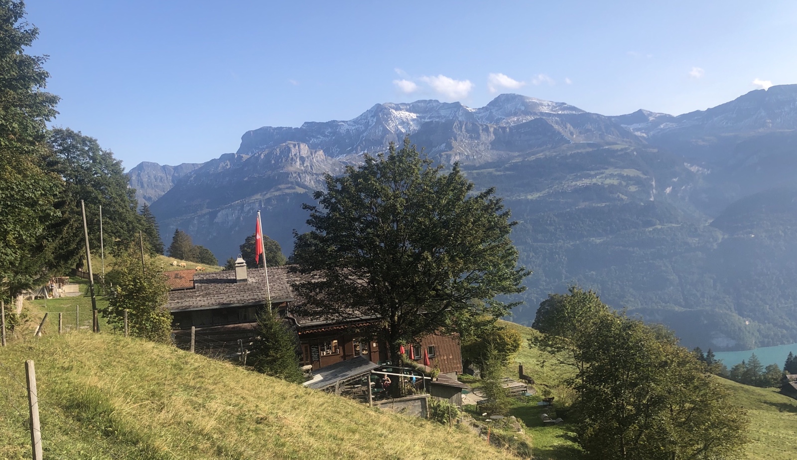 Um 15 Uhr bin ich im Berghaus Planalp, bestelle mir eine Flasche Bier (leider nicht Hiesiges, sondern aus dem Appenzellischen) und einen Chäsbrätel mit Birne und Knoblauch.
