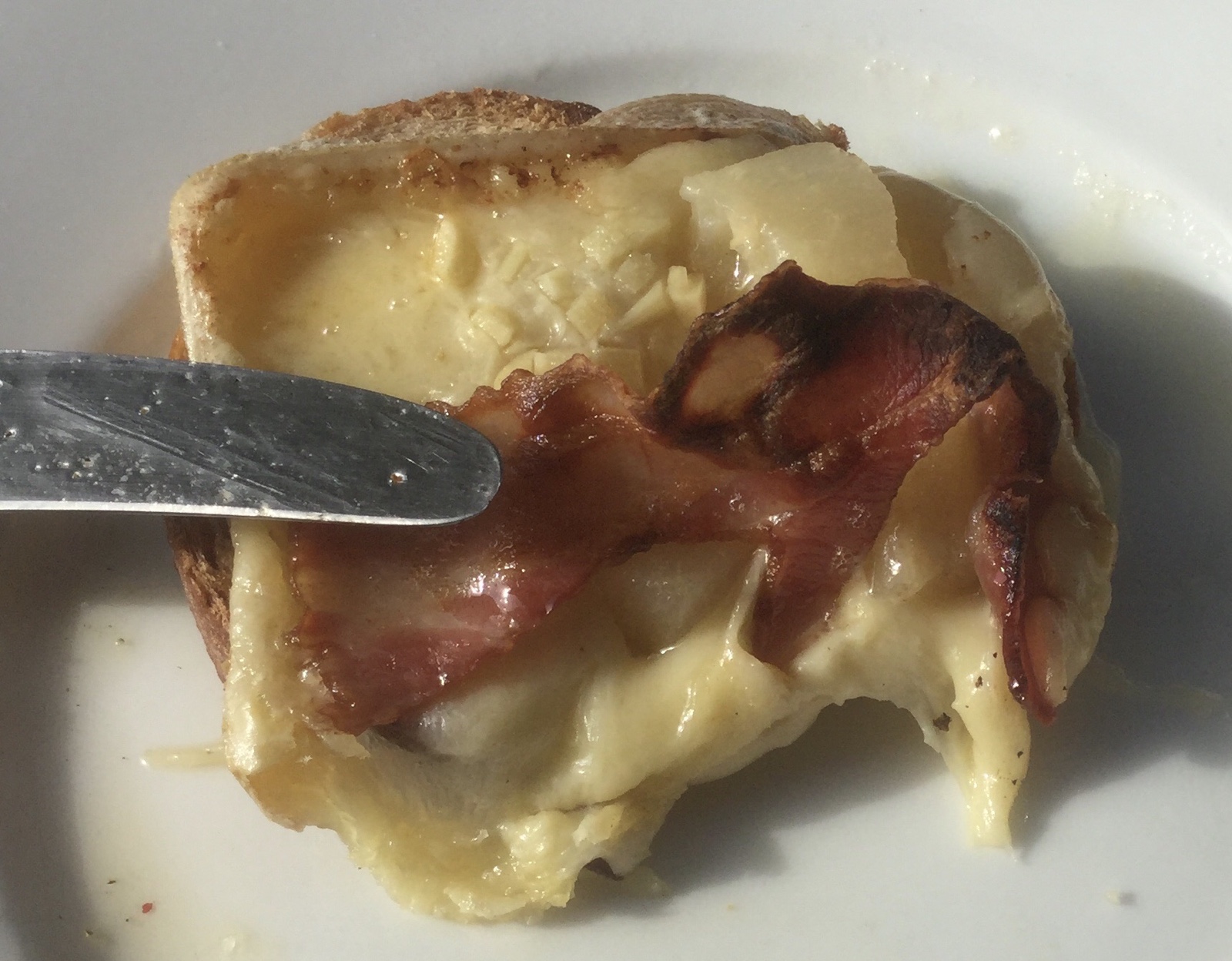 Offenbar gibt es eine neue, mir nicht sonderlich gut schmeckende Käsesorte, die Birne wurde in Essig konserviert, das Brot hat einen grauen Nebengeschmack.