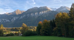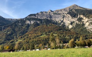 Eingangs von Meiringen kehre ich um. Die Sonne geht schon hinter der Oltschiburg schon unter.