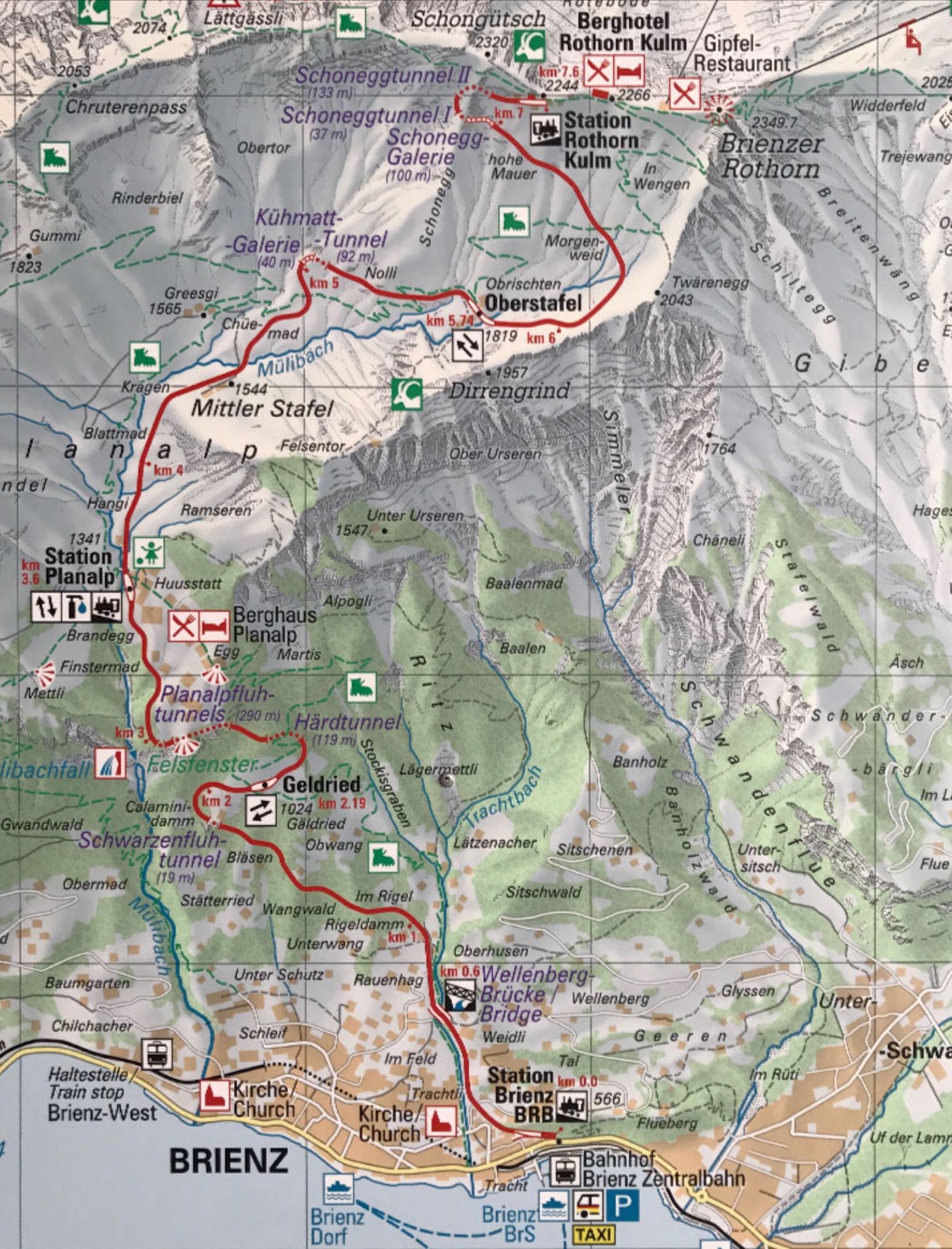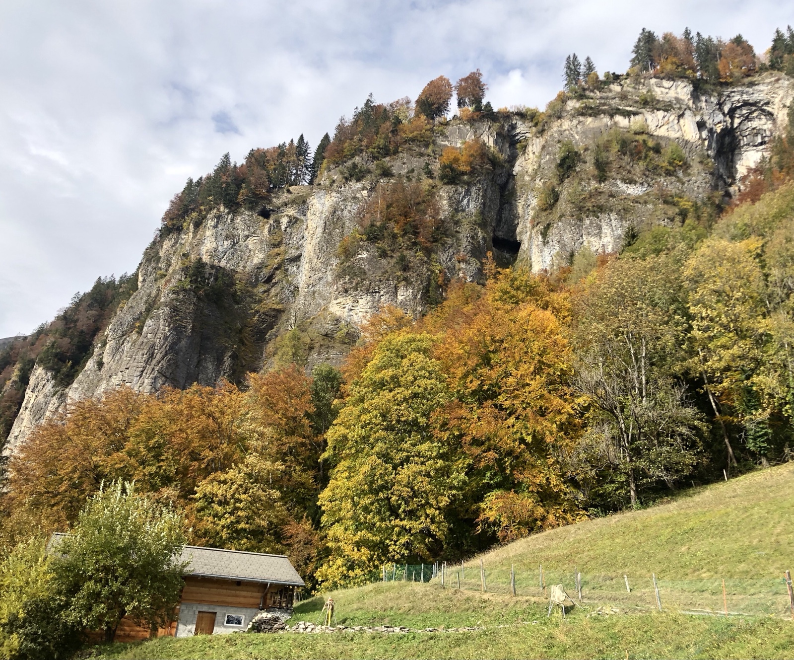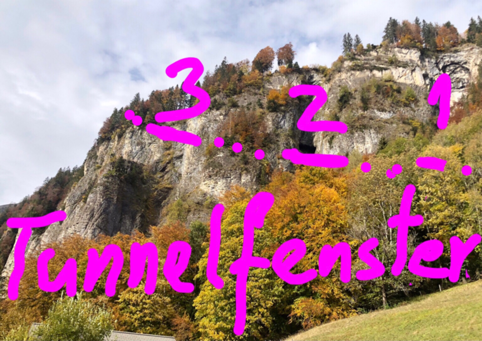 Siehst du in der Planalpfluh die 3 Tunnelfenster? Die Planalpfluhtunnel I – IV haben eine totale Länge von 290 Metern.