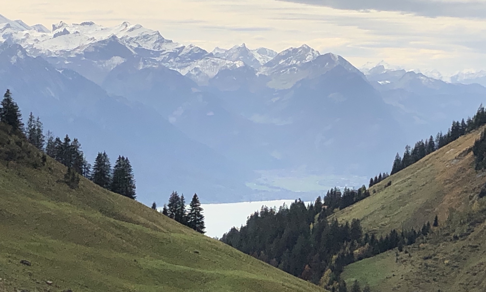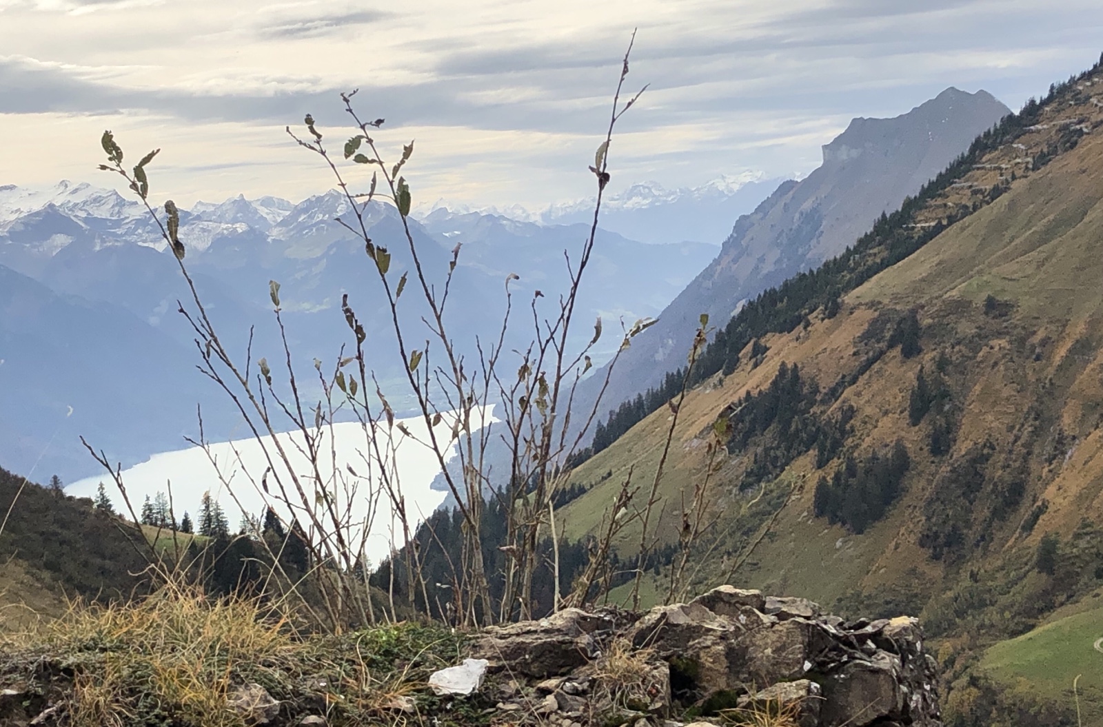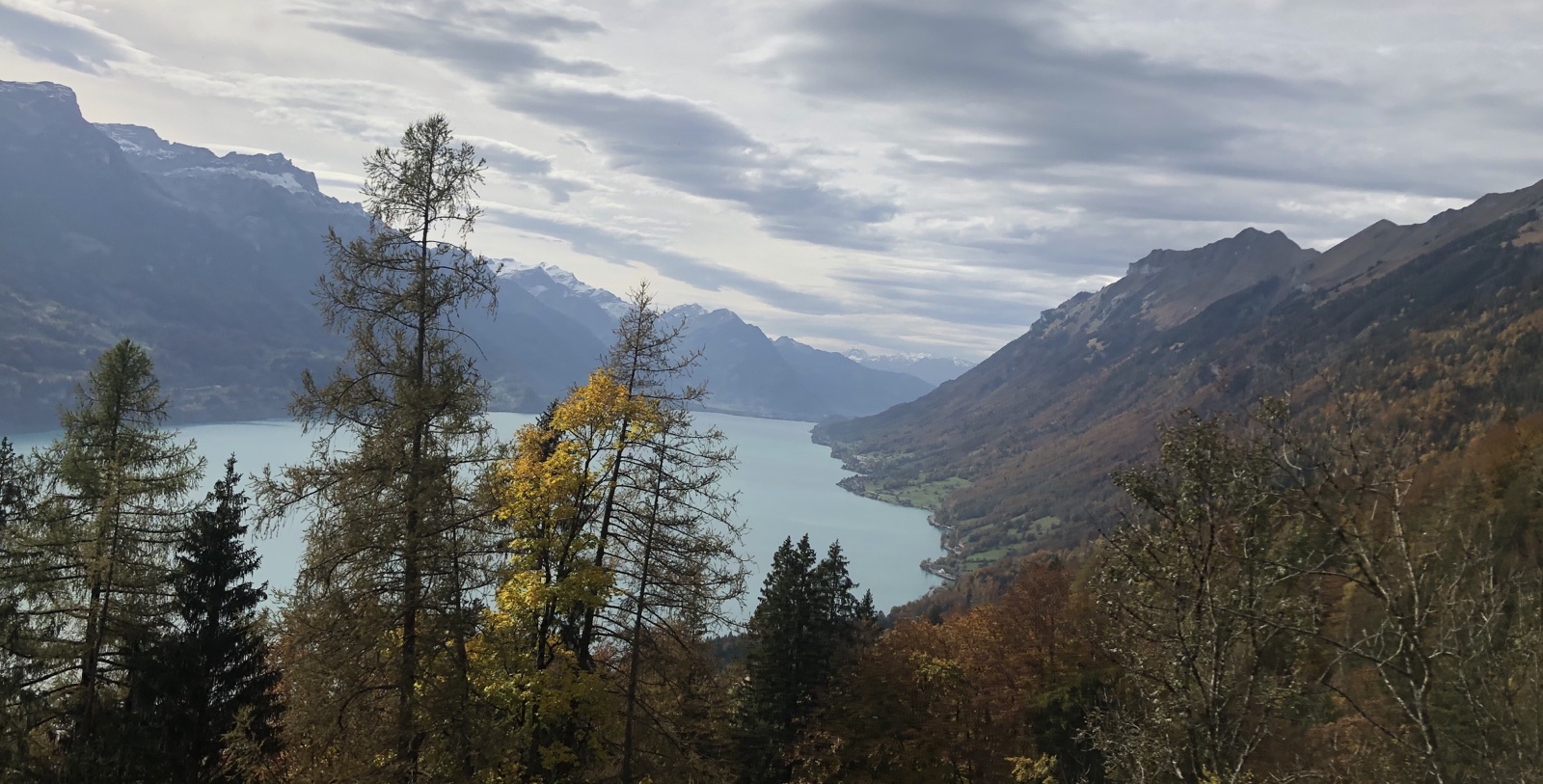 Kurz darauf im Wangwald, einem Burgerwald gibt es einen kurzen Ausblick auf Brienz.