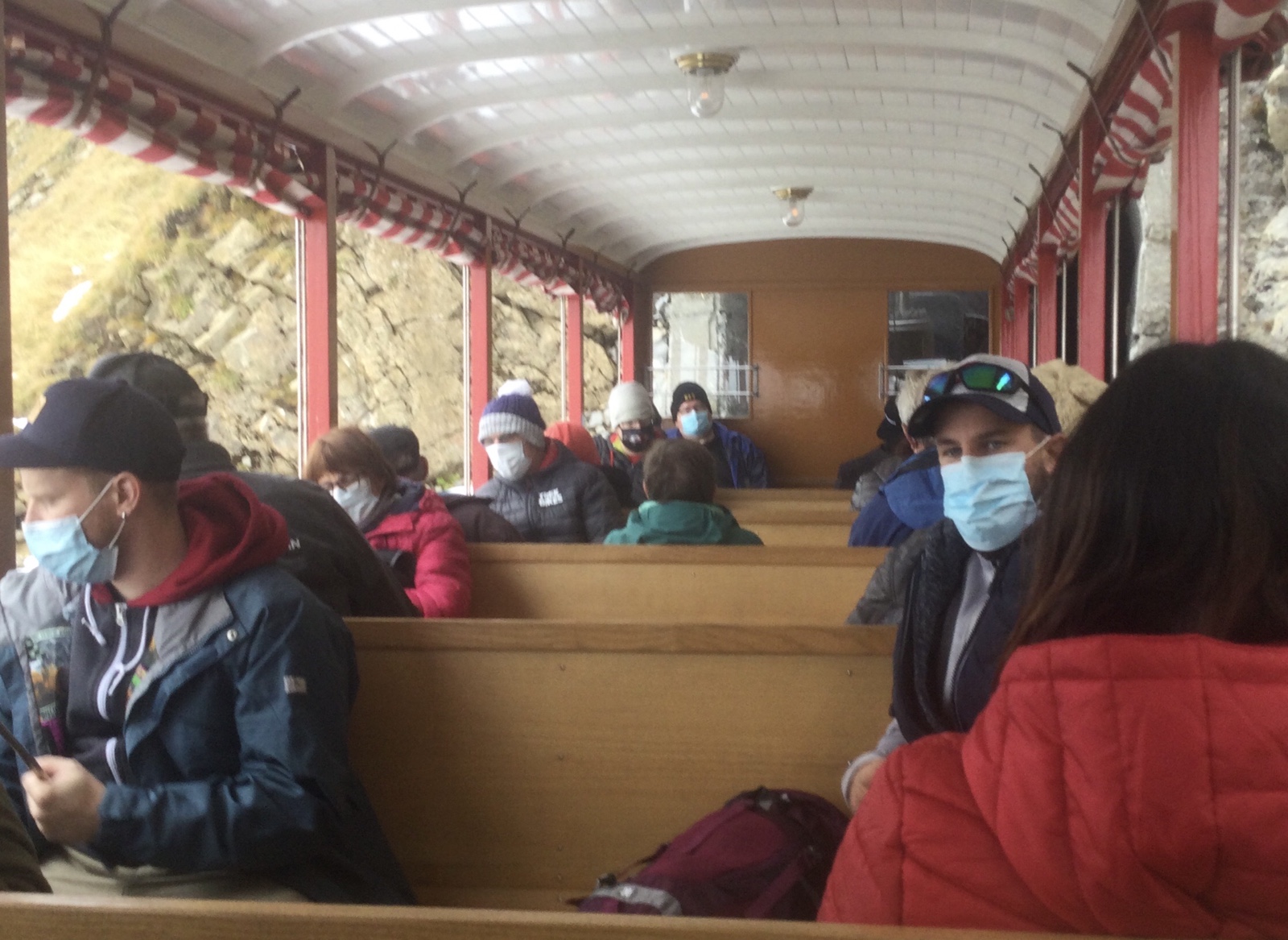 Nach knapp 15 Fahrminuten erreichen wir die ersten Kreuzungsstation “Gäldried“. Ich sitze auf der falschen Seite in diesem (trotz Corona) übervollen Zug.