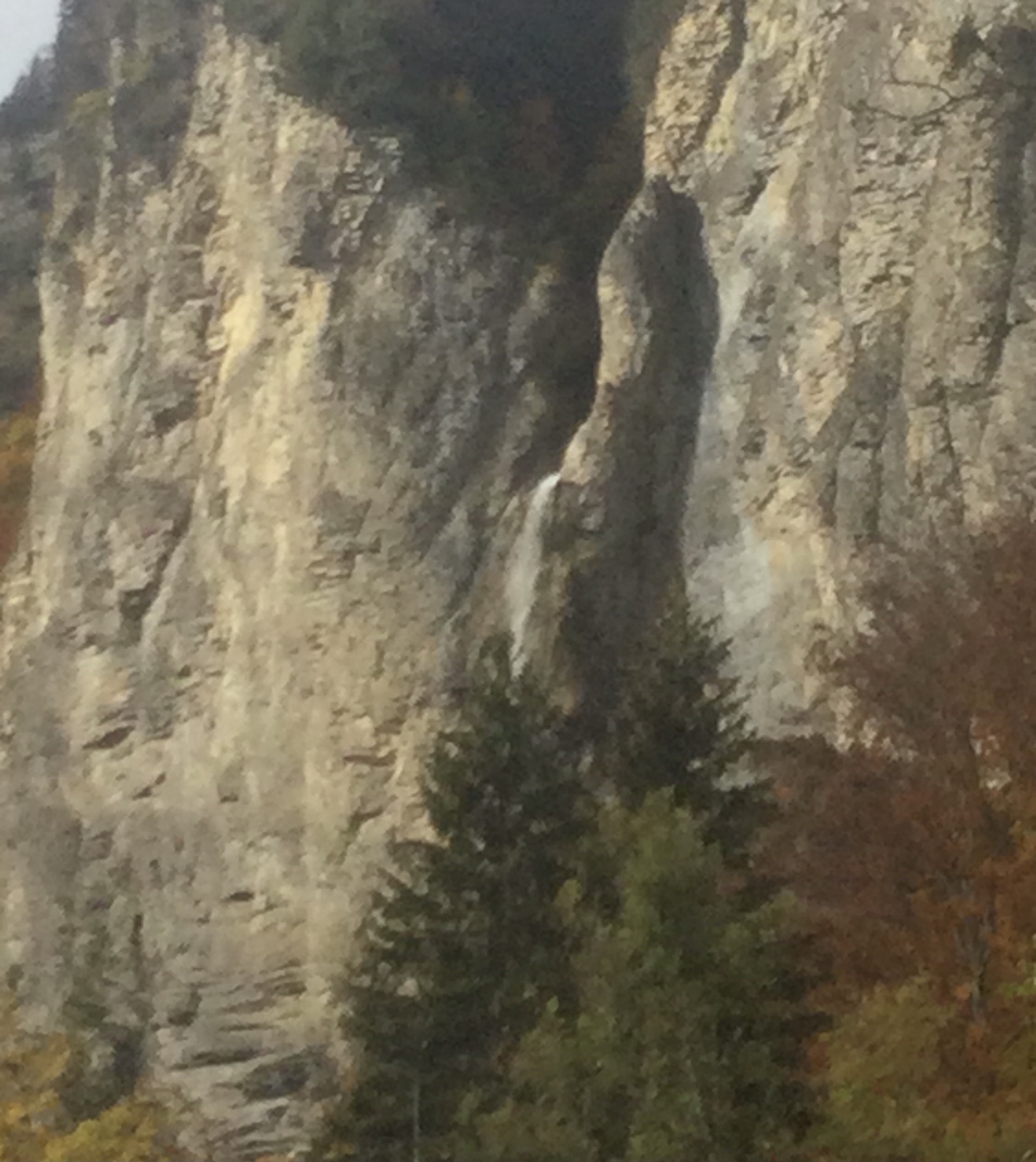 Nachstehend ist der Ausblick von meinem Heimetli auf die Planalpfluh und ihre Tunnel. Wenn du den Zug den Berg raufschnauben hörst, ist er schon wieder im Tunnel verschwunden. Es braucht also gewisse Übung den Zug ab zulichten.