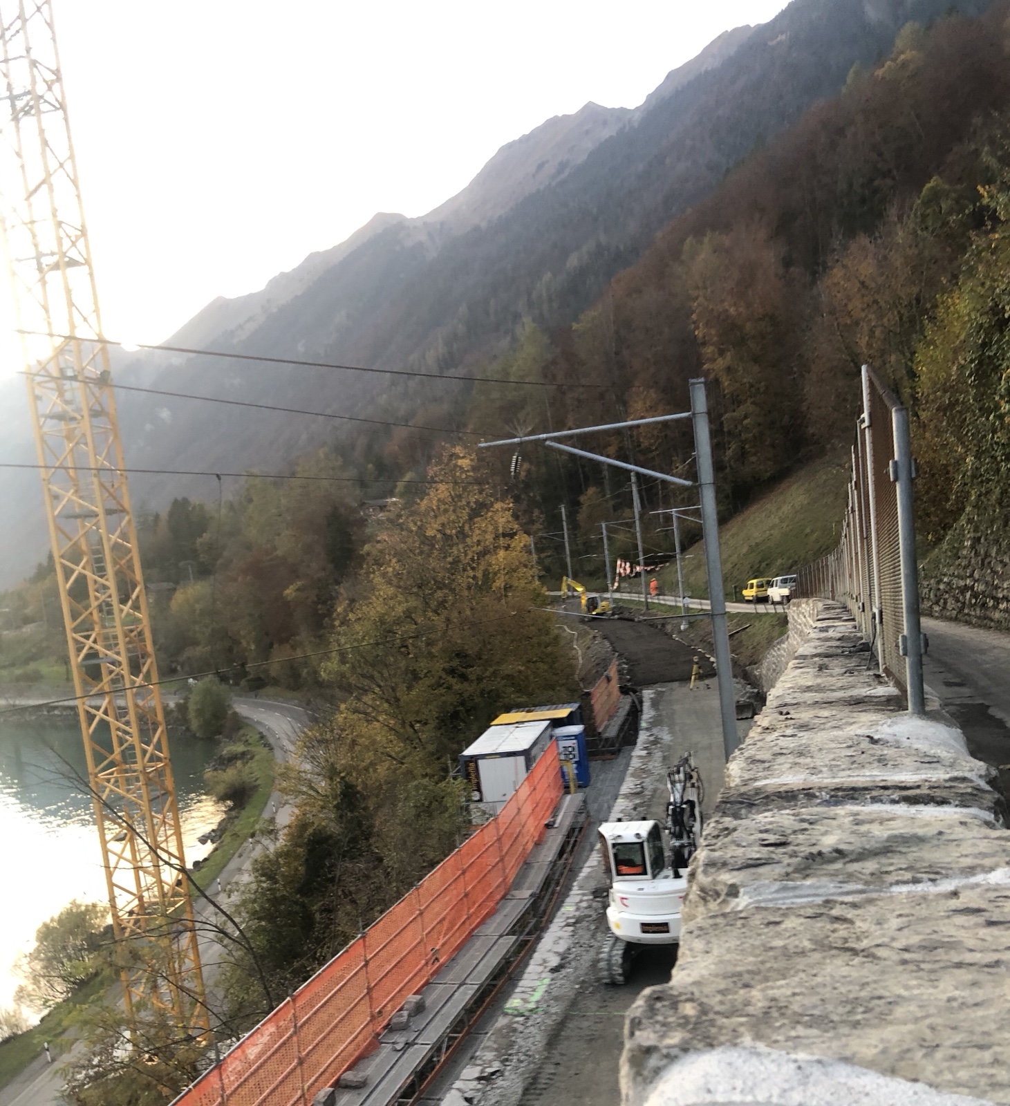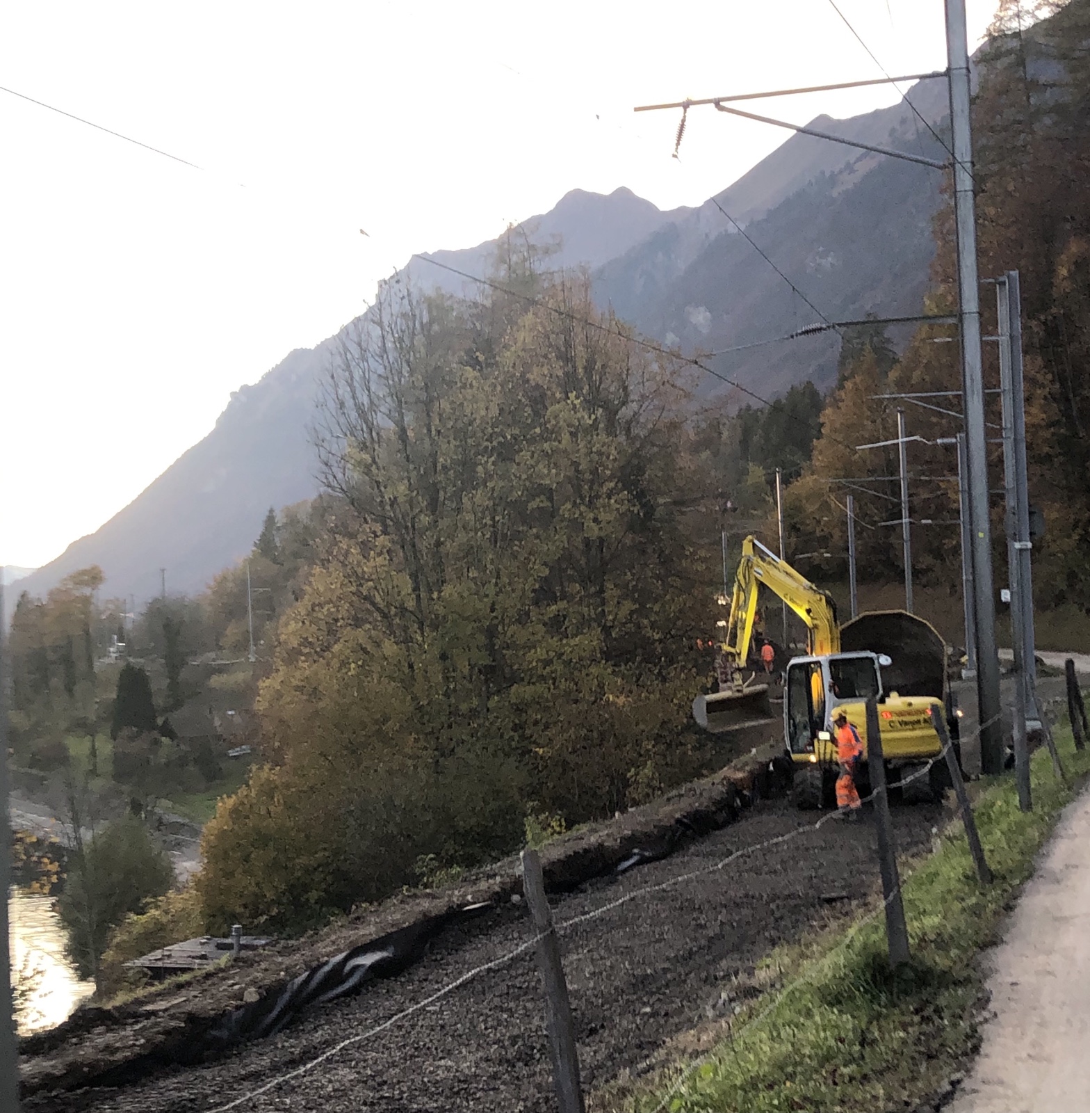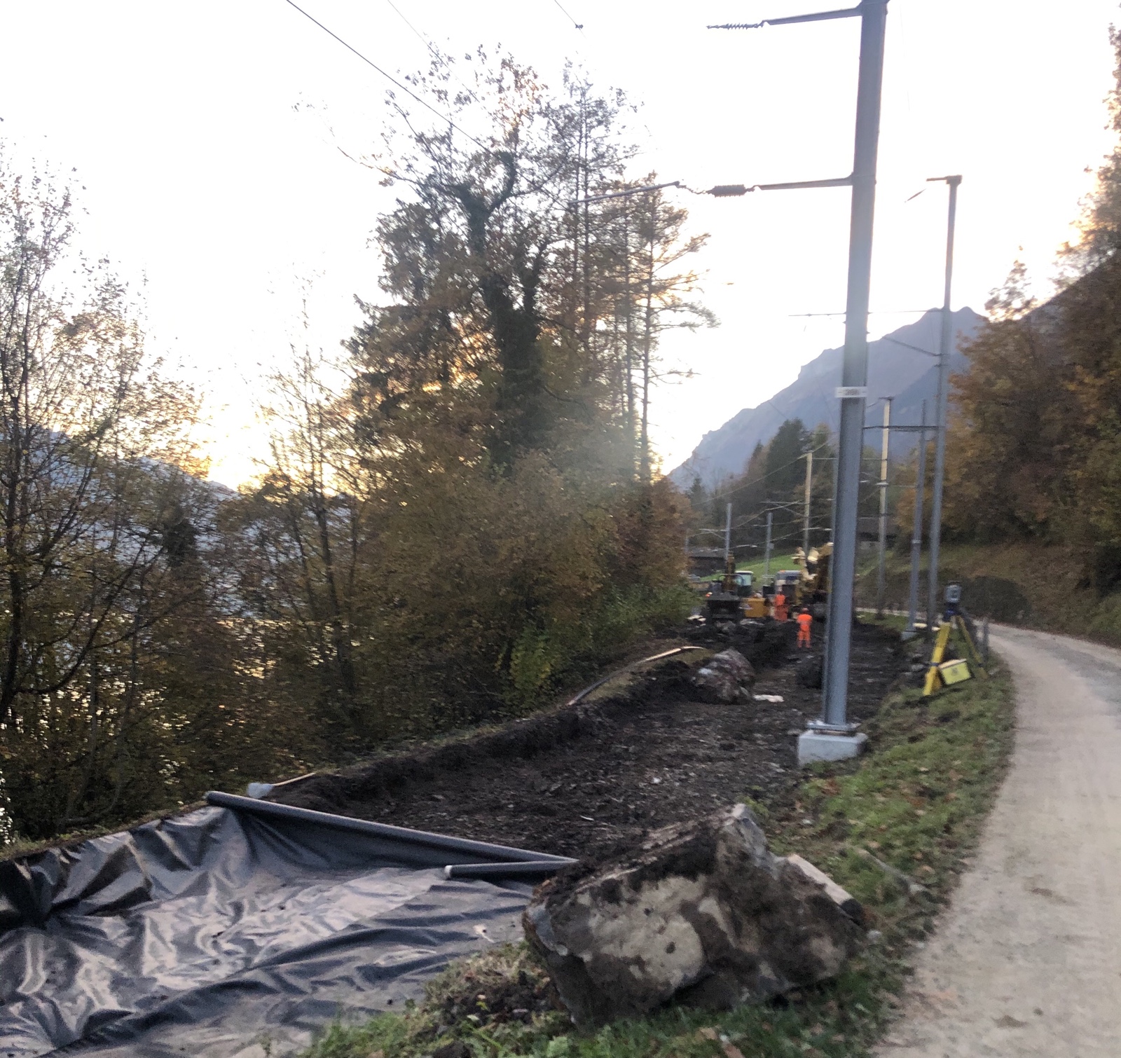 Dann rolle ich weiter zur Oberdorfstrasse und zu den Seematten. Mich interessiert wie weit die Bauarbeiten an der seit 1 Woche gesperrten Brienzerseeuferbahn vorangeschritten sind.