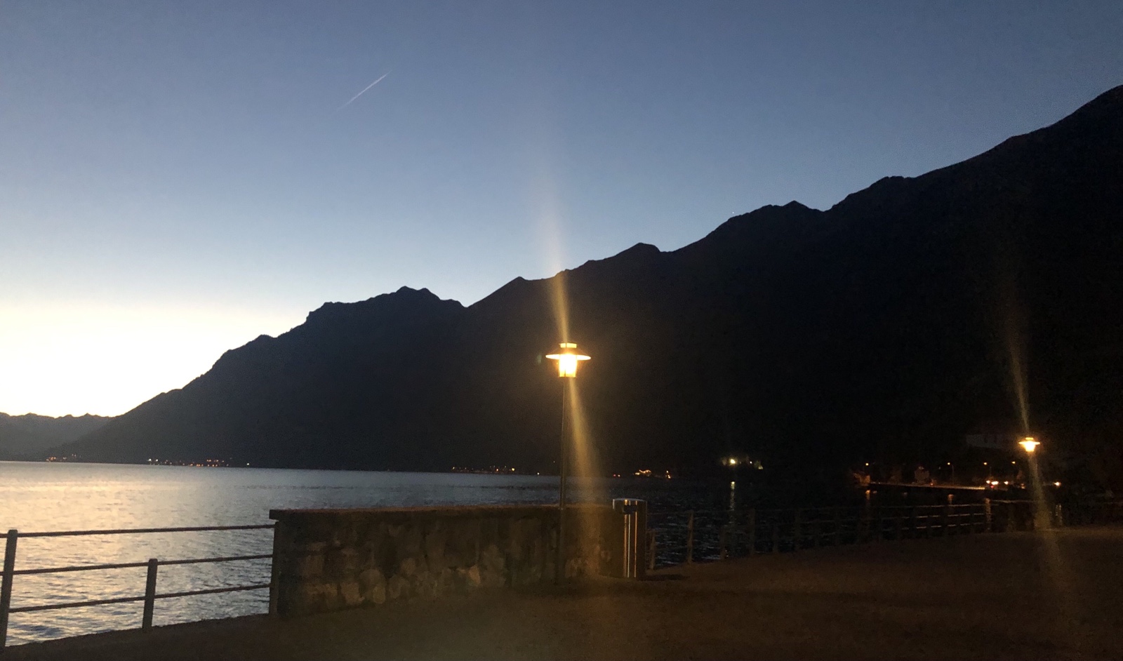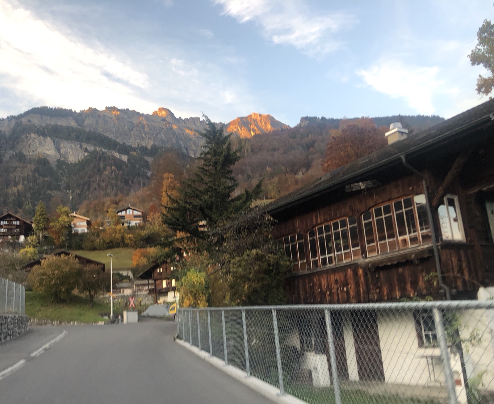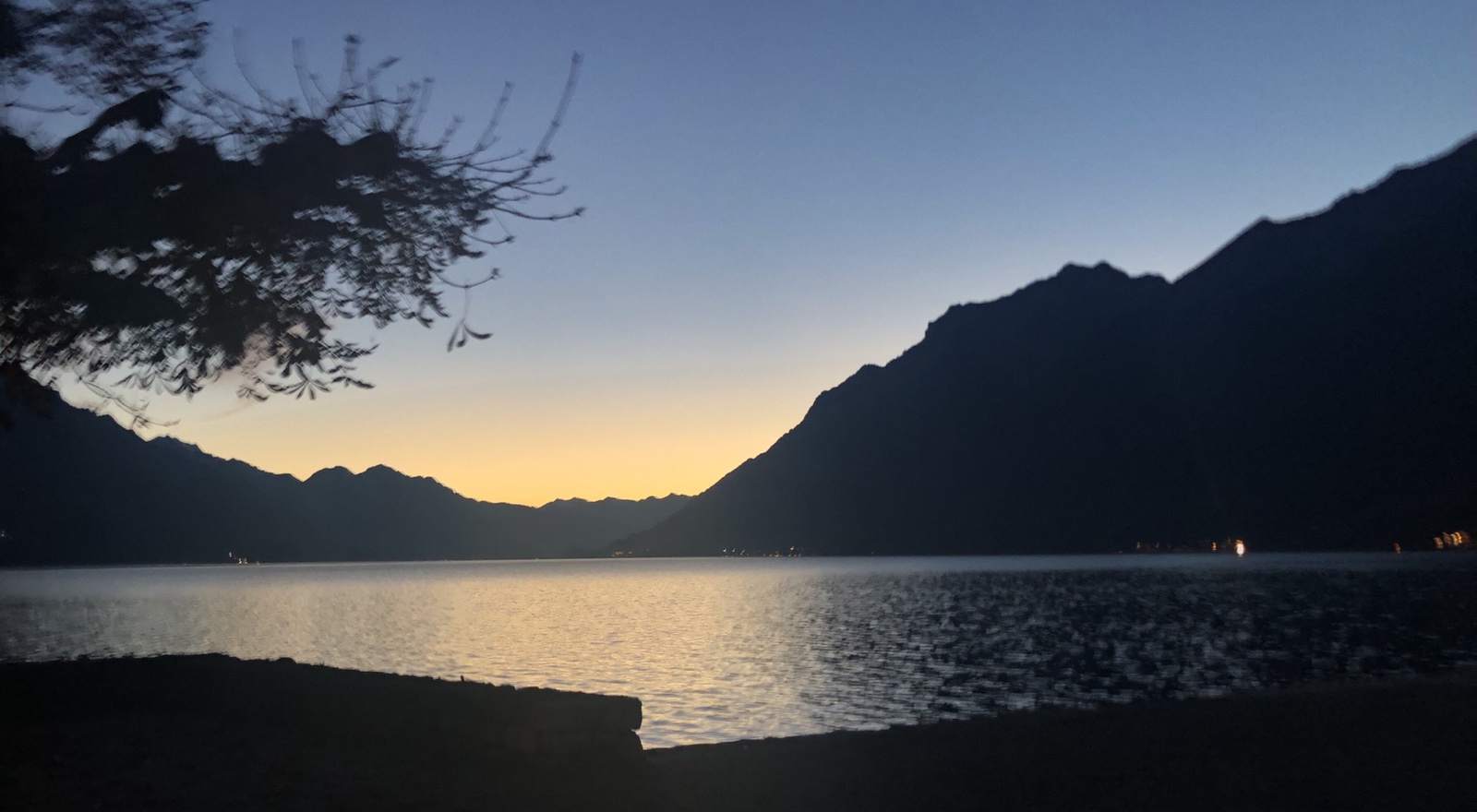 Die Schneeberge im Osten sind schon abweisend kalt. In Dorf brennen schon die ersten Lichter.