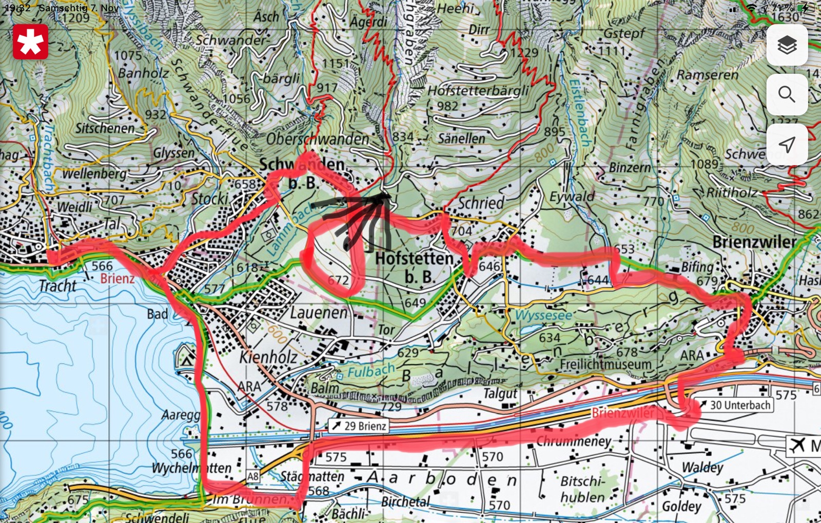 Über Hofstetten – Schried und den Houwetliwald erreiche ich den Oberschwandner Aussichtspunkt und Brätliplatz.