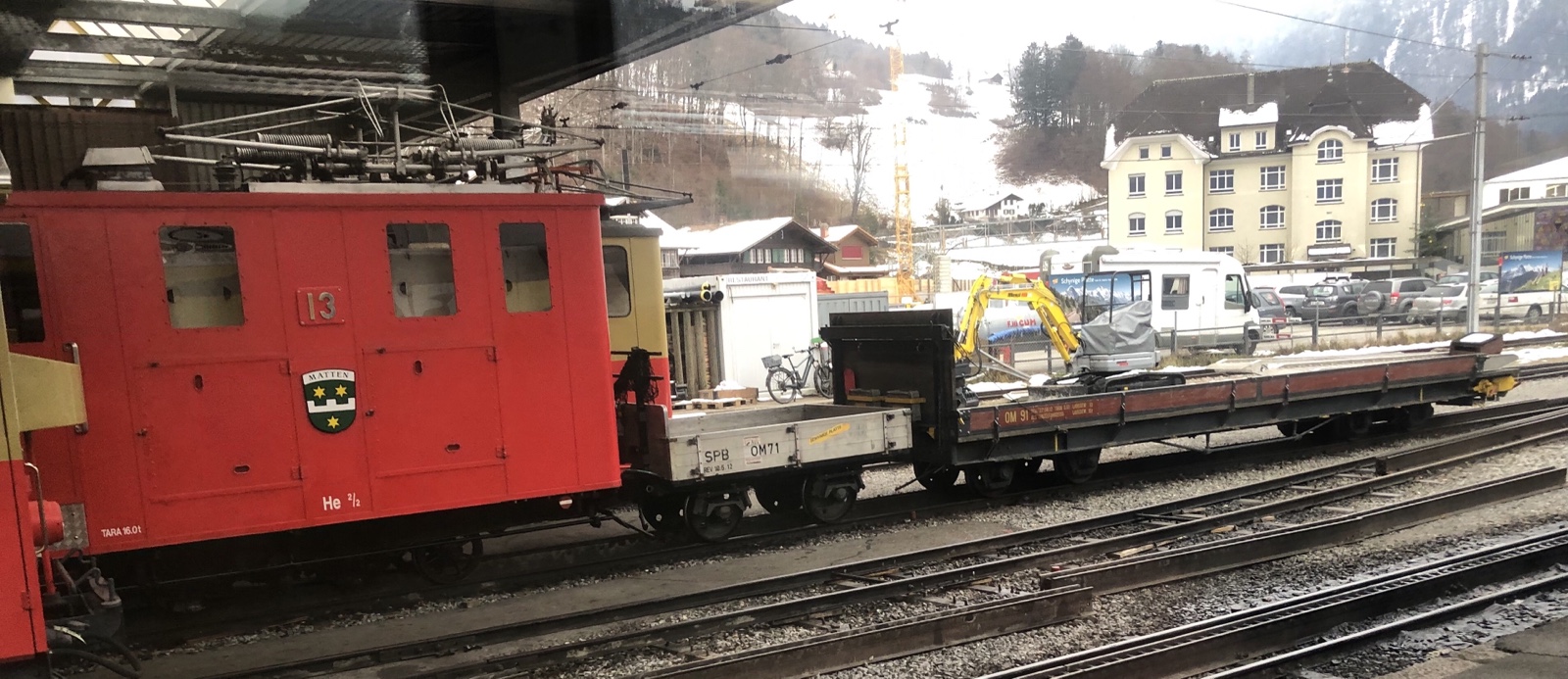 Beim Passieren von Wilderswil sehe ich auf dem Gleis nebenan 2 Güterwagen der Schynige Platte Bahn SPB, die trotz erheblichem Unterschied in der Bauart, Länge und Achsenzahl eine identische Gattungsbezeichnung haben!?!