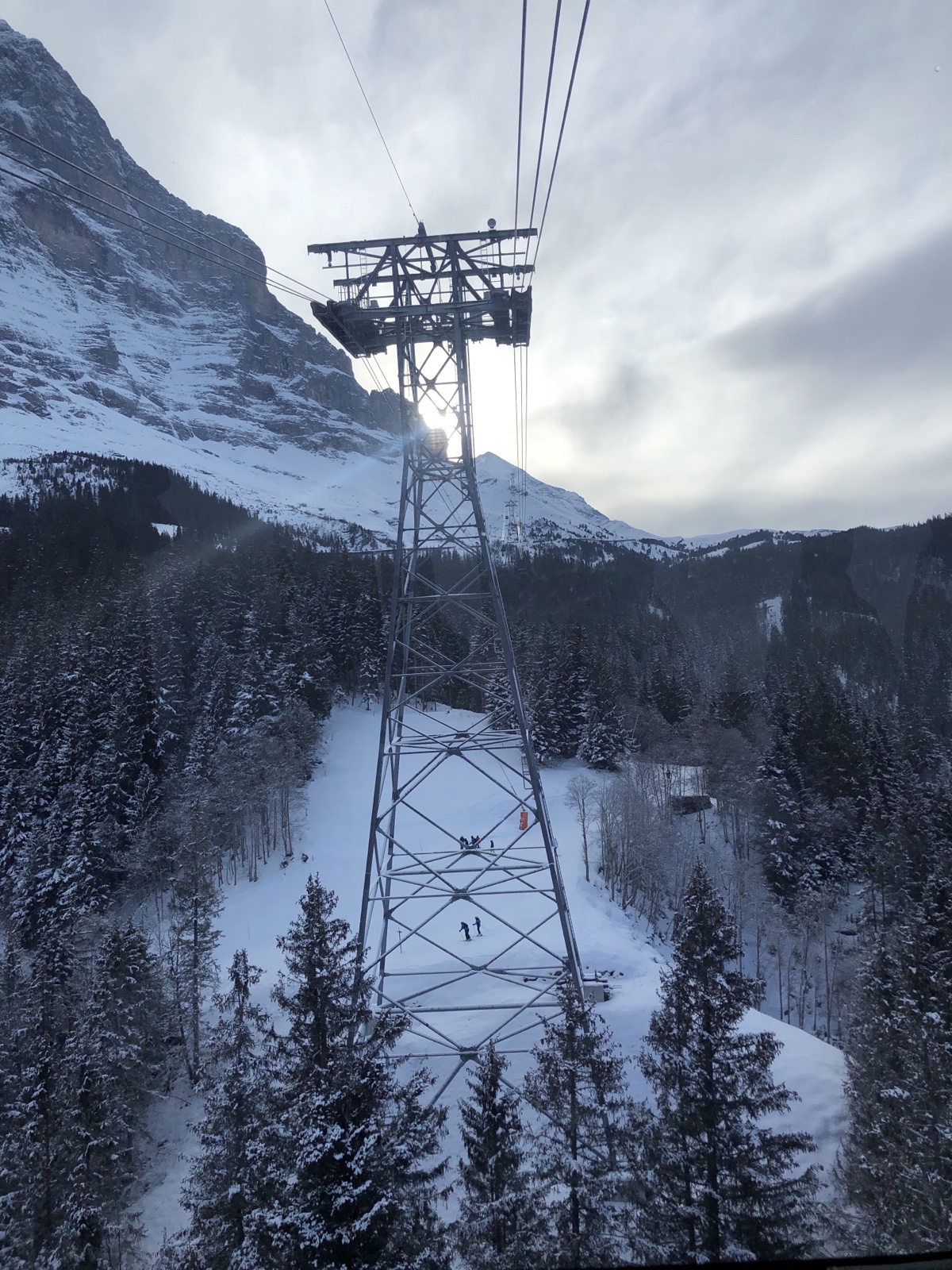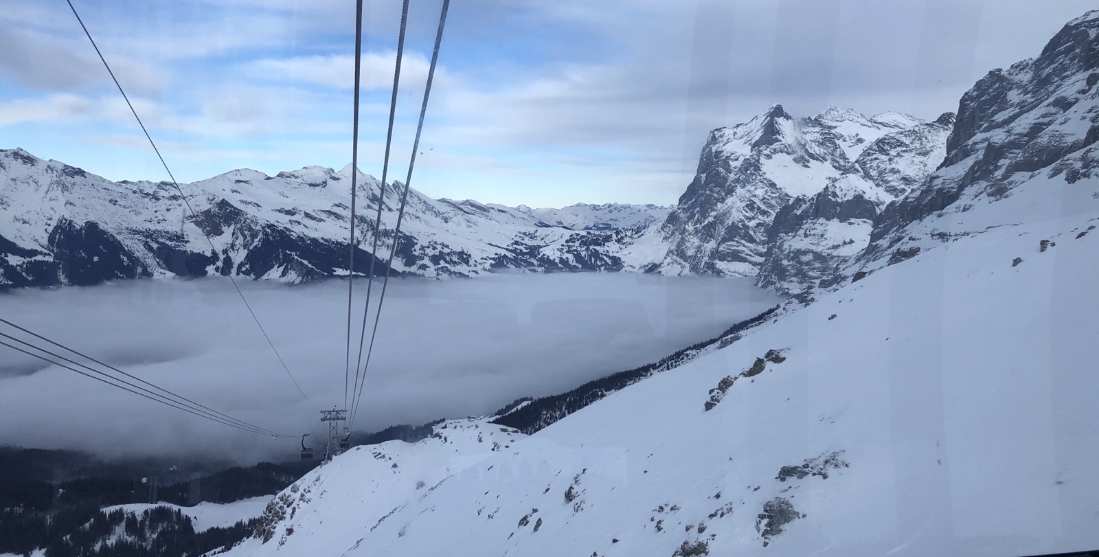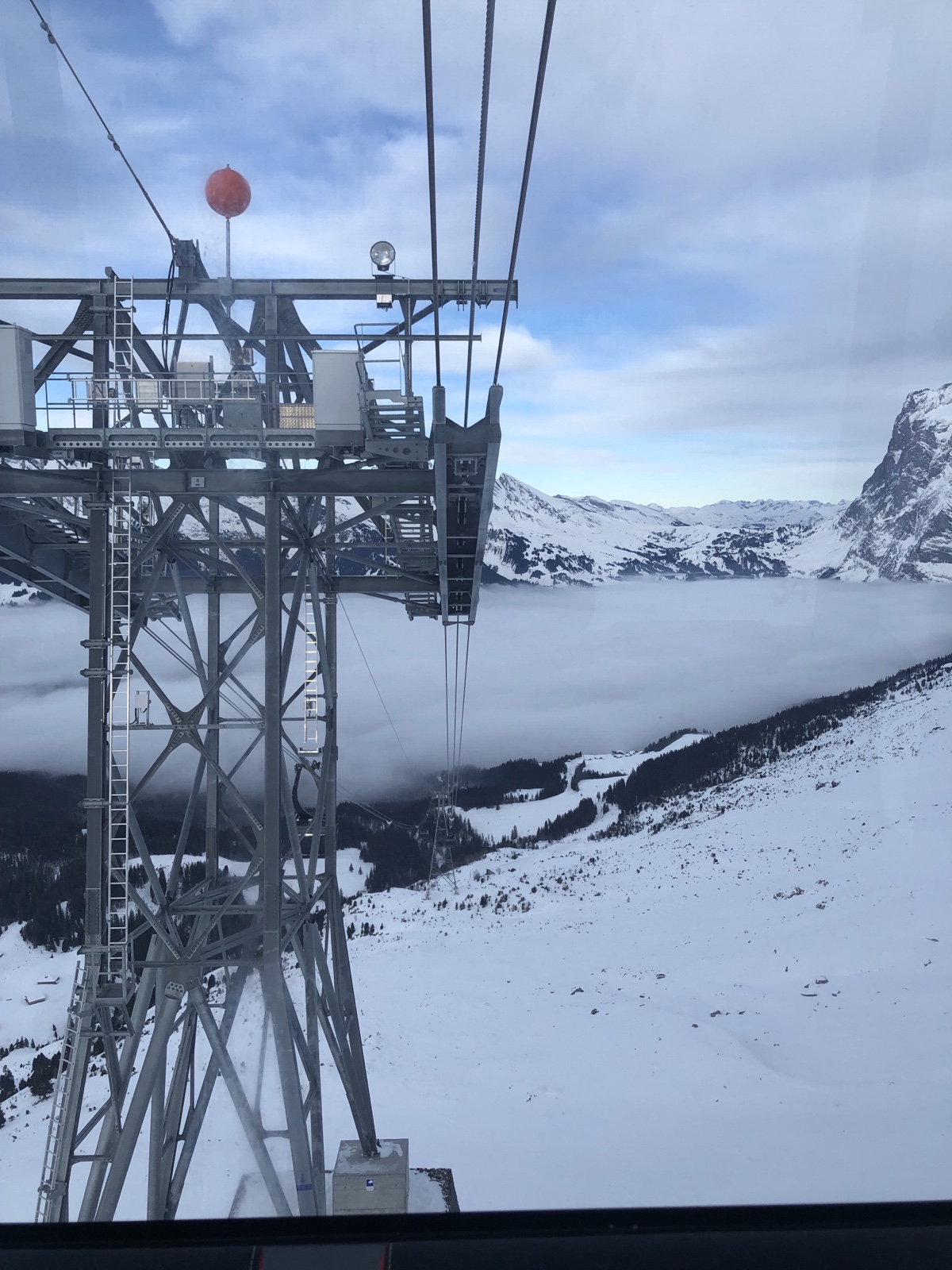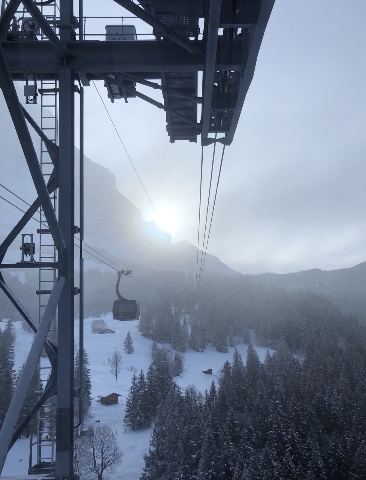 Auch in der 26 Personen Kabine bin ich alleine, kann mich also bewegen, auf alle Seiten rausschauen und die Fahrt in trauter Einsamkeit runter nach Grindelwald geniessen.