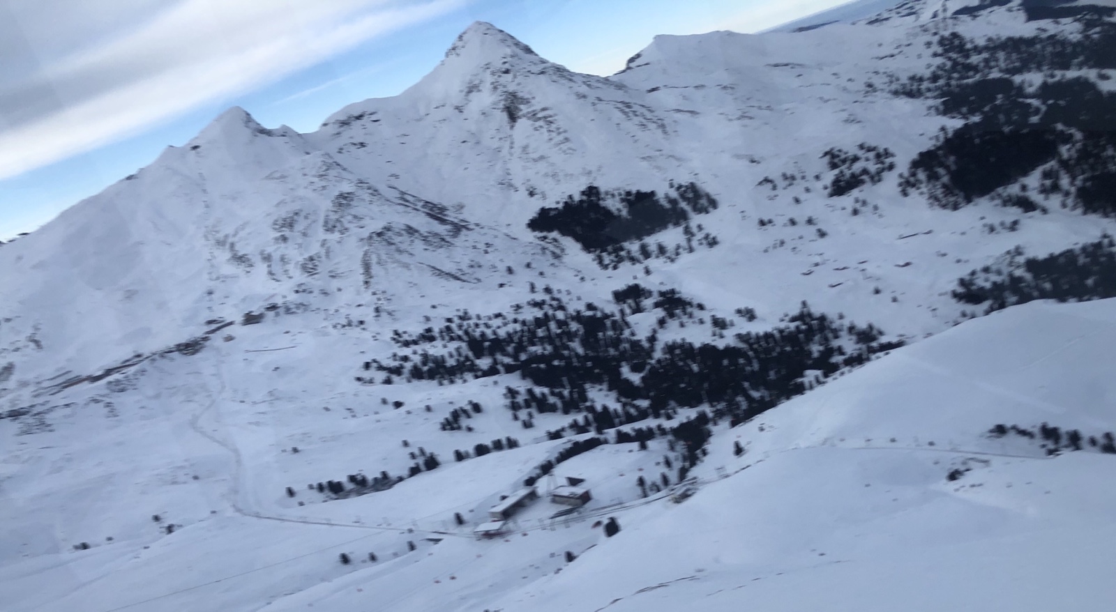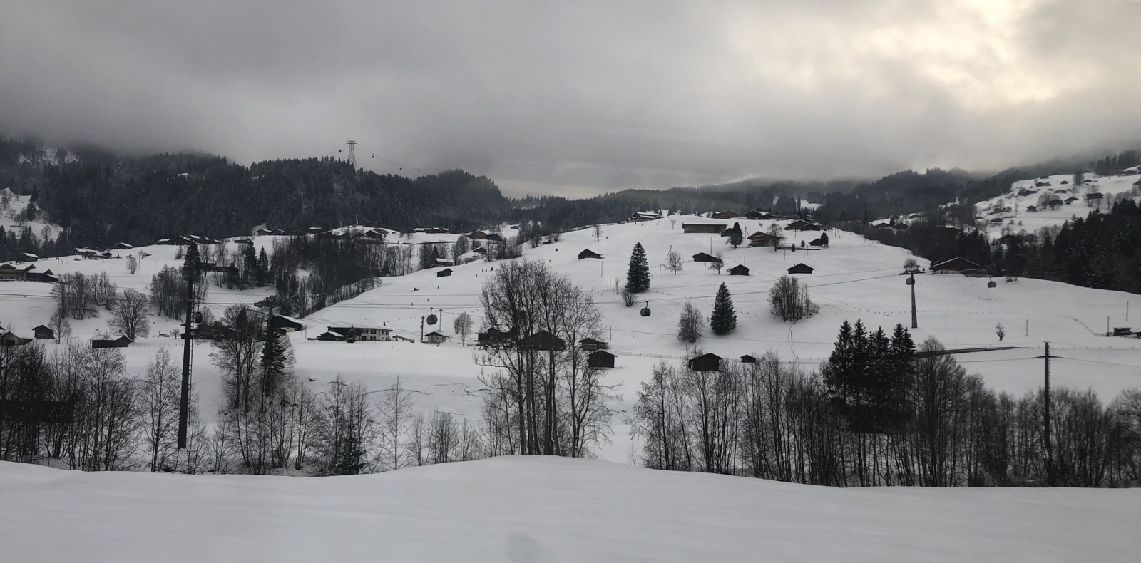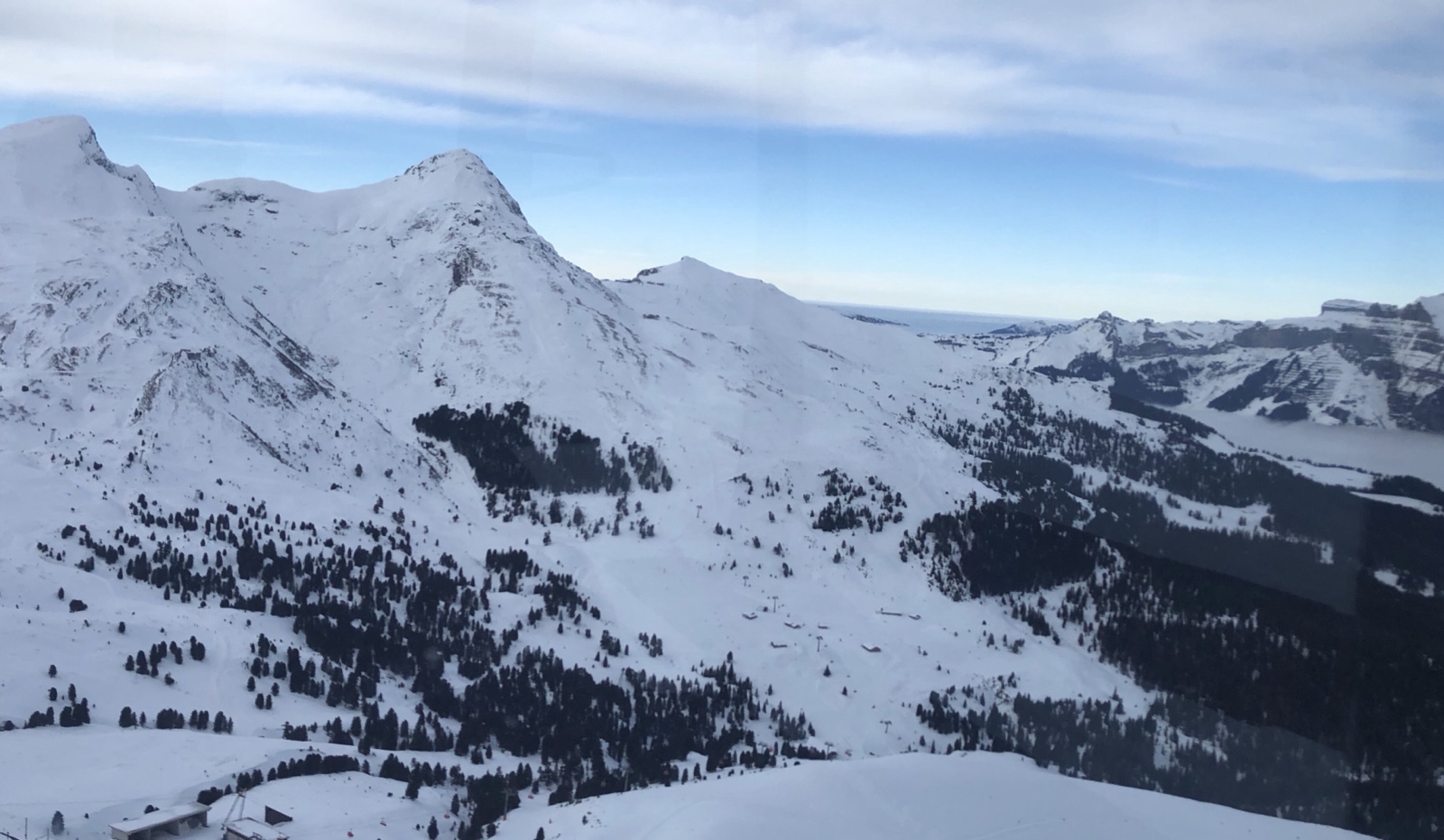 Mit etwas weniger als 30 Stundenkilometern schweben wir fast unmerklich über verschneite Tannenwälder und Alpen.