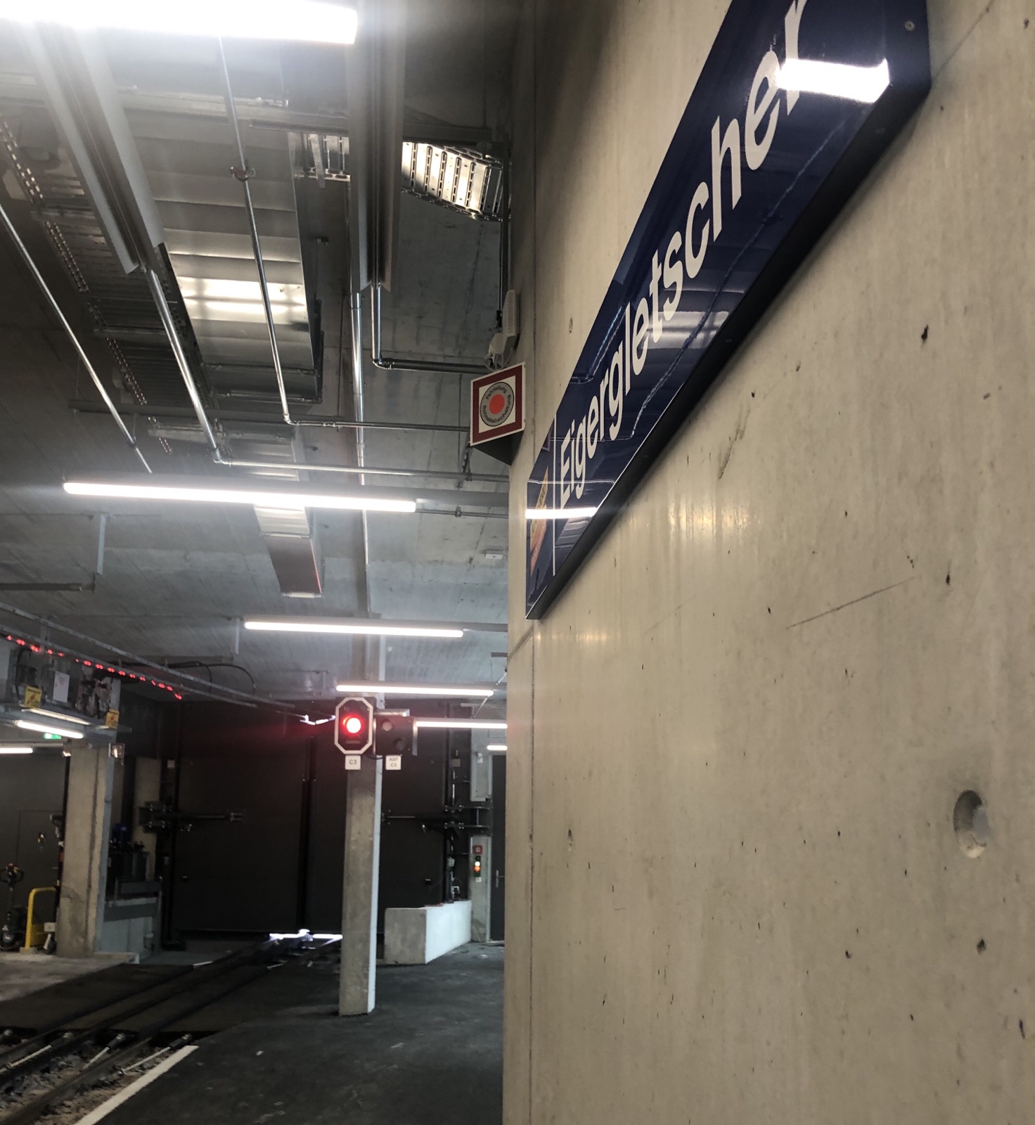 Dieses Gleis ist mit einem Tor ausgestattet, das sich kurz vor der Zugsfahrt öffnet und hinterher sofort wieder schliesst.