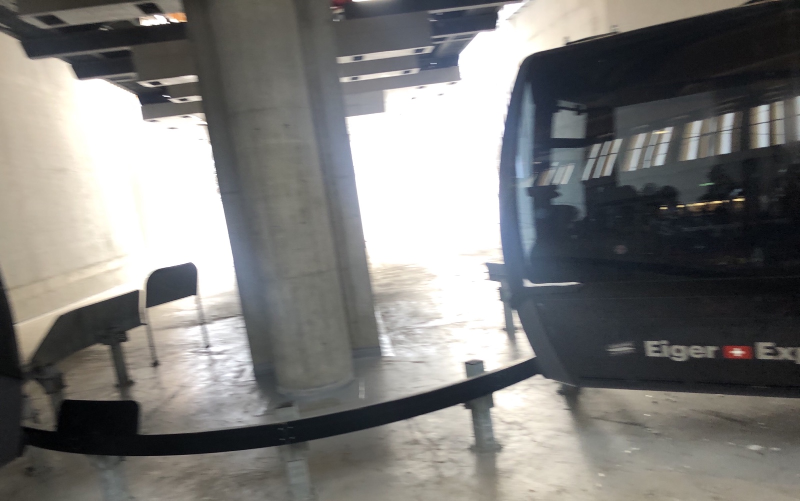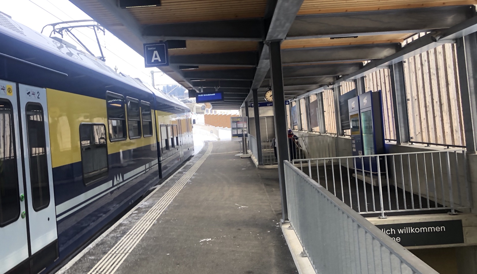 Kurzum, nämlich in der neuen Haltestelle Grindelwald Terminal muss ich aus- beziehungsweise umsteigen. Der letzte Zahnstangenabschnitt unterhalb von Grindelwald beginnt seit dem Bau des Eiger Express etwas weiter unten, so dass die Haltestelle komplett drin ist.