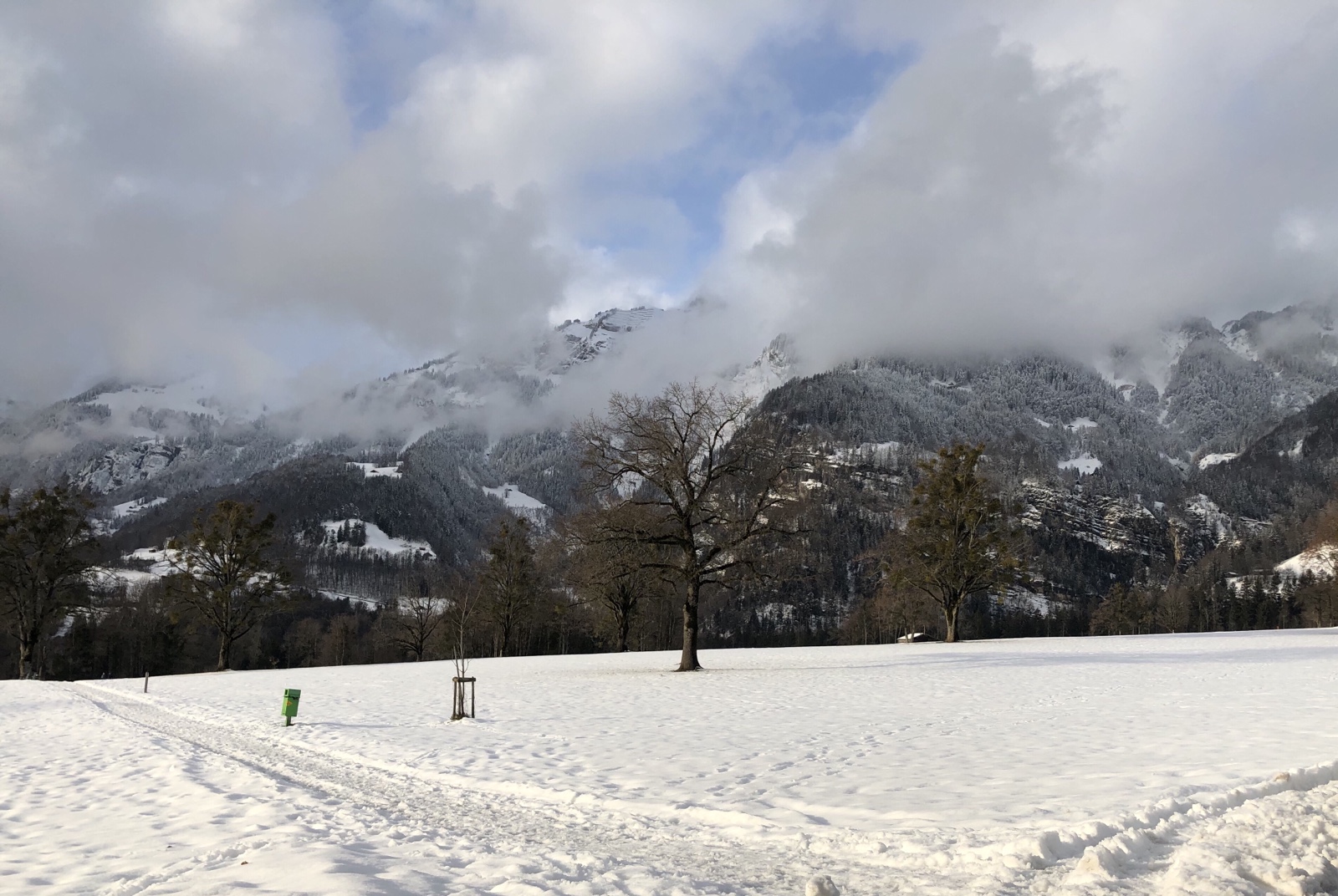 Jetzt wo es Schnee hat stellt sich die Landschaft viel plastischer dar.