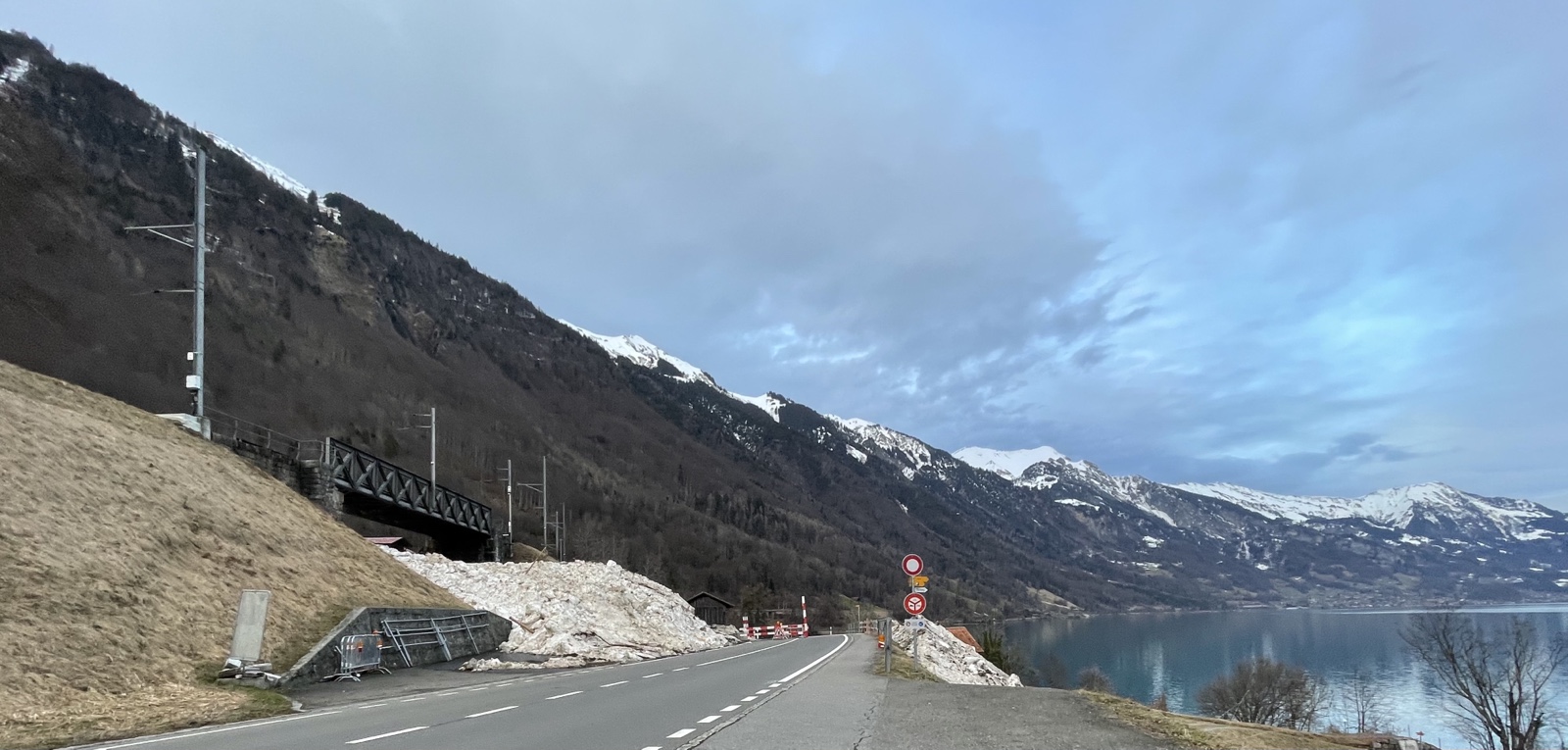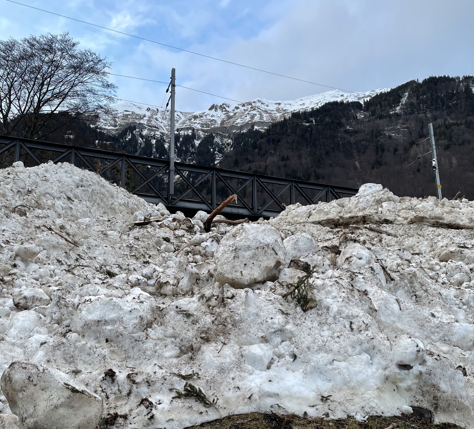 Wie es schon der Titel sagt, will ich heute primär die Kegel der in den vergangenen zwei Wochen vom Brienzergrat bis zu den Dörfern hernieder gegangenen Lawinen beobachten. Beim genauen Hinschauen wird klar, dass noch viel mehr Lawinen runter gegangen, zum Glück aber weit oberhalb der Siedlungen und Verkehrswege zum Stehen gekommen sind.