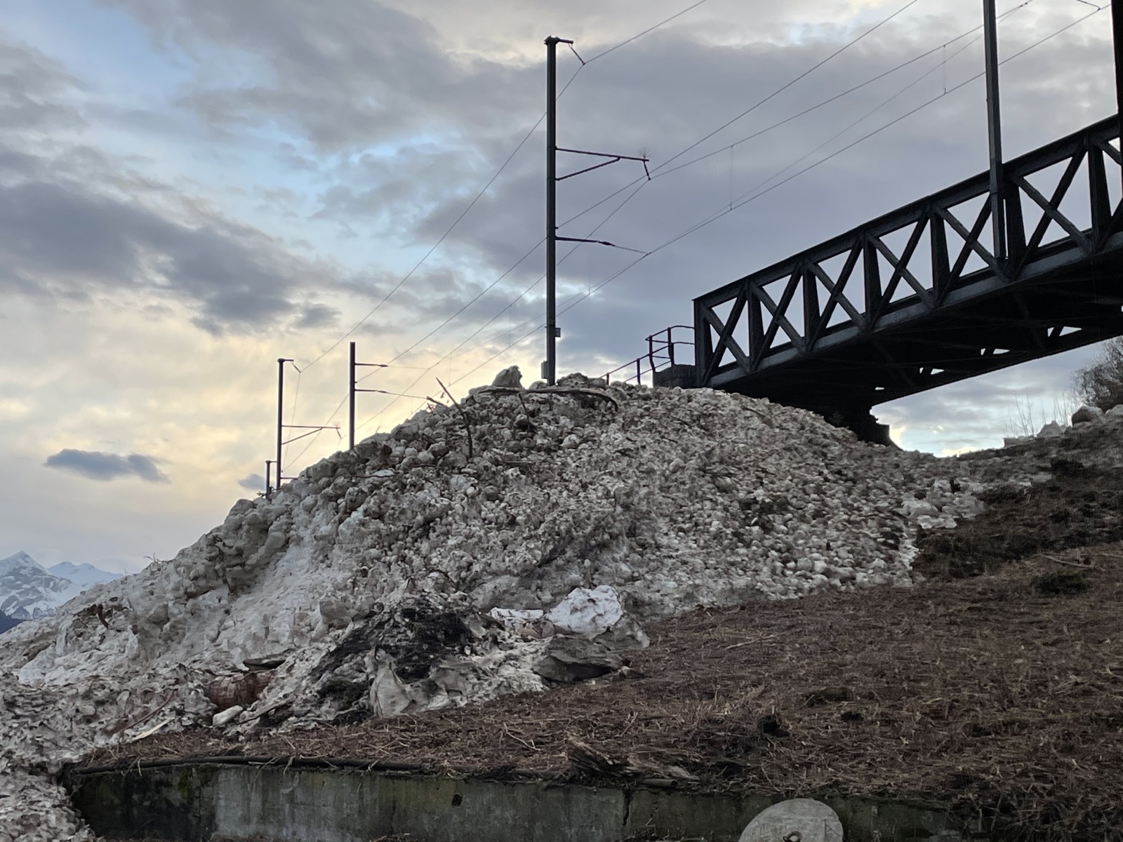 Der Minachrigraben ist jeweils rasch voll. Eine weitere Lawine könnte die Eisenbahnbrücke überfluten.