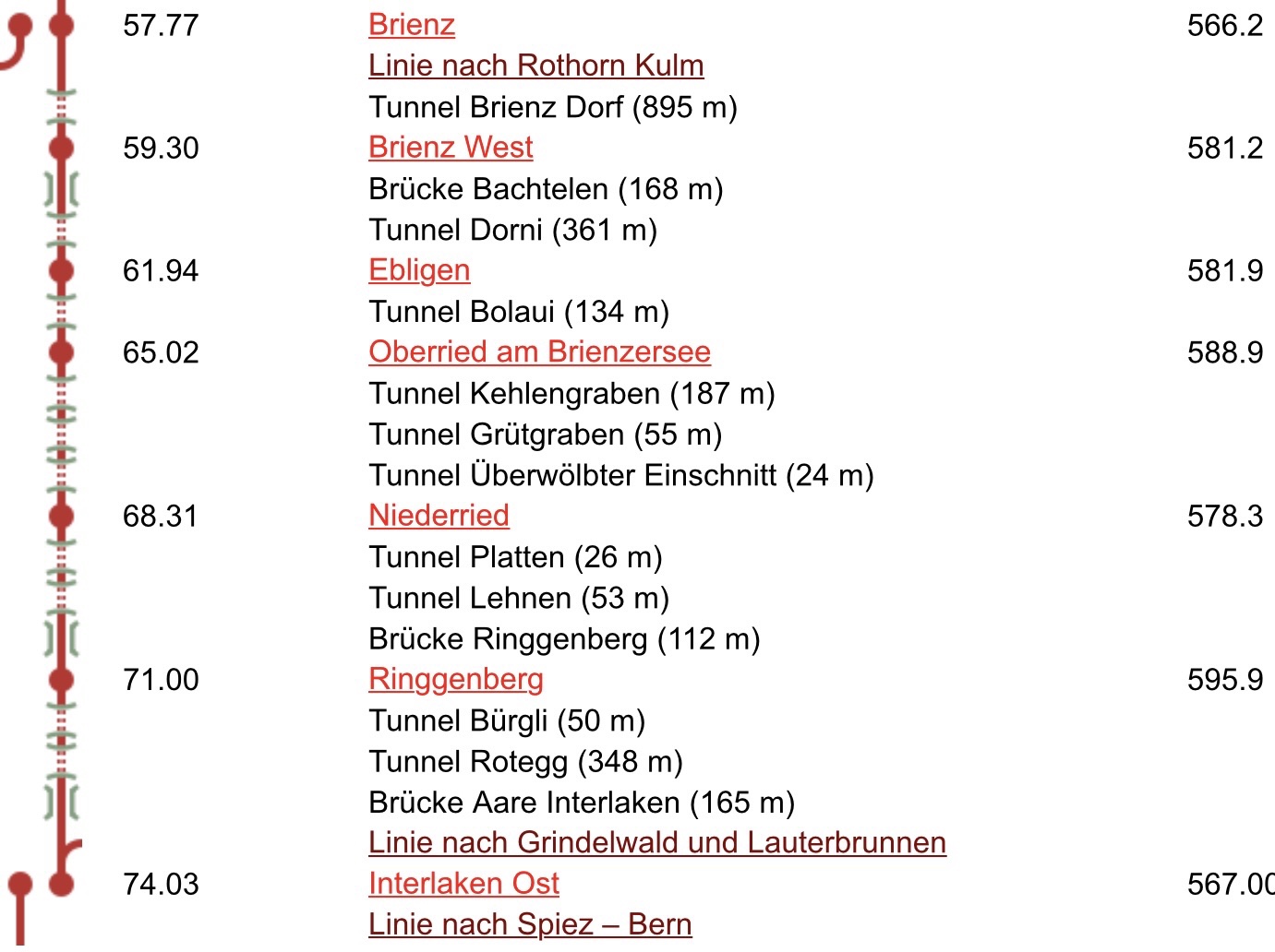 Die Konstrukteure und Erbauer der Brienzersee Uferbahn haben den Bahnhof deshalb bewusst nicht in der Dorfmitte, sondern unter dem Schutzwald des Spätigrabens, zwischen dem Dorf auf dem Lawinkegel des Hirscherenbachs und dem Derfli wo der Kehlengrabentunnel gebaut wurde, angelegt.