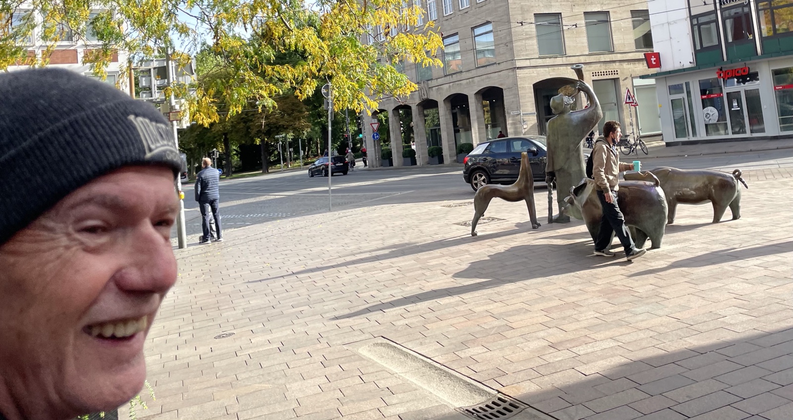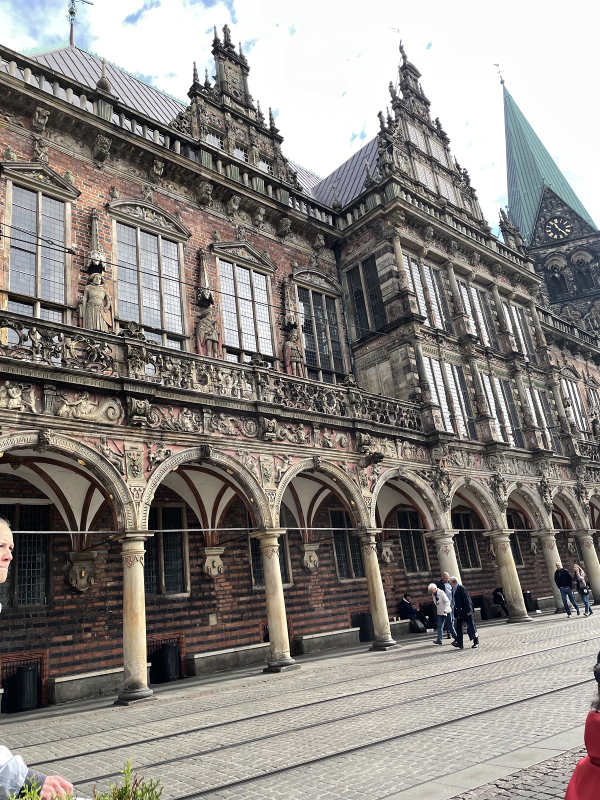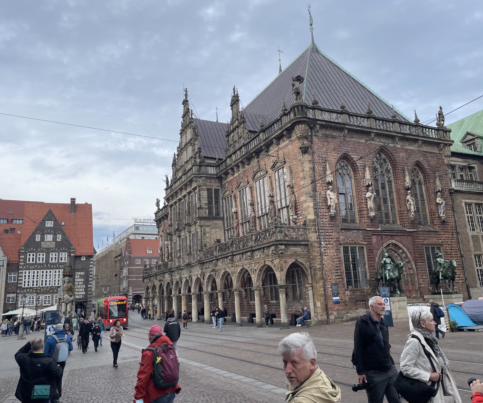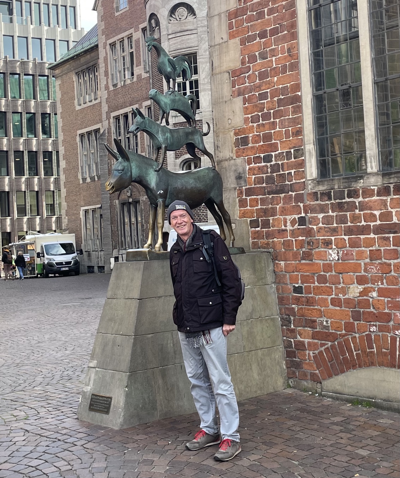 Die Richtung einhaltend laufen wir am Tulpenmarkt vorbei und stehen bald vor den Bremer Stadtmusikanten, an der nordwestlichen Ecke des Rathaus‘.