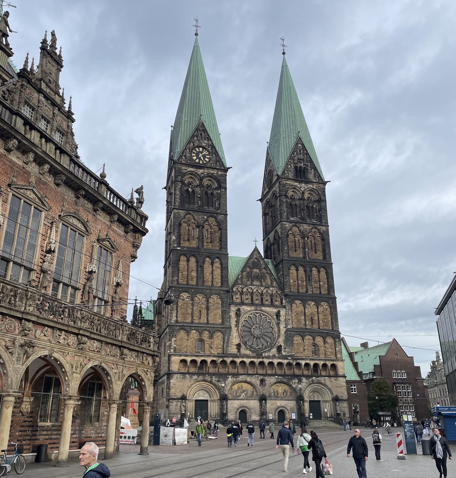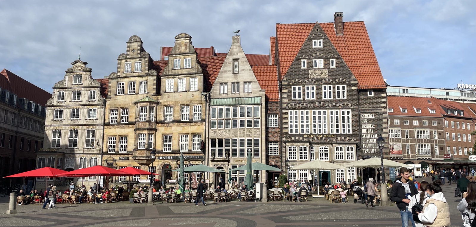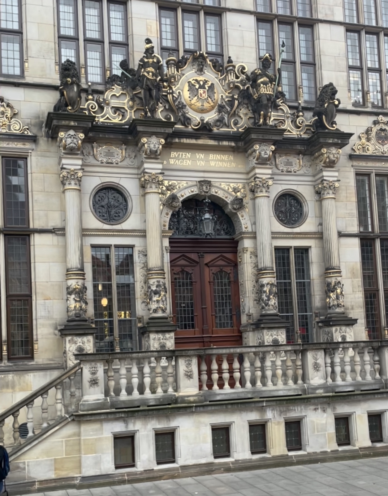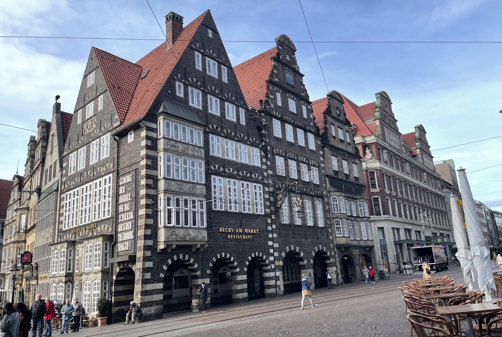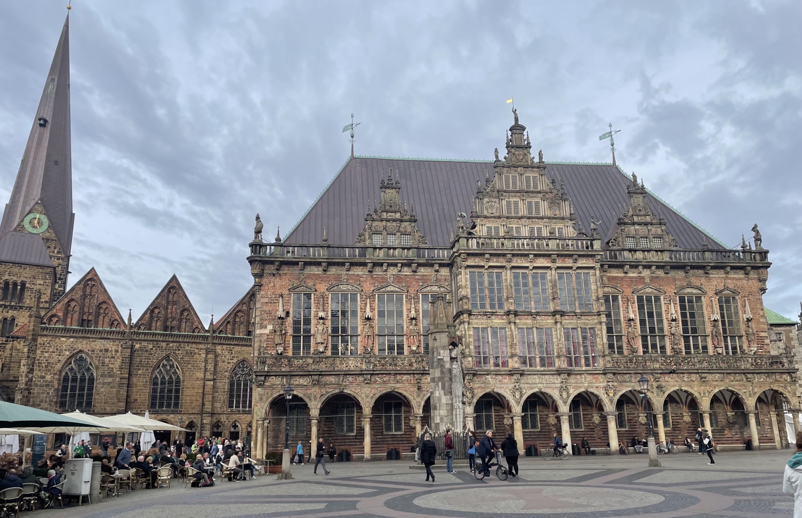 Die Richtung einhaltend laufen wir am Tulpenmarkt vorbei und stehen bald vor den Bremer Stadtmusikanten, an der nordwestlichen Ecke des Rathaus‘.