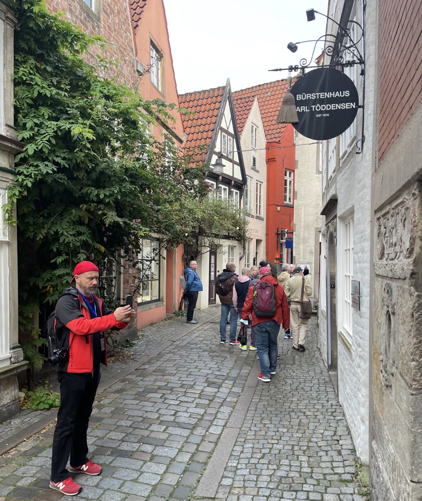Der zweite Teil der Stadtführung führt durch die Schnoor (Schnur). Die kleinen und kleinsten Gebäude stehen hier wie an einer Schur hängend alle ganz eng zusammen.