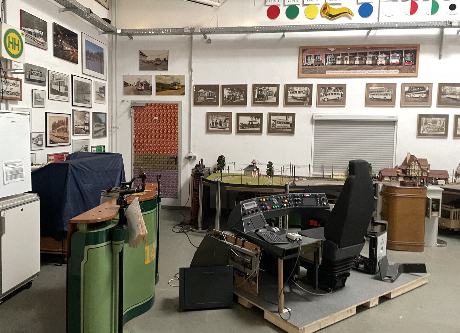 In einem grossen Raum befinden sich diverse Exponate. Hier ist die Mitarbeit des Museumsbesuchers erwünscht. Am Fahrerpult sitzend kann eine Modellstrassenbahn in Fahrt gesetzt werden und Signale können ausprobiert werden.