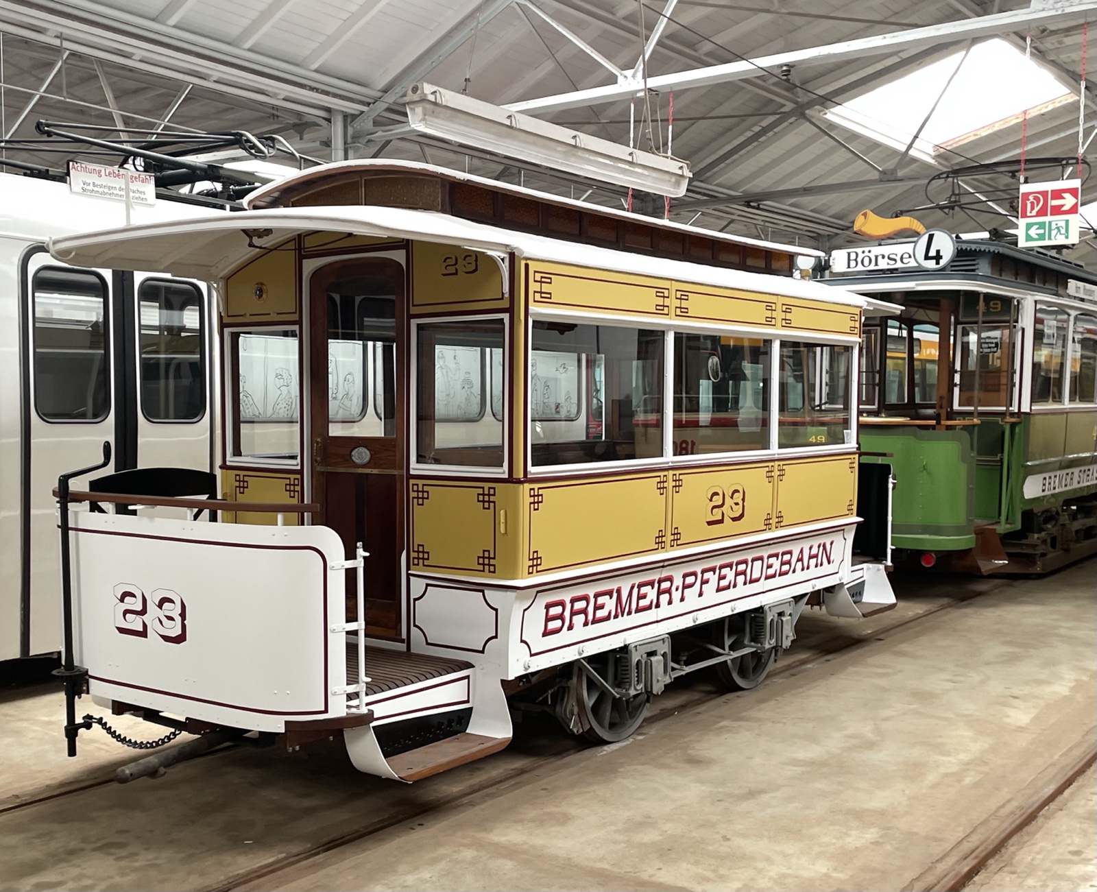 Nach 100 Minuten Stadtrundfahrt fahren wir in den Betriebshof Sebaldsbrück der Strassenbahn Bremen ein, wo sich auch das Strassenbahnmuseum befindet.