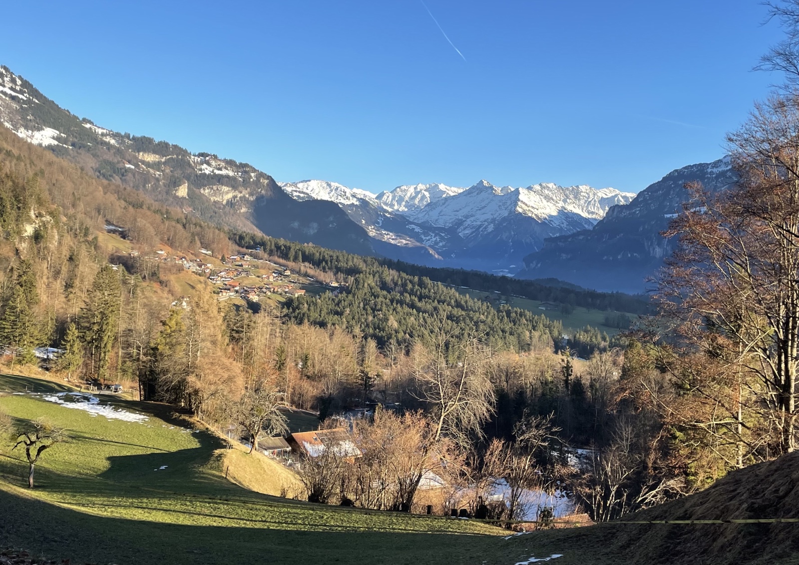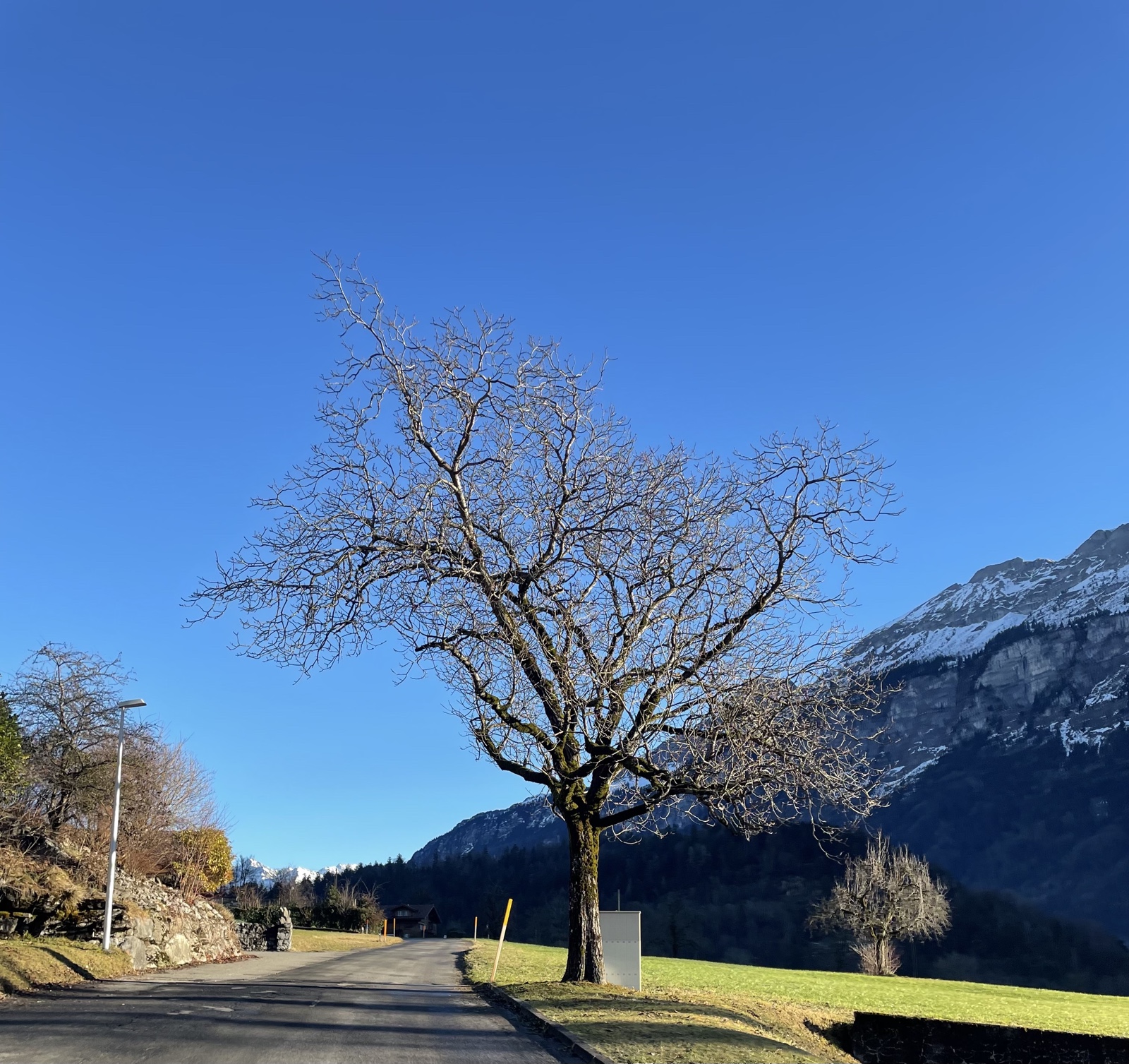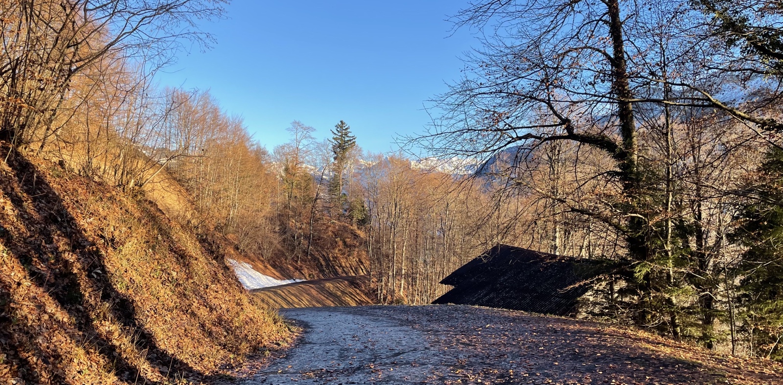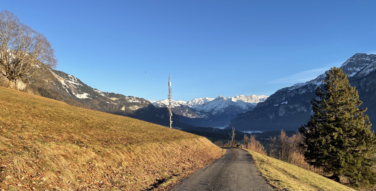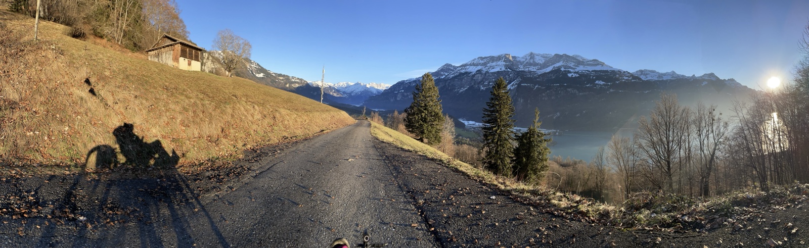 Nein so darf es nicht weitergehen. Am Schatten ist es klirrend kalt. Also wende ich in Hofstetten auf die Schwanderstrasse. Auf der Lauenen erreicht mich endlich wieder die Sonne.