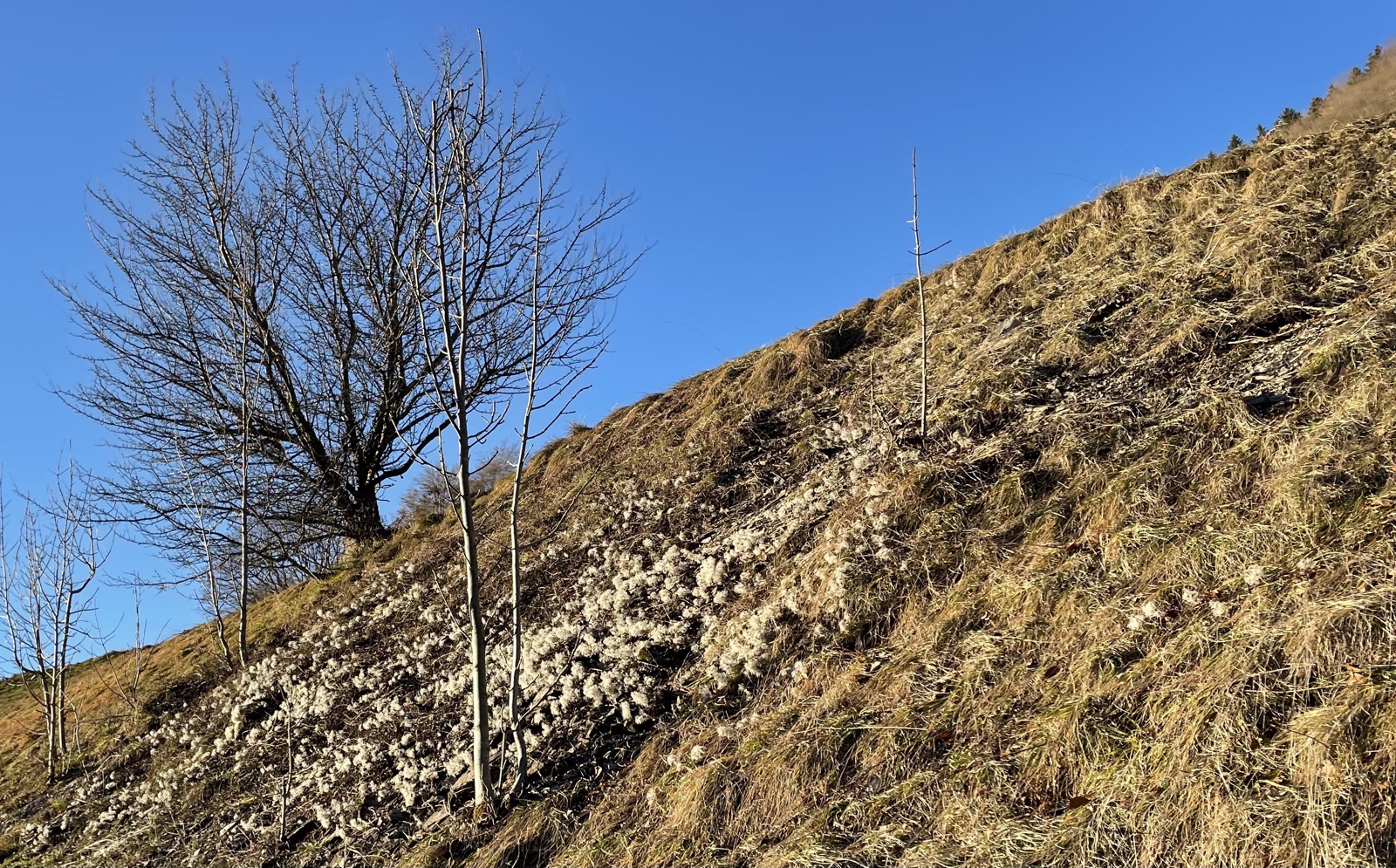 Herrlich — die gemütlich langsame Bergfahrt bereitet mir grosse Freude. Immer wieder muss ich kurz anhalten um die Winterpflanzen zu bestaunen,